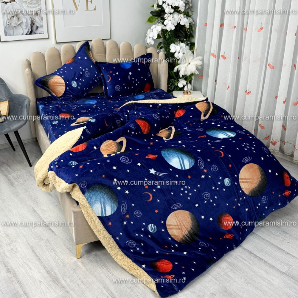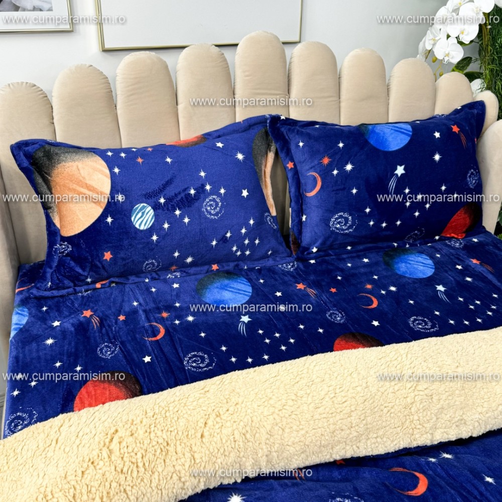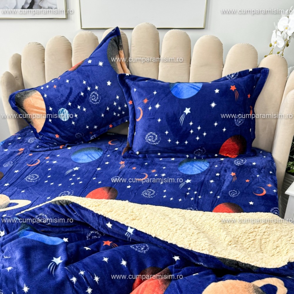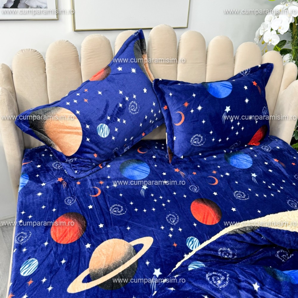 Lenjerie pat dublu, Super Pufoasa COCOLINO cu BLANITA, 4 piese, Bleumarin, planete, CumparaMisim, cod produs: YAF116