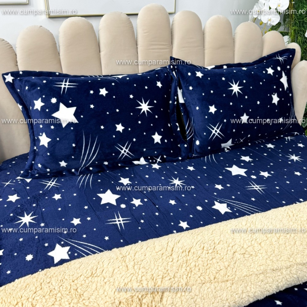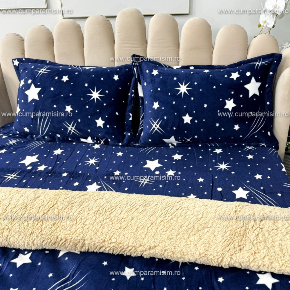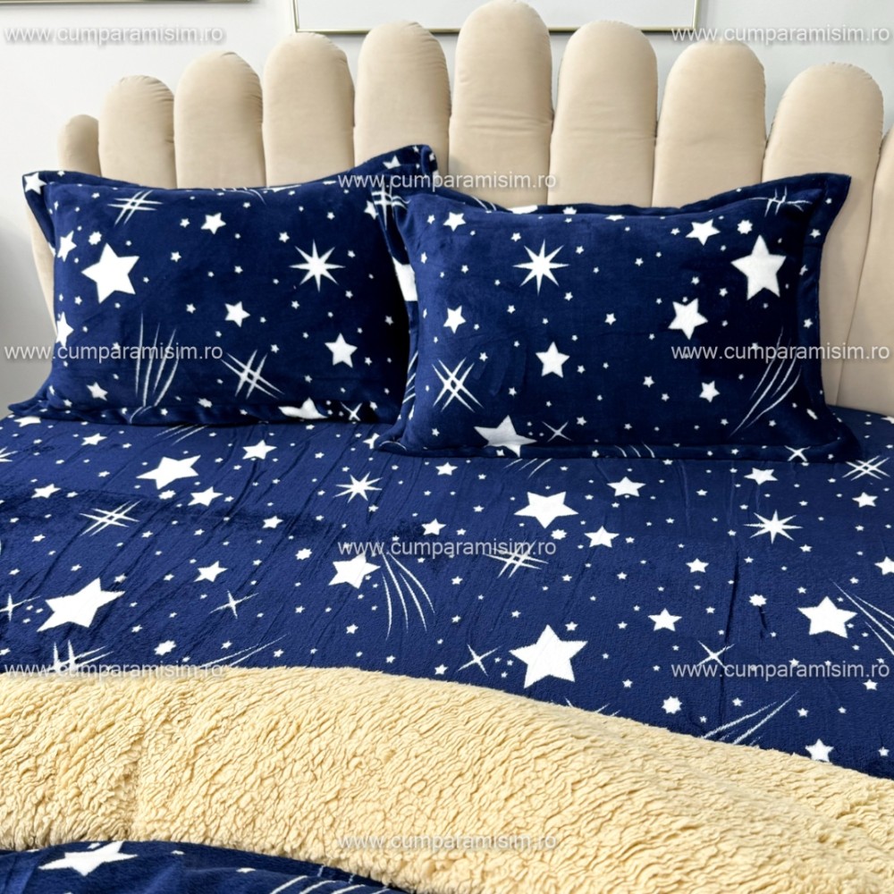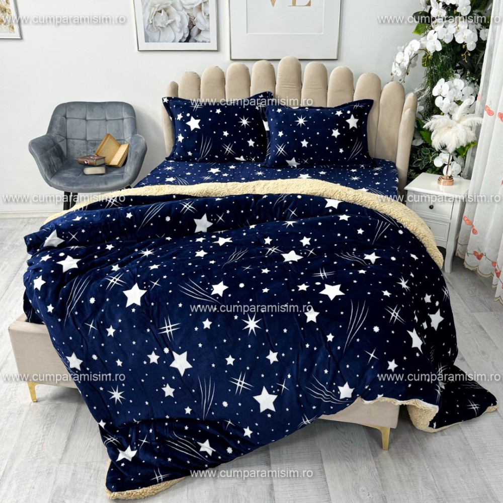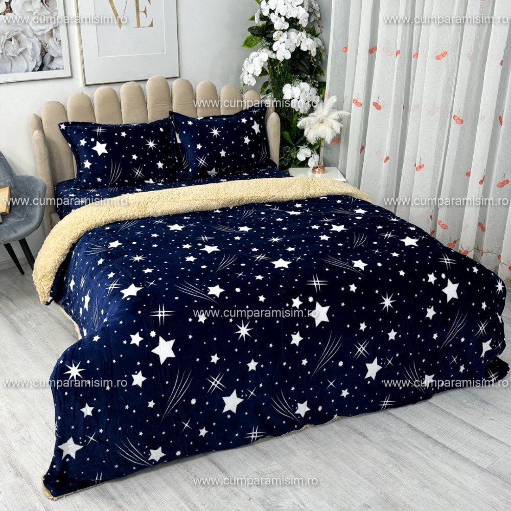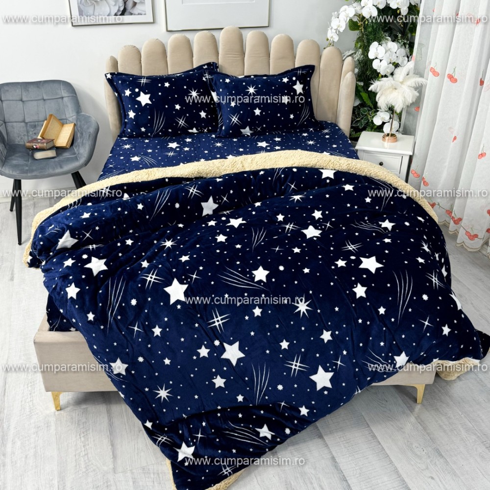 Lenjerie pat dublu, Super Pufoasa COCOLINO cu BLANITA, 4 piese, Bleumarin, ploaie de stele, CumparaMisim, cod produs: YAF123