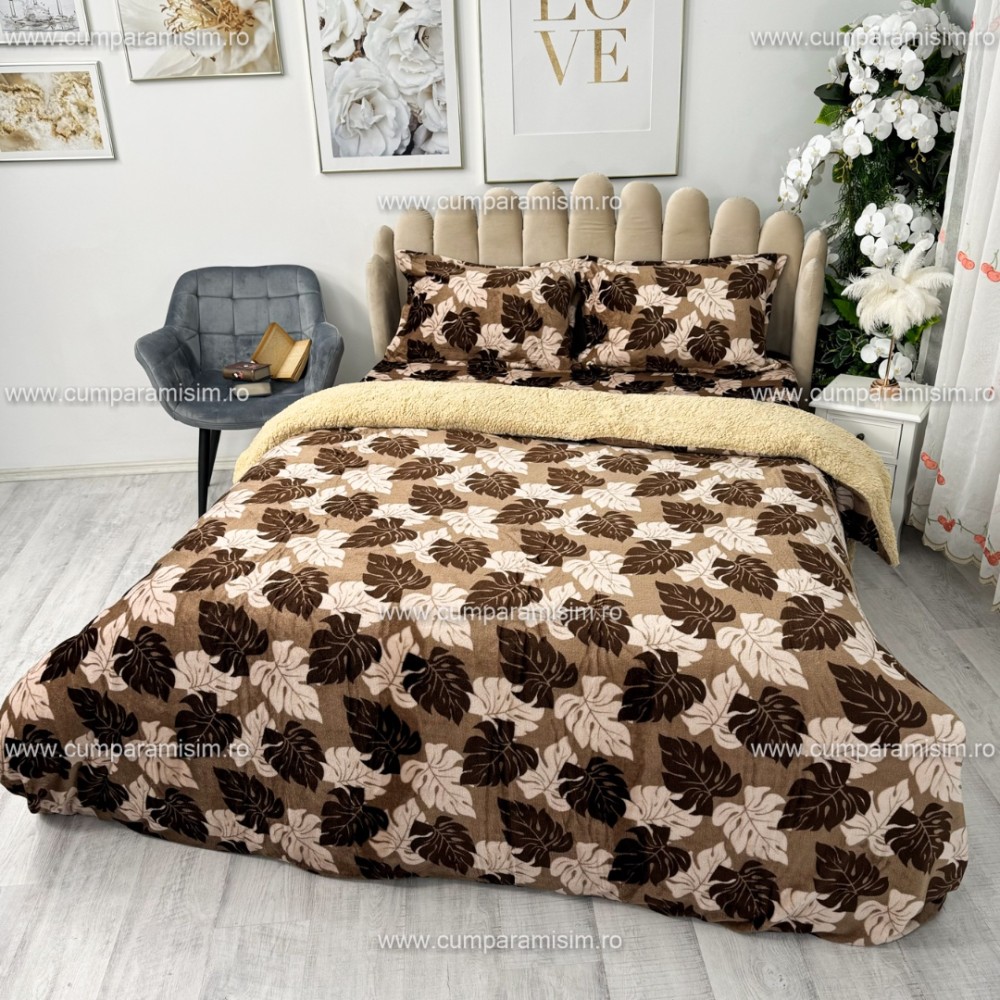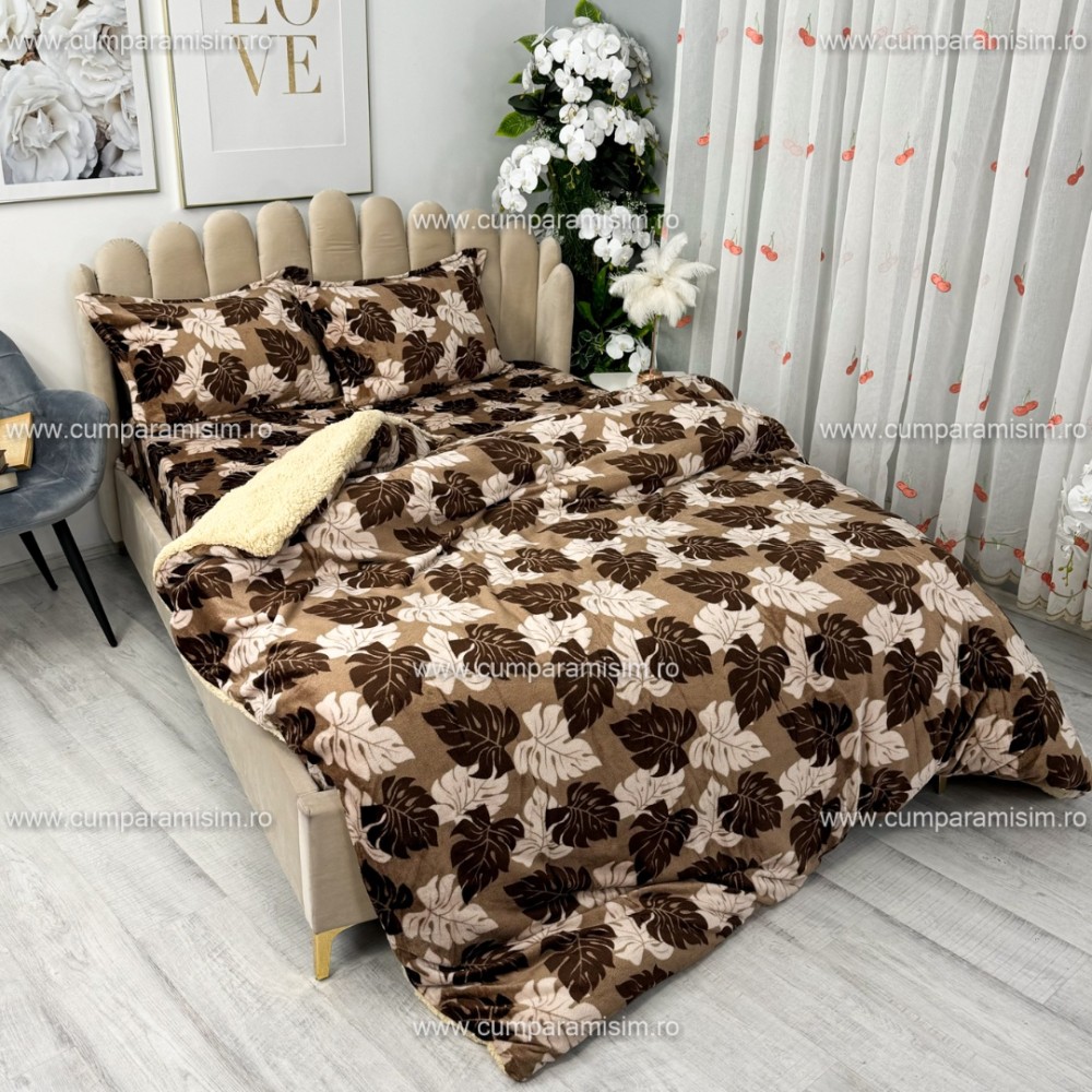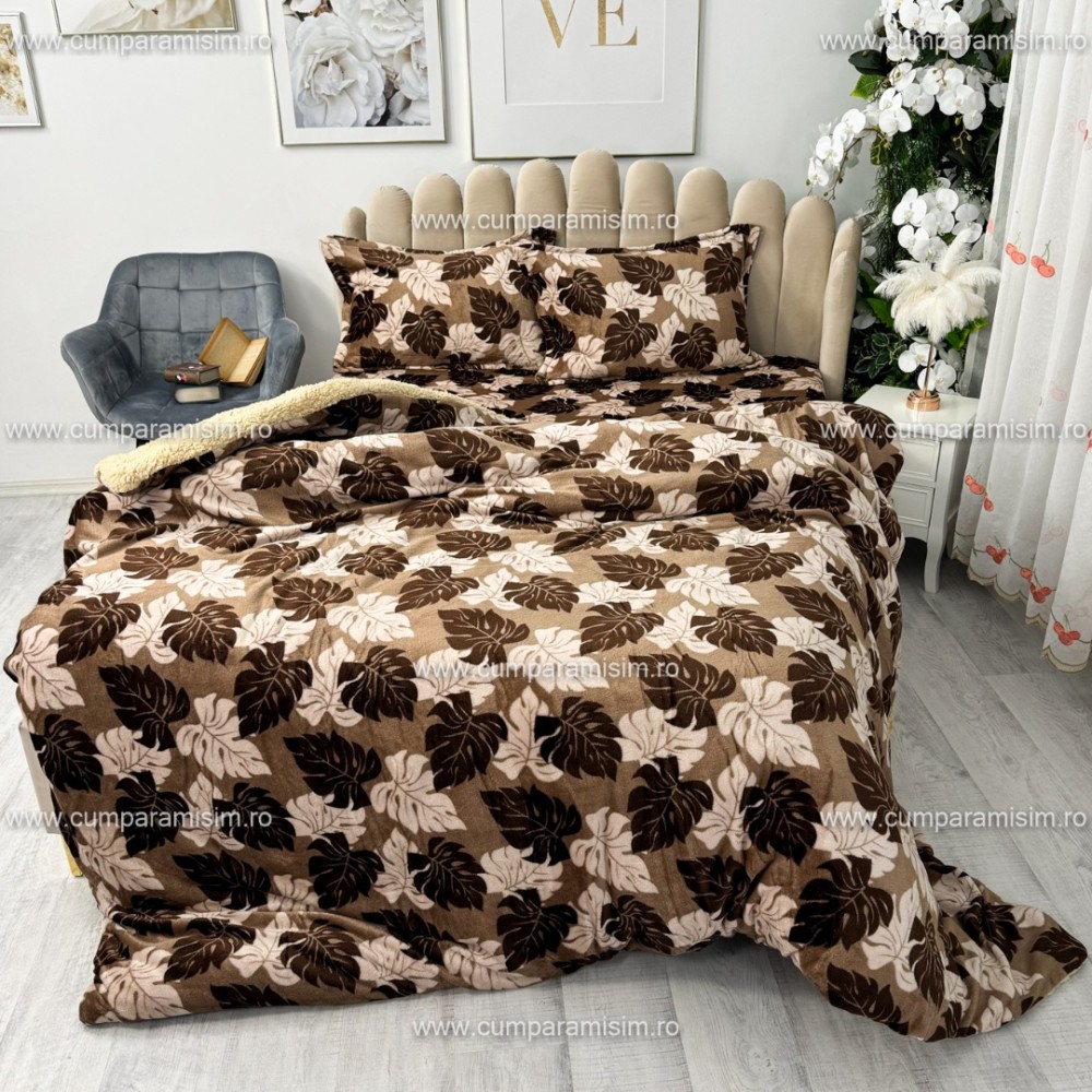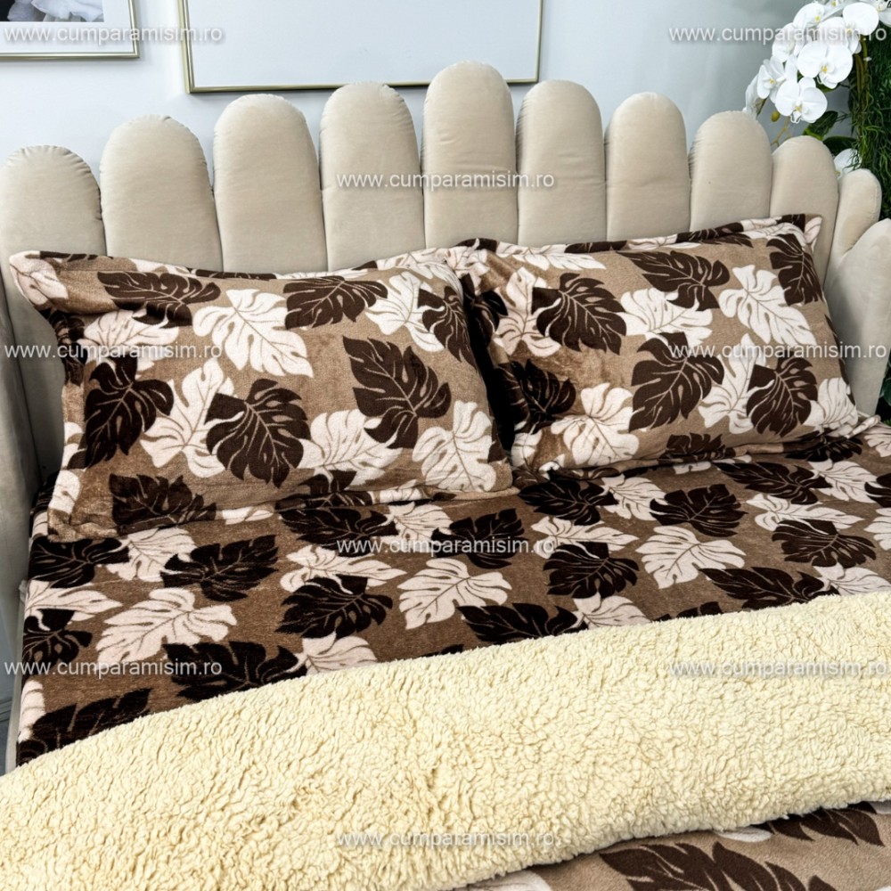 Lenjerie pat dublu, Super Pufoasa COCOLINO cu BLANITA, 4 piese, Maro, frunze de toamna, CumparaMisim, cod produs: YAF131
