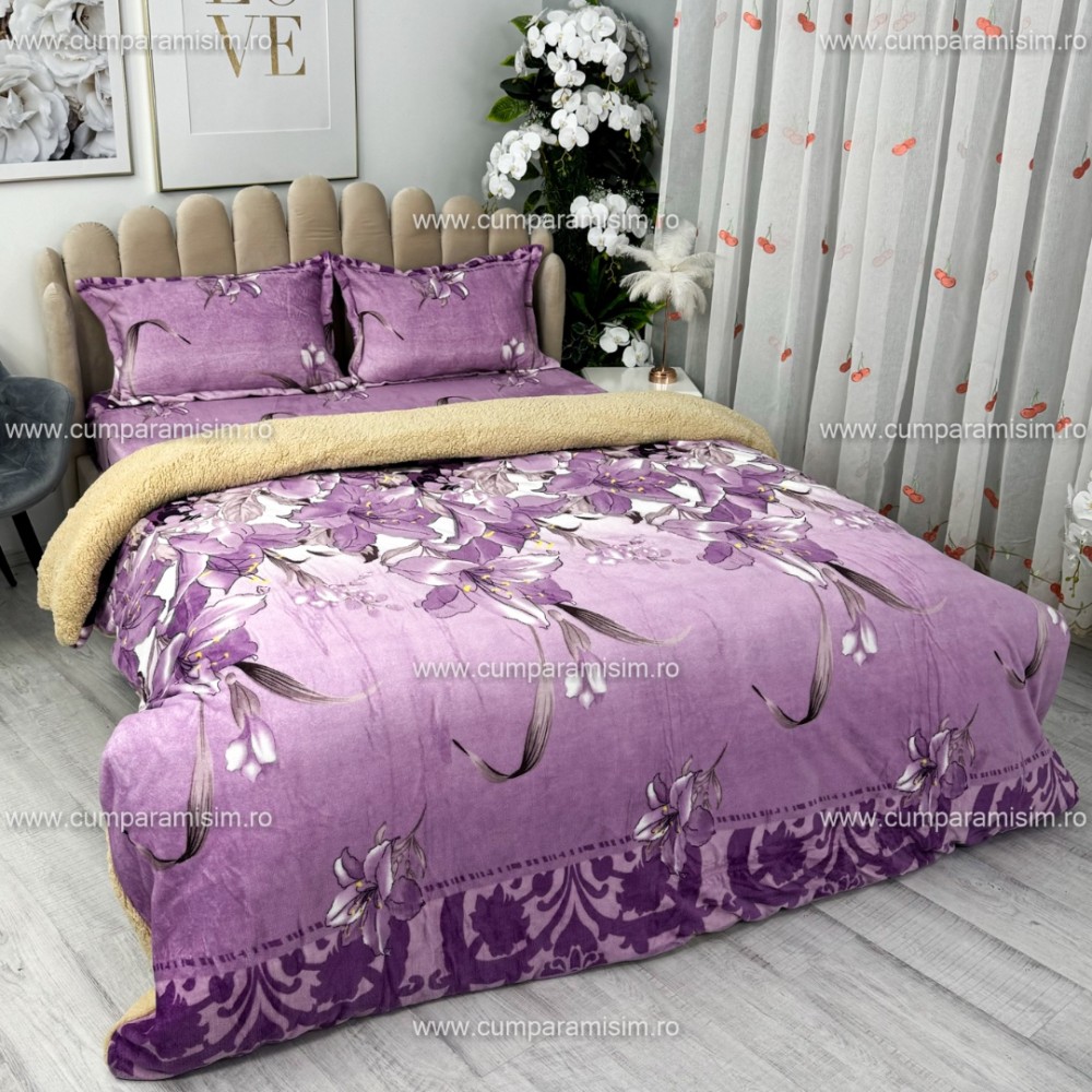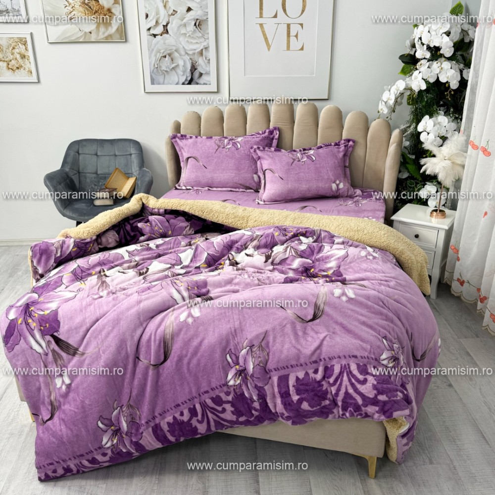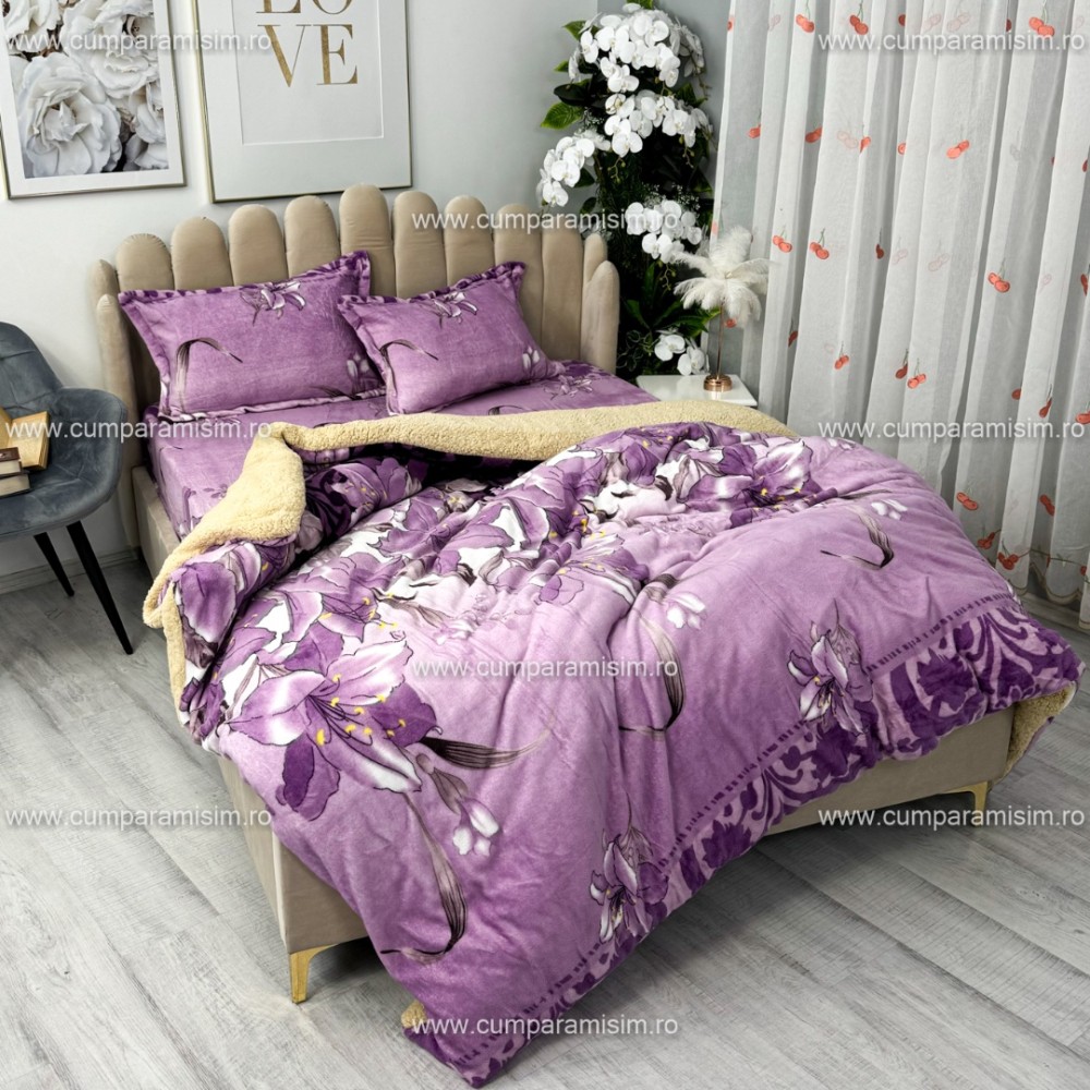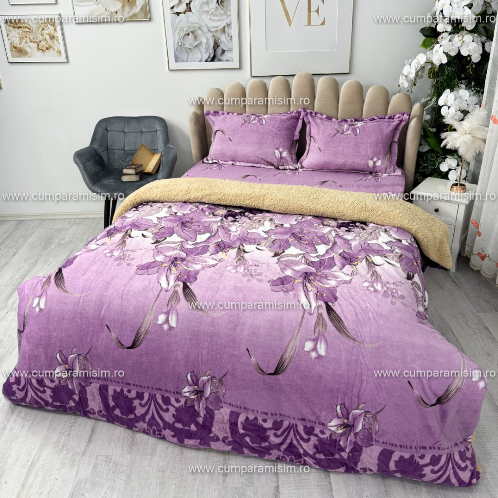 Lenjerie pat dublu, Super Pufoasa COCOLINO cu BLANITA, 4 piese, Mov, flori, CumparaMisim, cod produs: YAF139