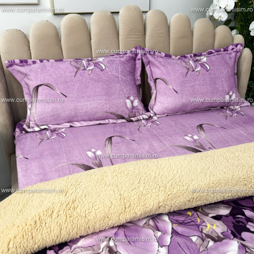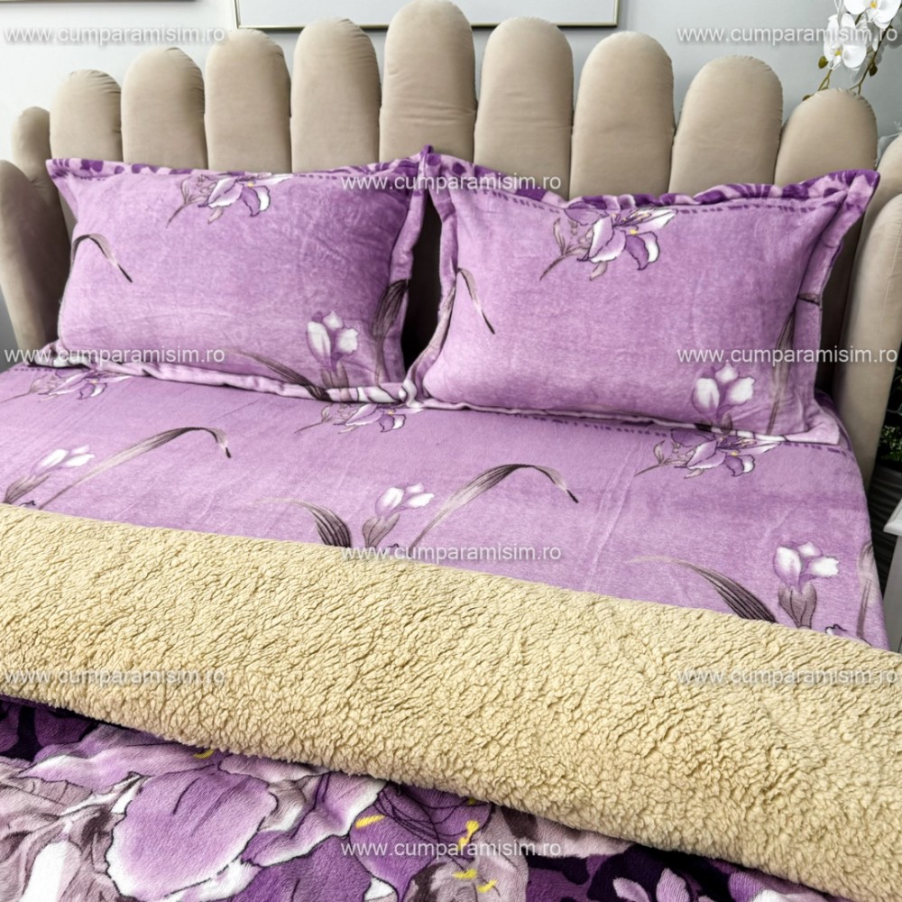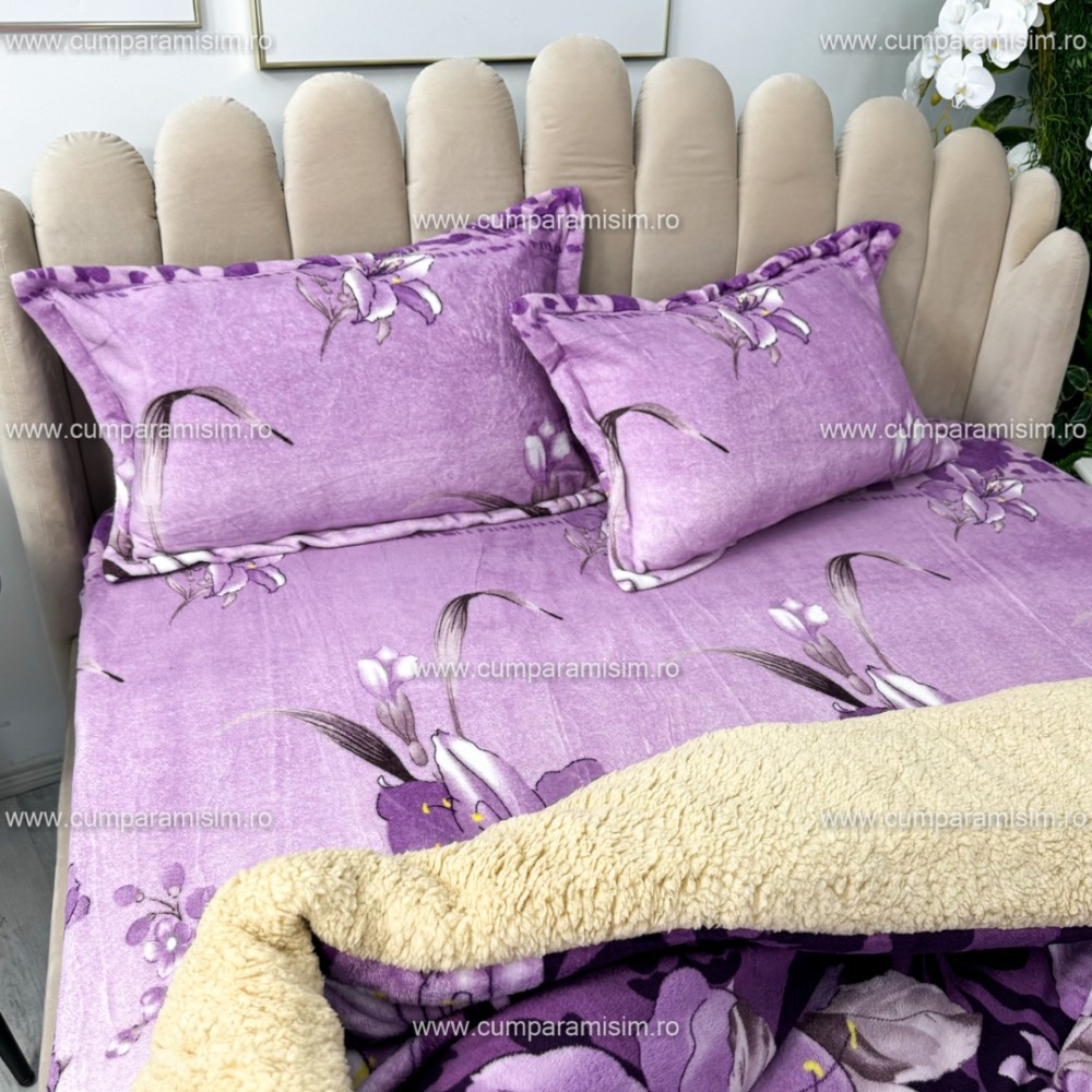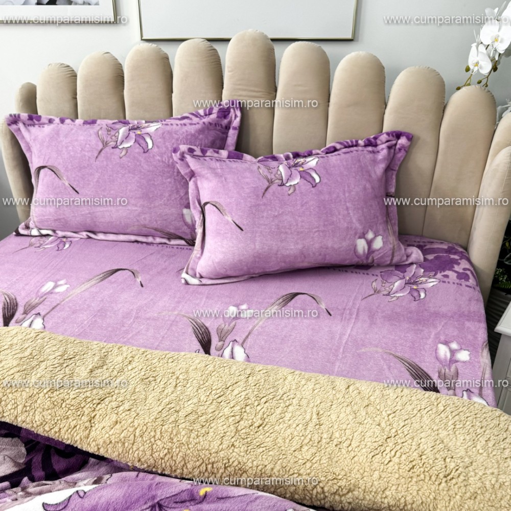 Lenjerie pat dublu, Super Pufoasa COCOLINO cu BLANITA, 4 piese, Mov, flori, CumparaMisim, cod produs: YAF139