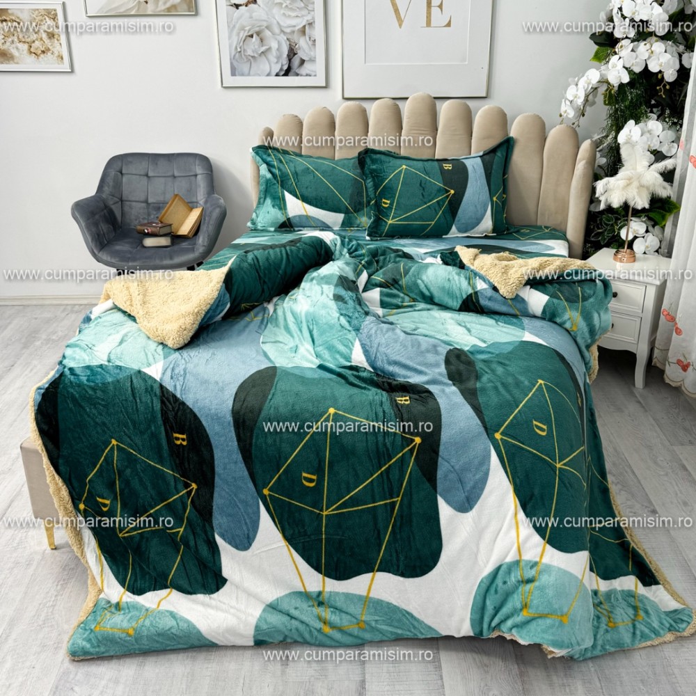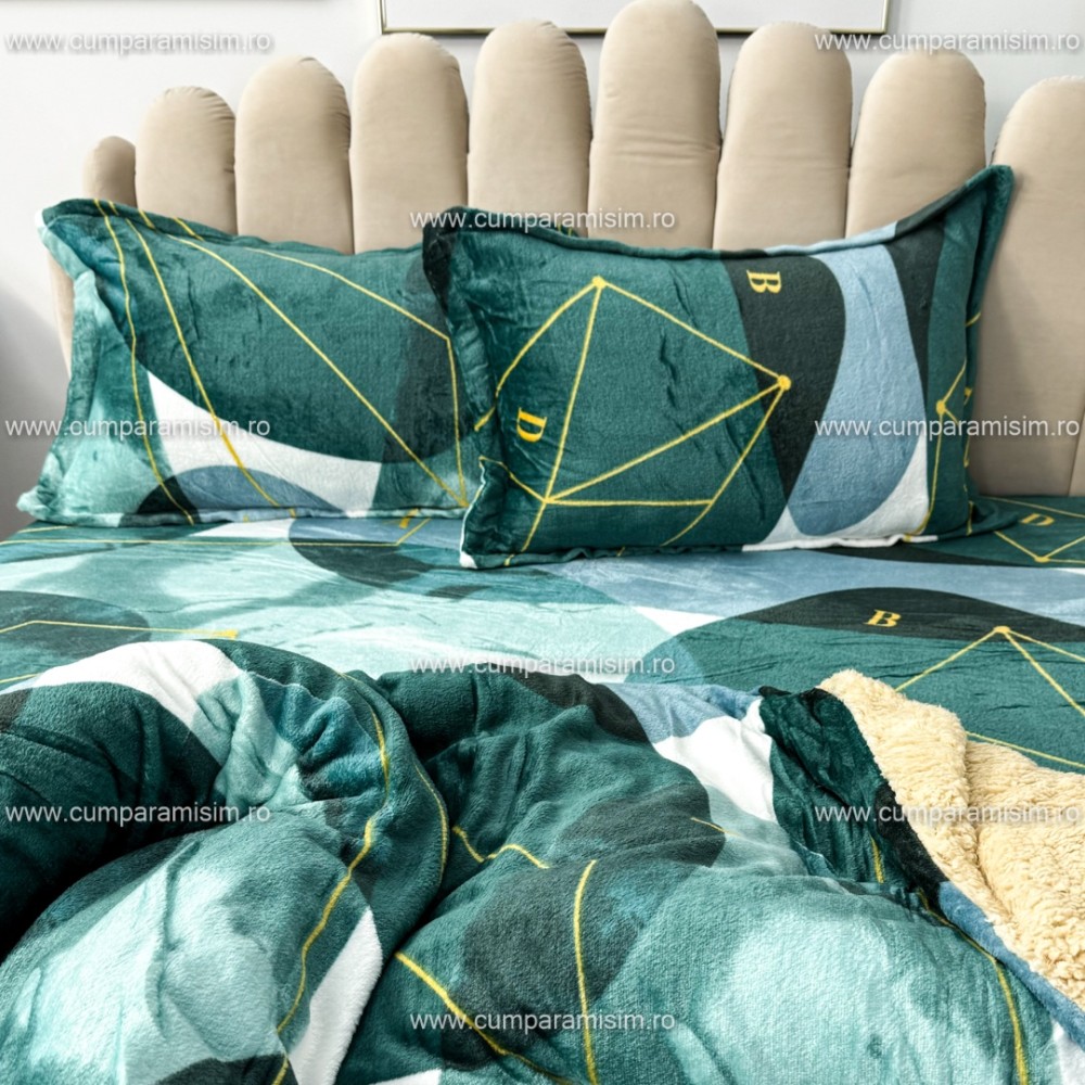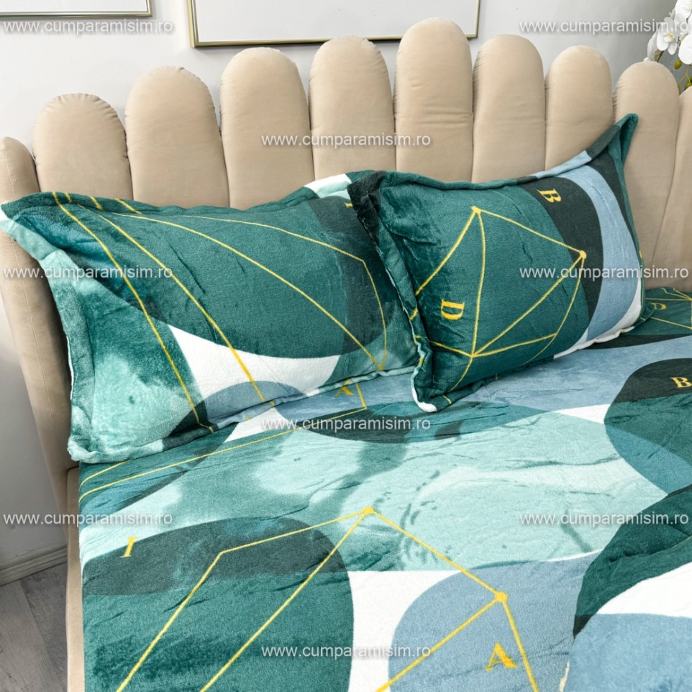 Lenjerie pat dublu, Super Pufoasa COCOLINO cu BLANITA, 4 piese, Verde, model clasic, CumparaMisim, cod produs: YAF115