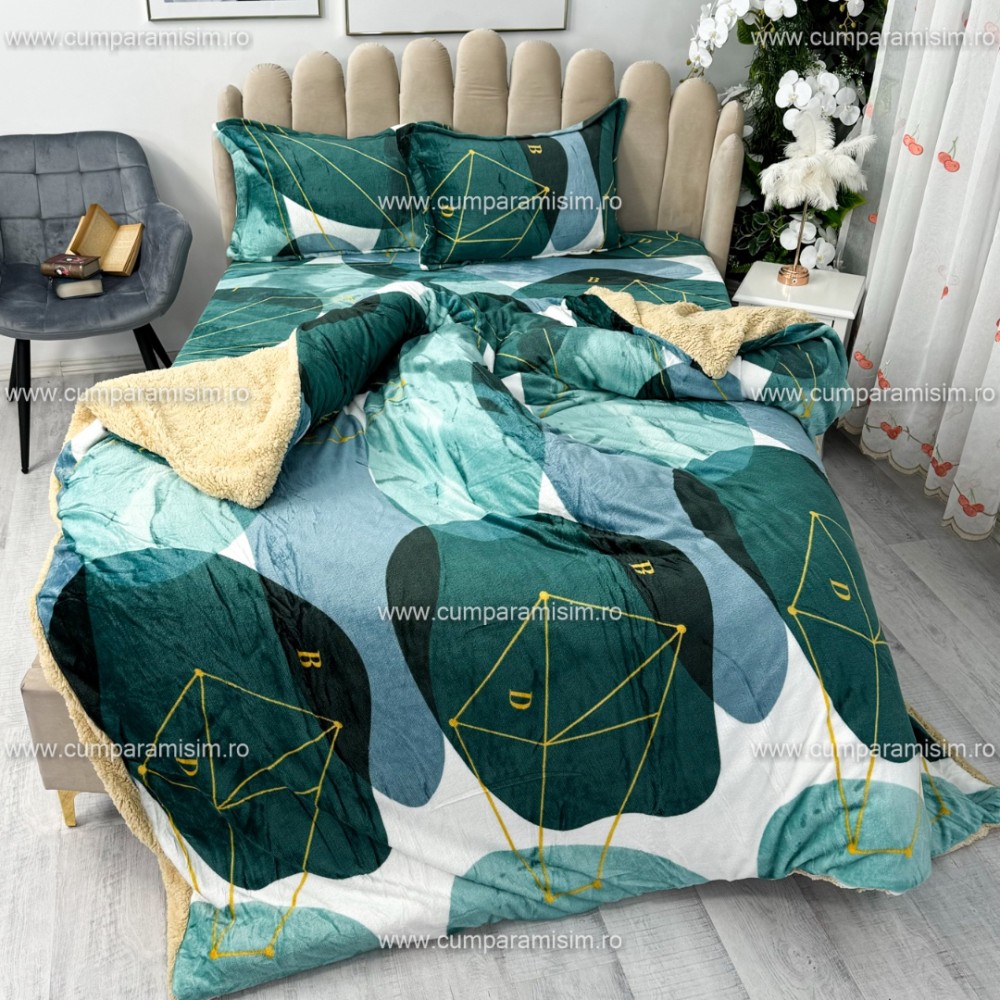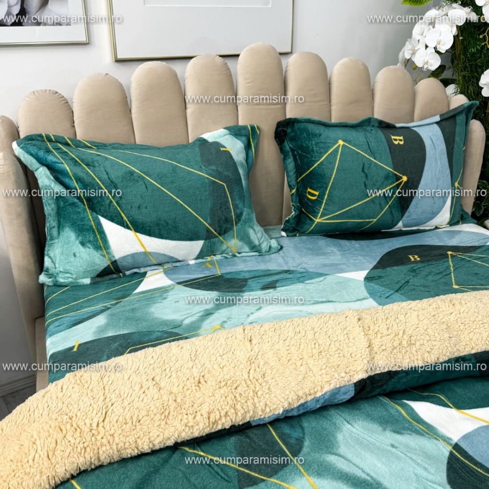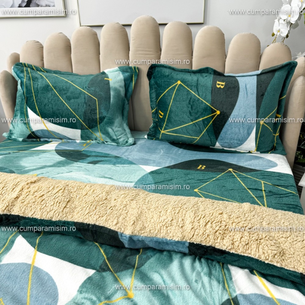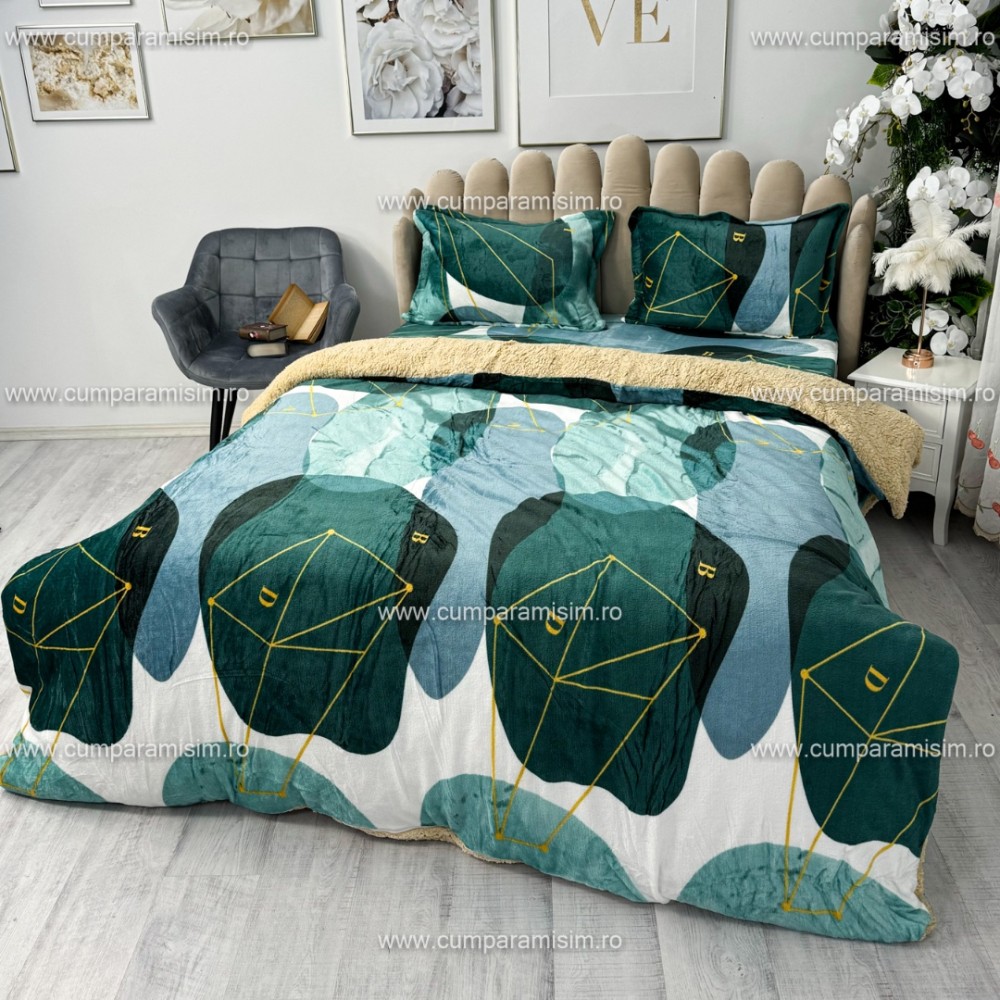Lenjerie pat dublu, Super Pufoasa COCOLINO cu BLANITA, 4 piese, Verde, model clasic, CumparaMisim, cod produs: YAF115