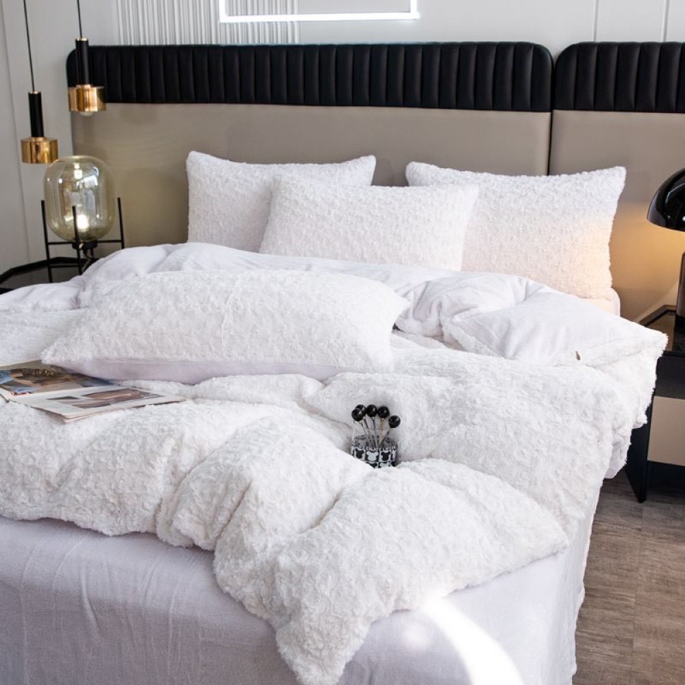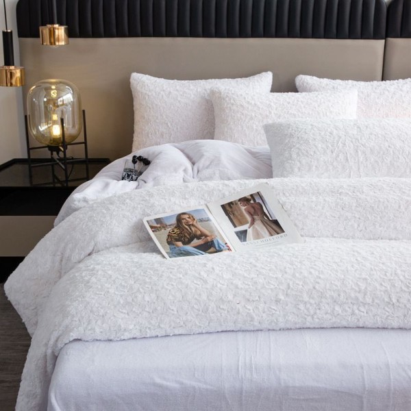 Făcută din cele mai fine materiale, această lenjerie este groasă și pufoasă, oferindu-ți o senzație de căldură și confort în timpul nopților reci de iarnă. Fiecare noapte devine un adevărat răsfăț pentru simțurile tale, iar atingerea acestei lenjerii îți va aminti de mângâierea delicată a petalelor de trandafiri.