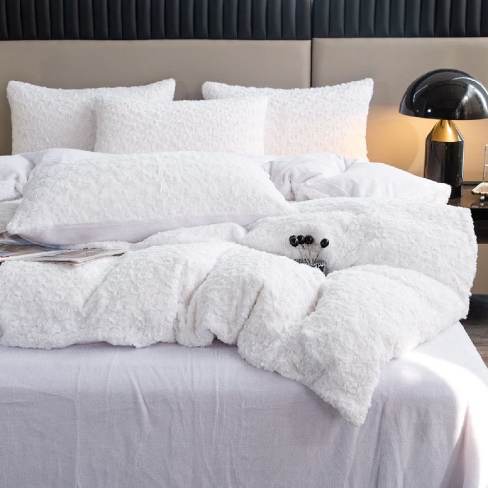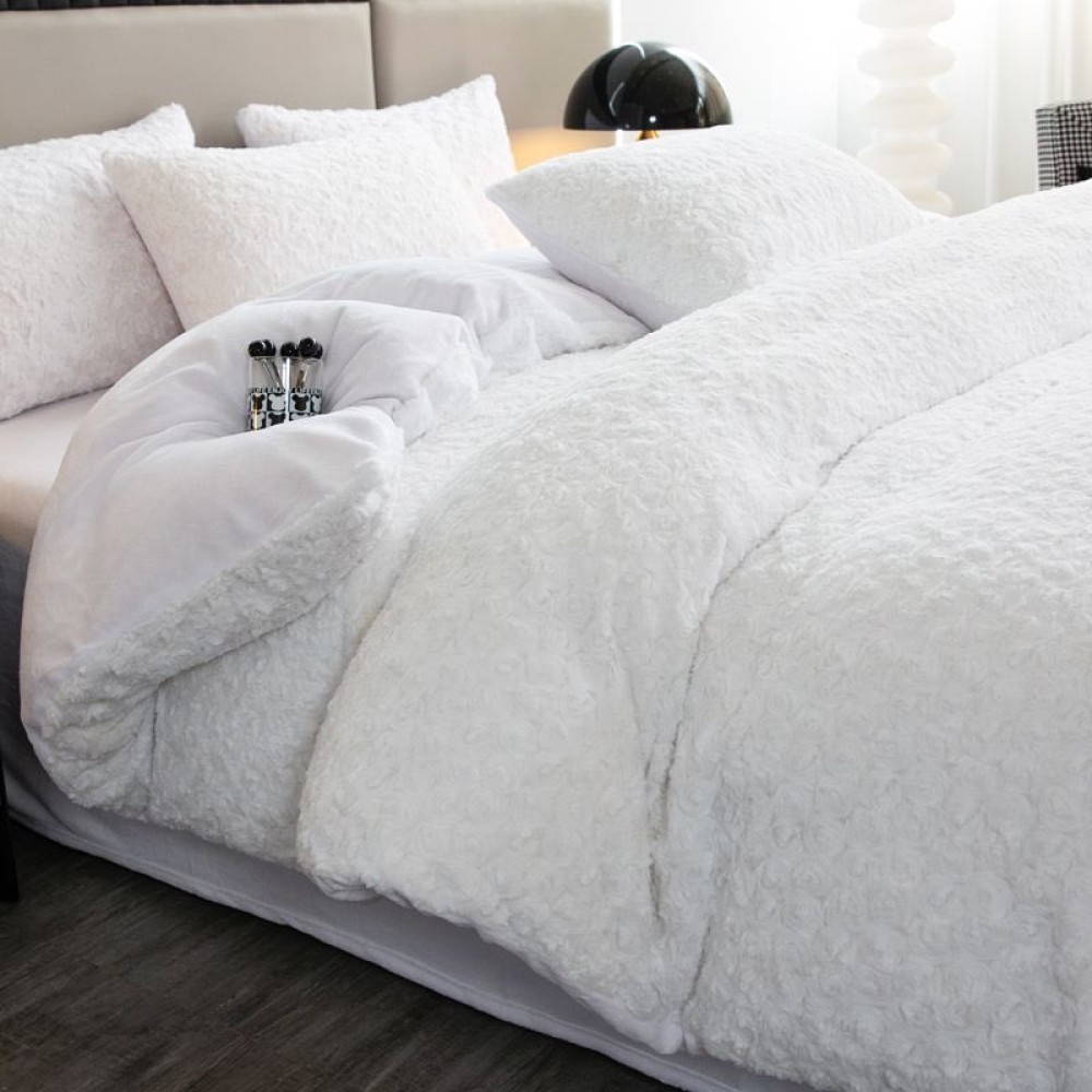 Lenjerie pat dublu, Super Pufoasa COCOLINO, cu Blanița de Iepure, cu model de trandafiri 3D, 4 piese, Alb, cod produs: SKC9