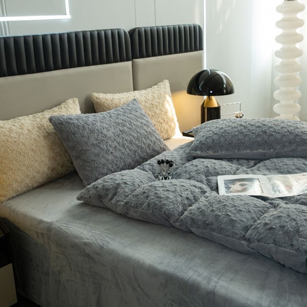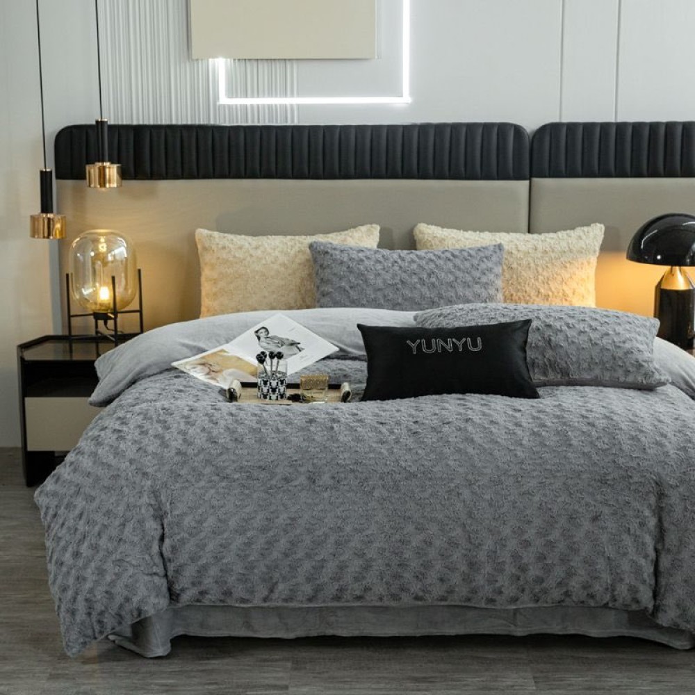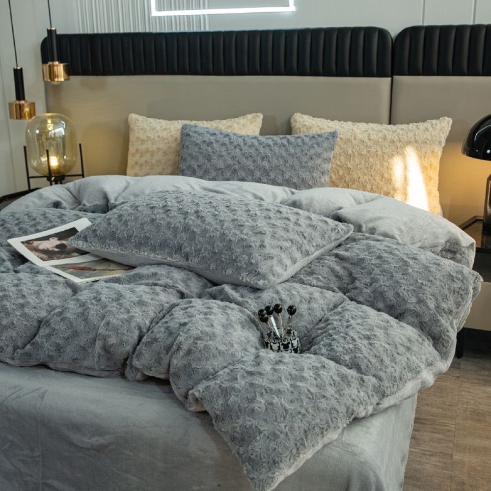 Făcută din cele mai fine materiale, această lenjerie este groasă și pufoasă, oferindu-ți o senzație de căldură și confort în timpul nopților reci de iarnă. Fiecare noapte devine un adevărat răsfăț pentru simțurile tale, iar atingerea acestei lenjerii îți va aminti de mângâierea delicată a petalelor de trandafiri.