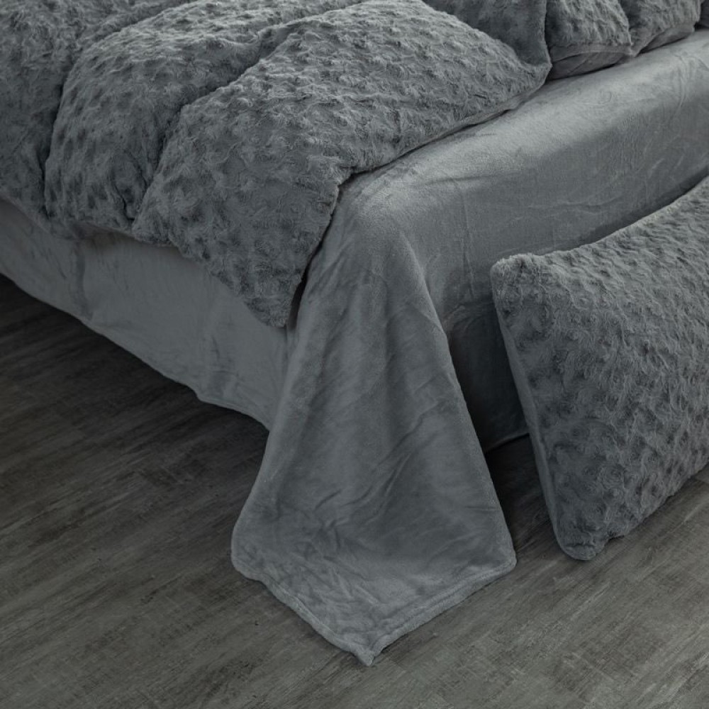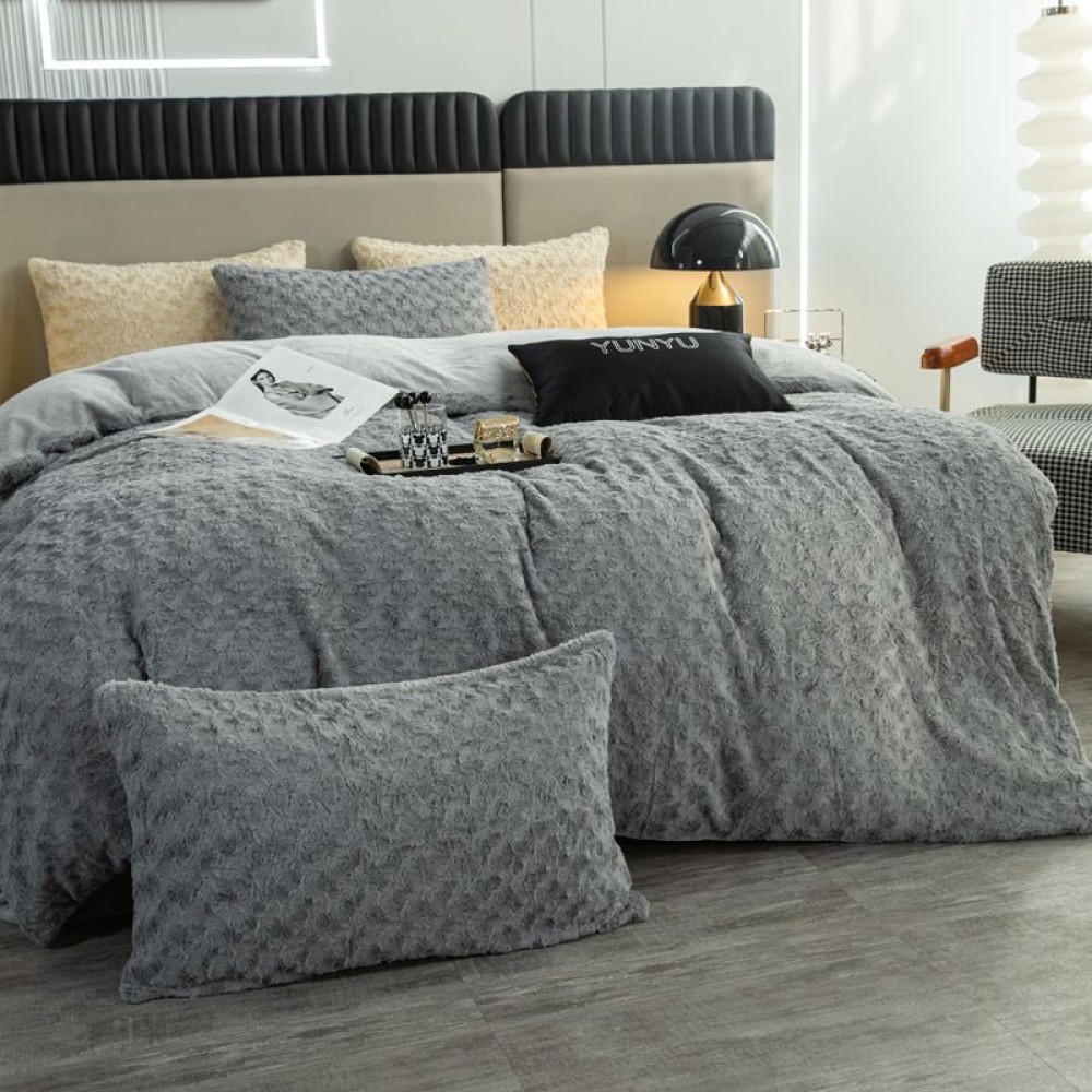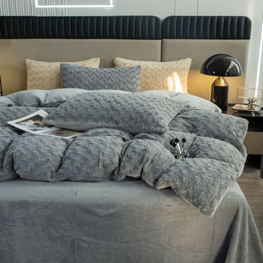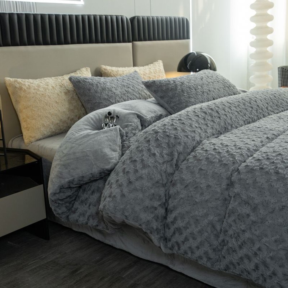 Lenjerie pat dublu, Super Pufoasa COCOLINO, cu Blanița de Iepure, cu model de trandafiri 3D, 4 piese, Gri, cod produs: SKC6