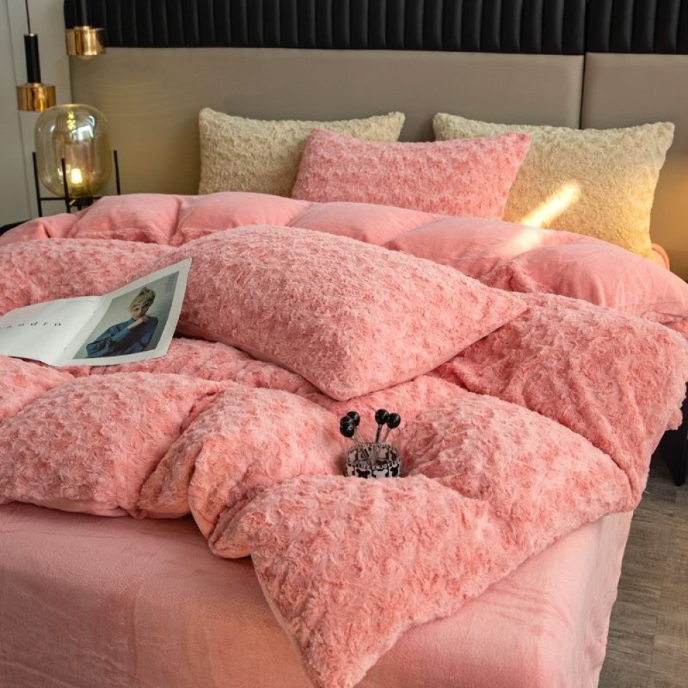 Făcută din cele mai fine materiale, această lenjerie este groasă și pufoasă, oferindu-ți o senzație de căldură și confort în timpul nopților reci de iarnă. Fiecare noapte devine un adevărat răsfăț pentru simțurile tale, iar atingerea acestei lenjerii îți va aminti de mângâierea delicată a petalelor de trandafiri.