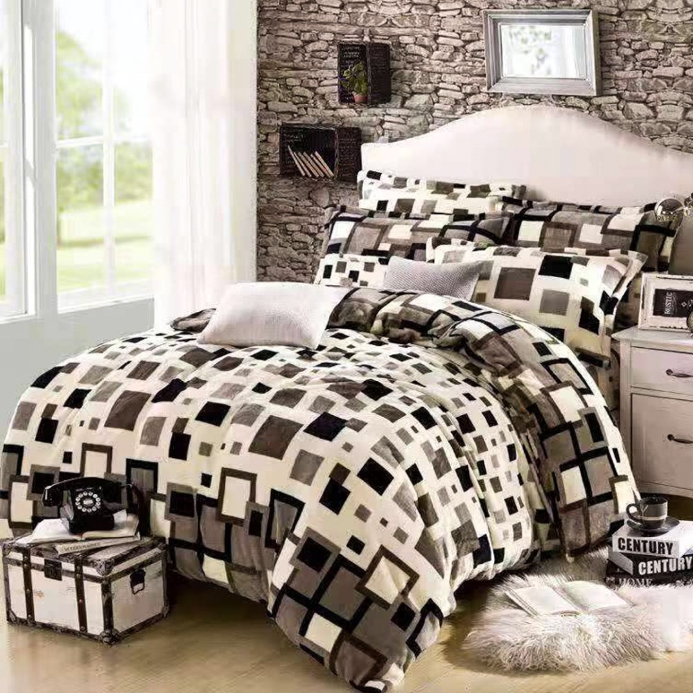 Lenjerie pat dublu, Super Pufoasa COCOLINO,cu ELASTIC, 4 piese, Alb-Gri, patratele, CumparaMisim, cod produs: YAF30