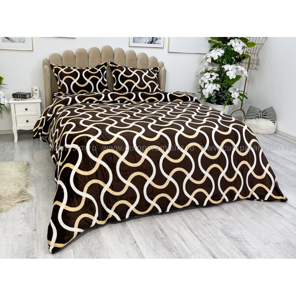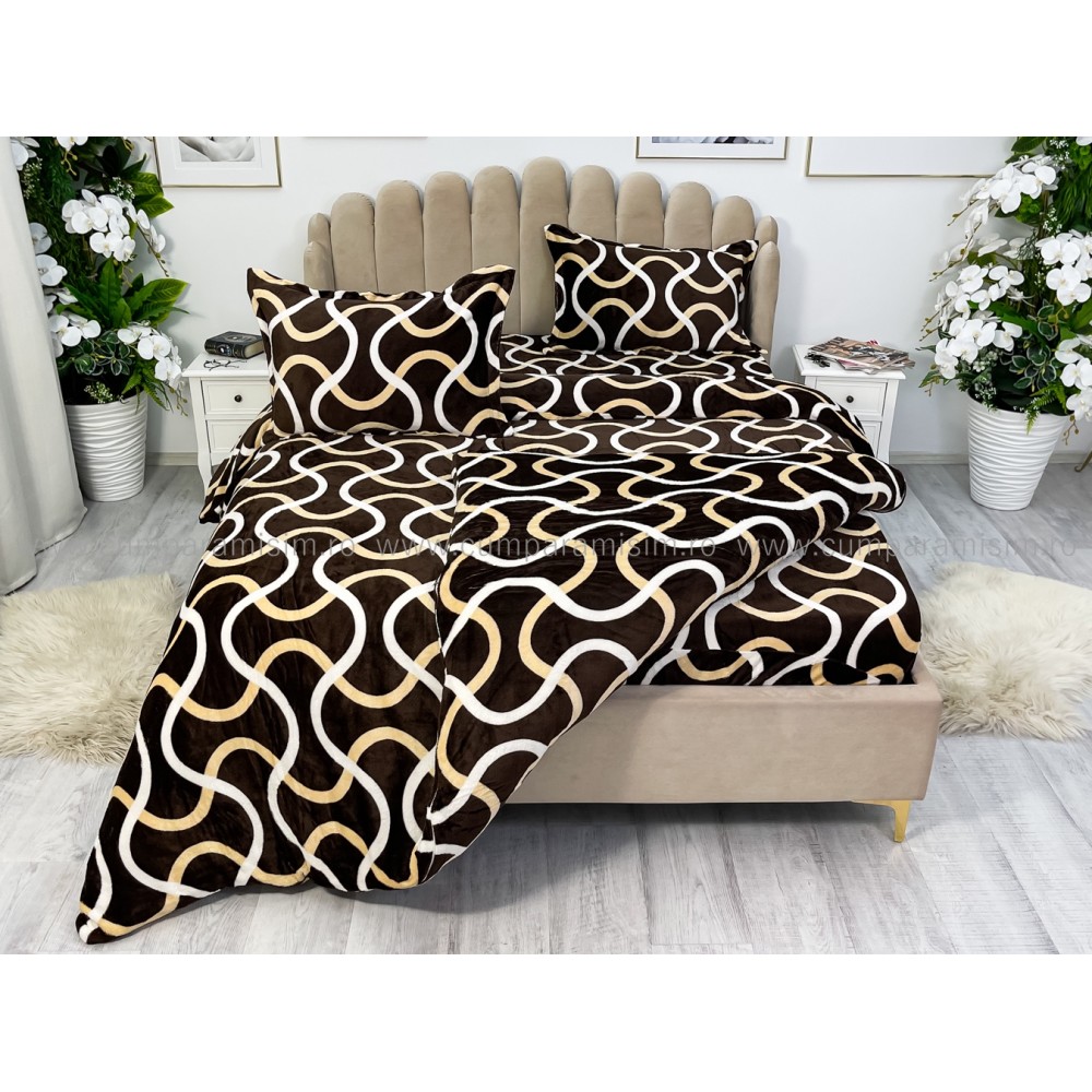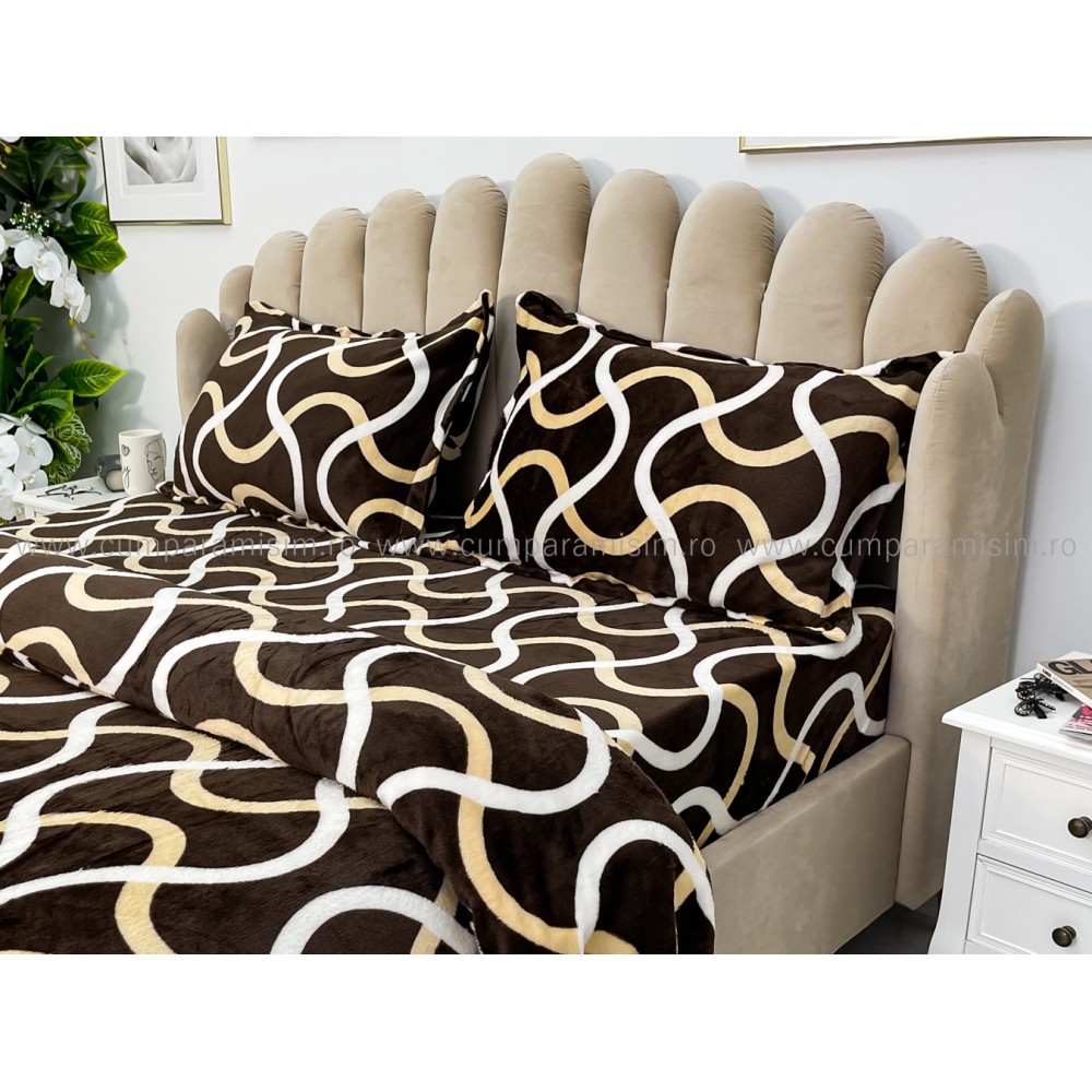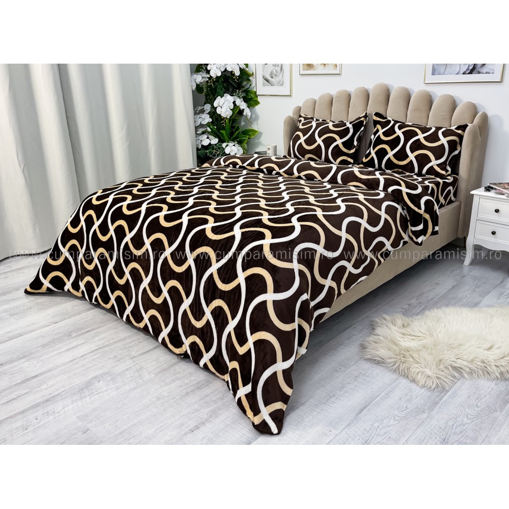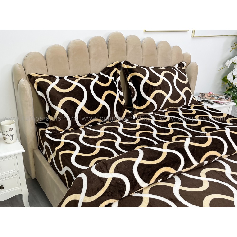 Lenjerie pat dublu, Super Pufoasa COCOLINO,cu ELASTIC, 4 piese, Bej, model cu linii, CumparaMisim, cod produs: YAF11