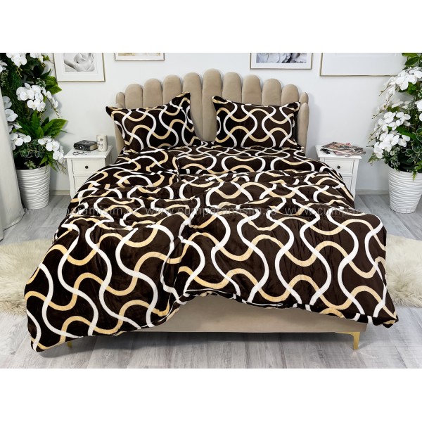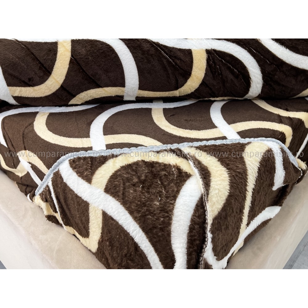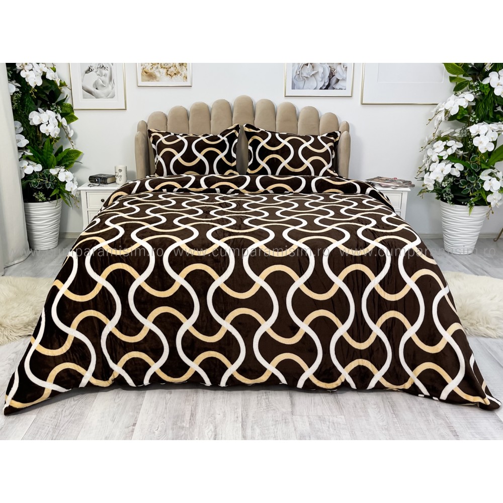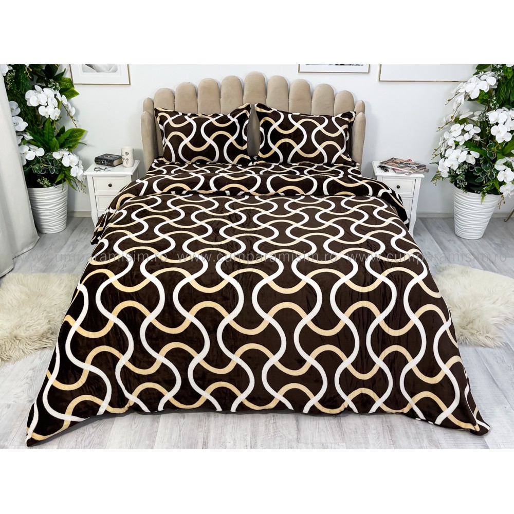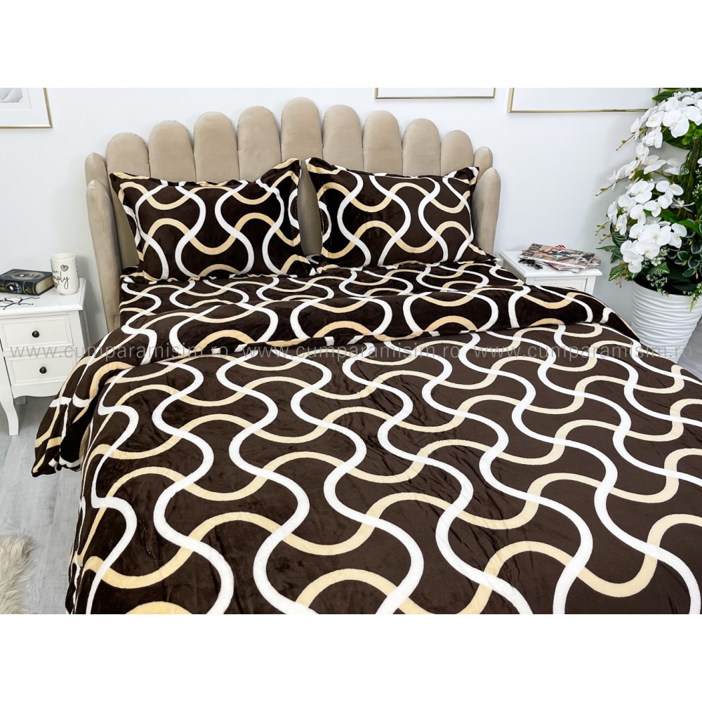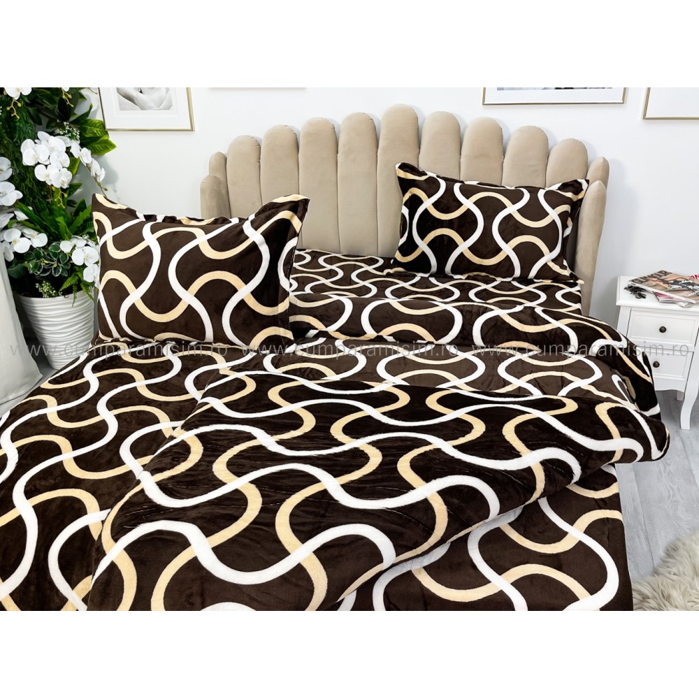 Lenjerie pat dublu, Super Pufoasa COCOLINO,cu ELASTIC, 4 piese, Bej, model cu linii, CumparaMisim, cod produs: YAF11
