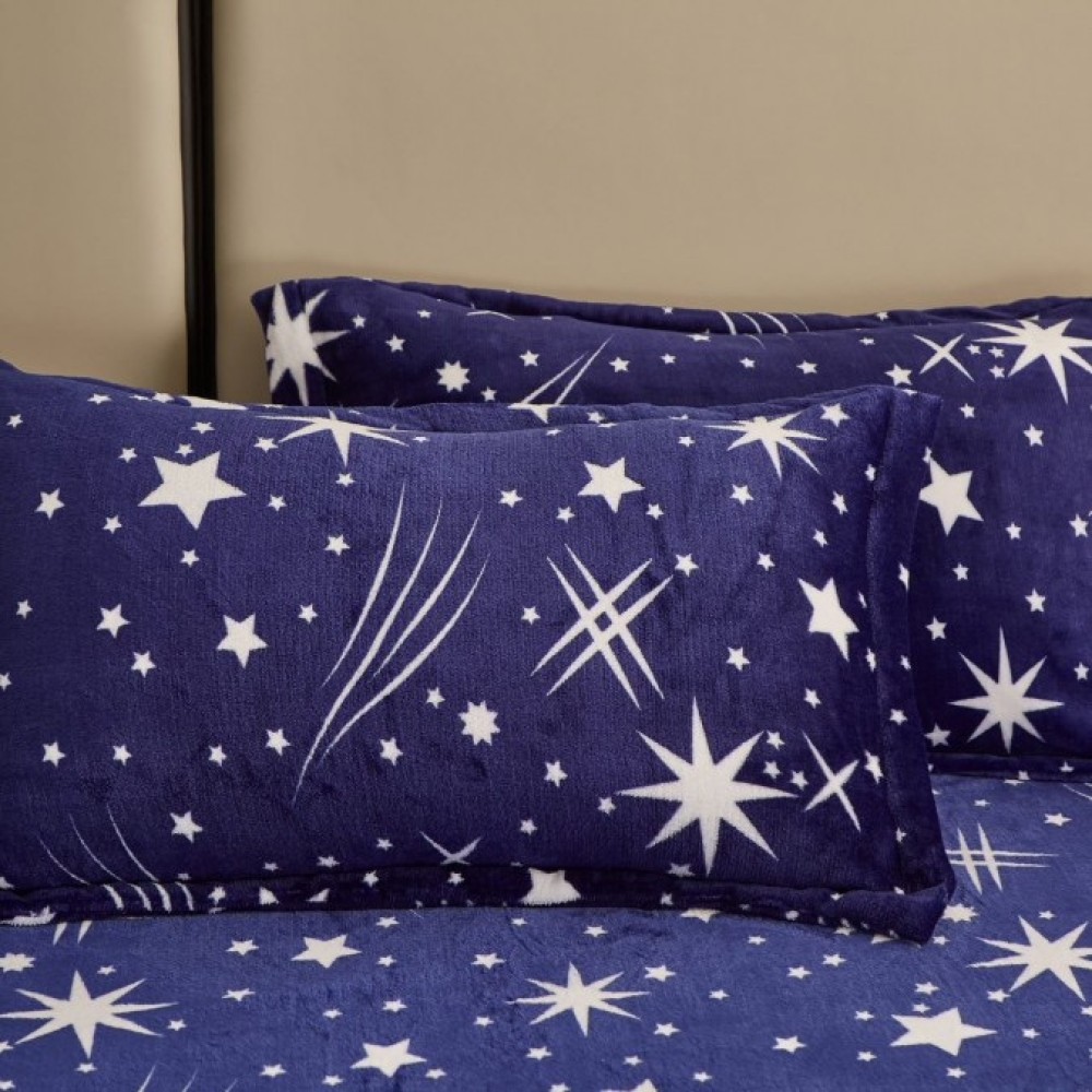 Lenjerie pentru Pat Dublu, Cocolino Premium, 4 Piese – Plușată, Groasă, și Călduroasă, Ideală pentru Iarnă – Confort Maxim, Antișifonare, Bleumarin, ploaie de stele, CumparaMisim, cod produs: YAF201