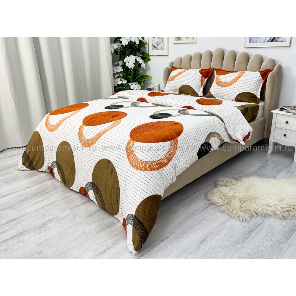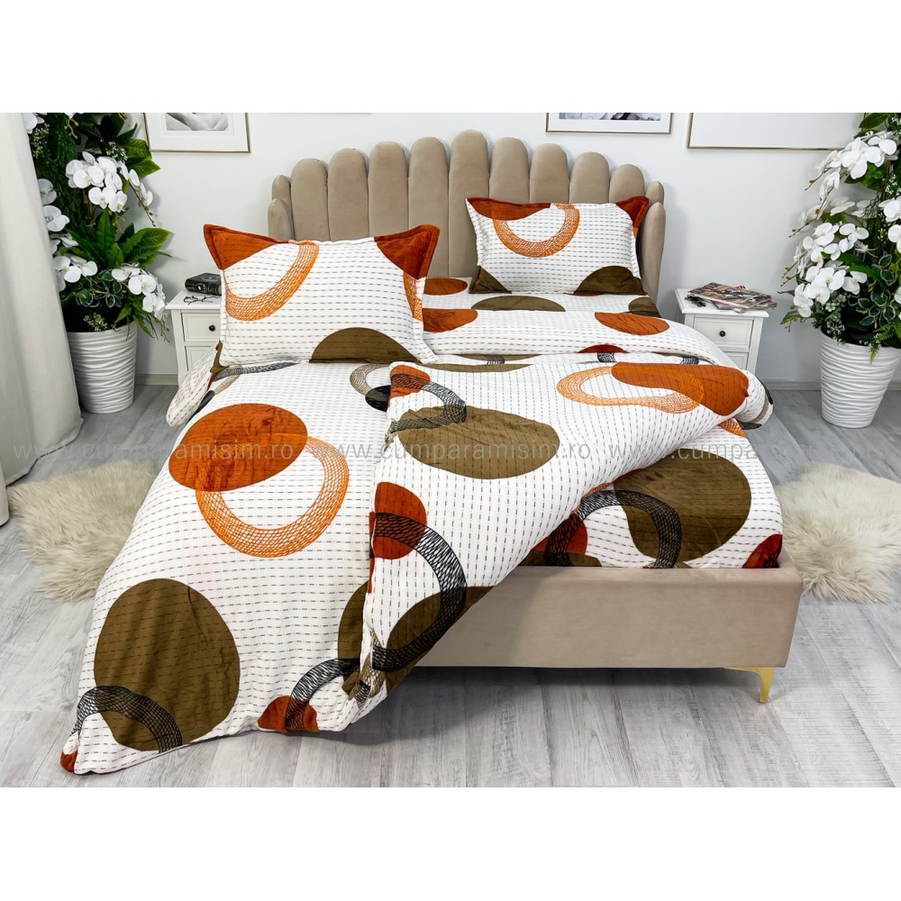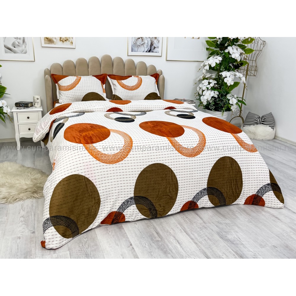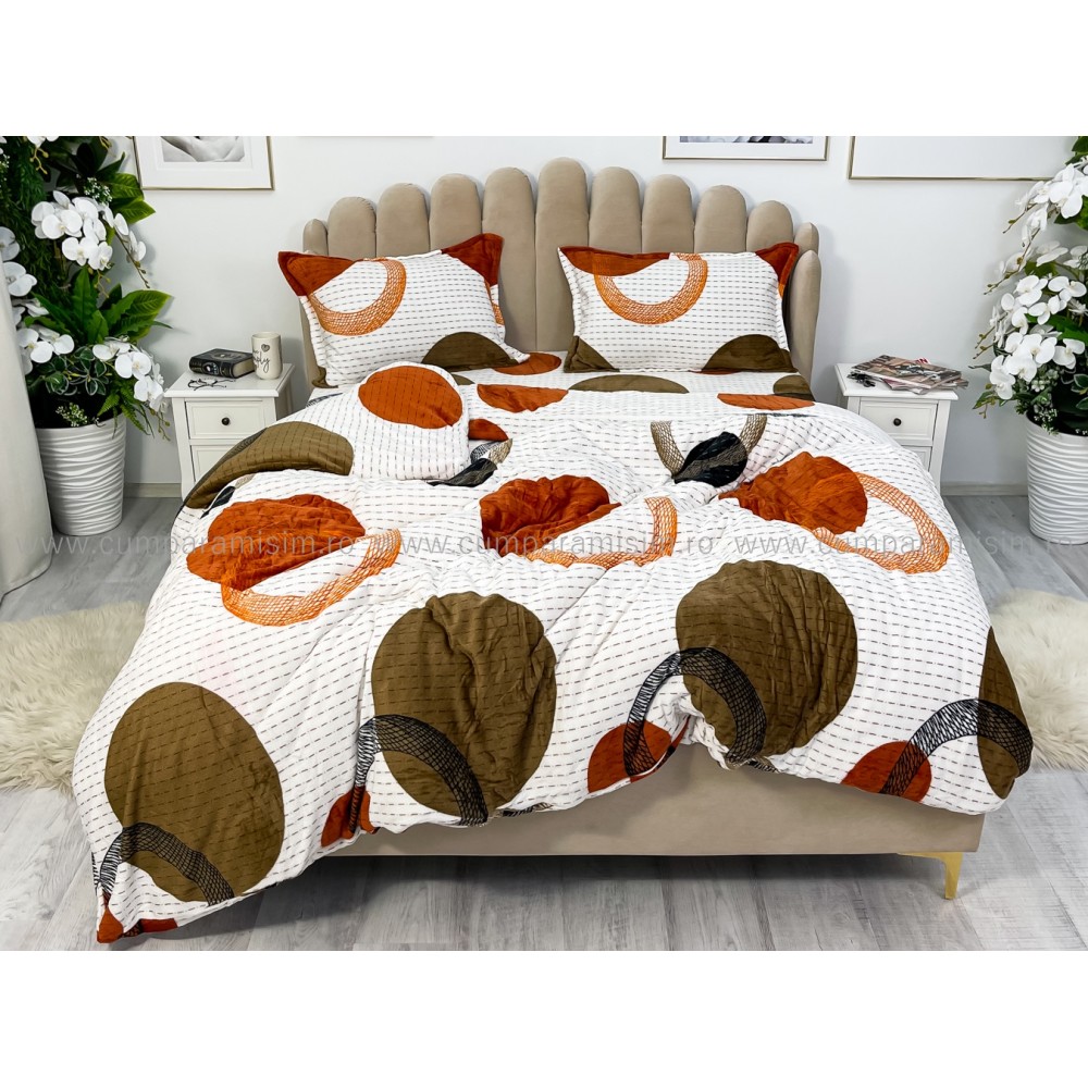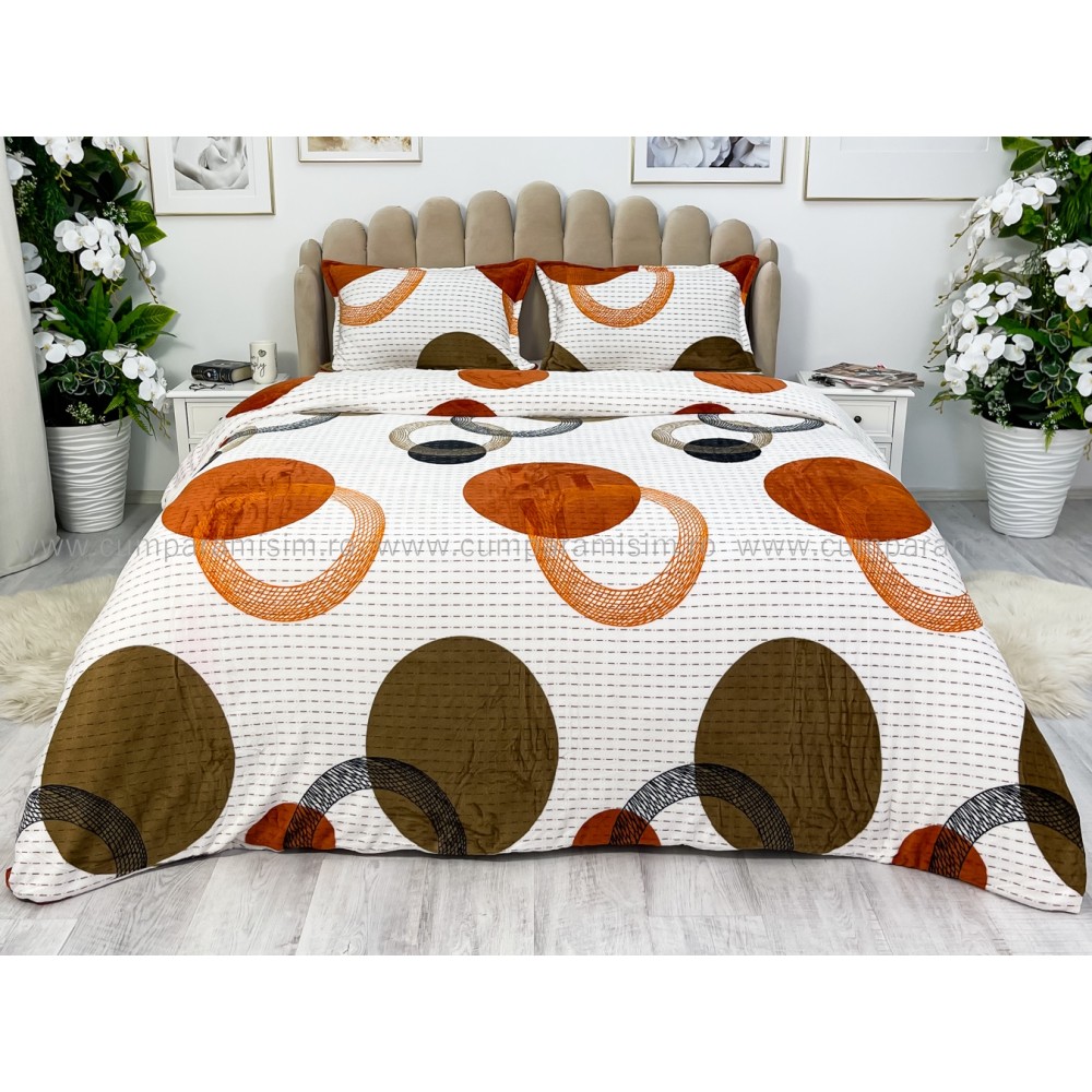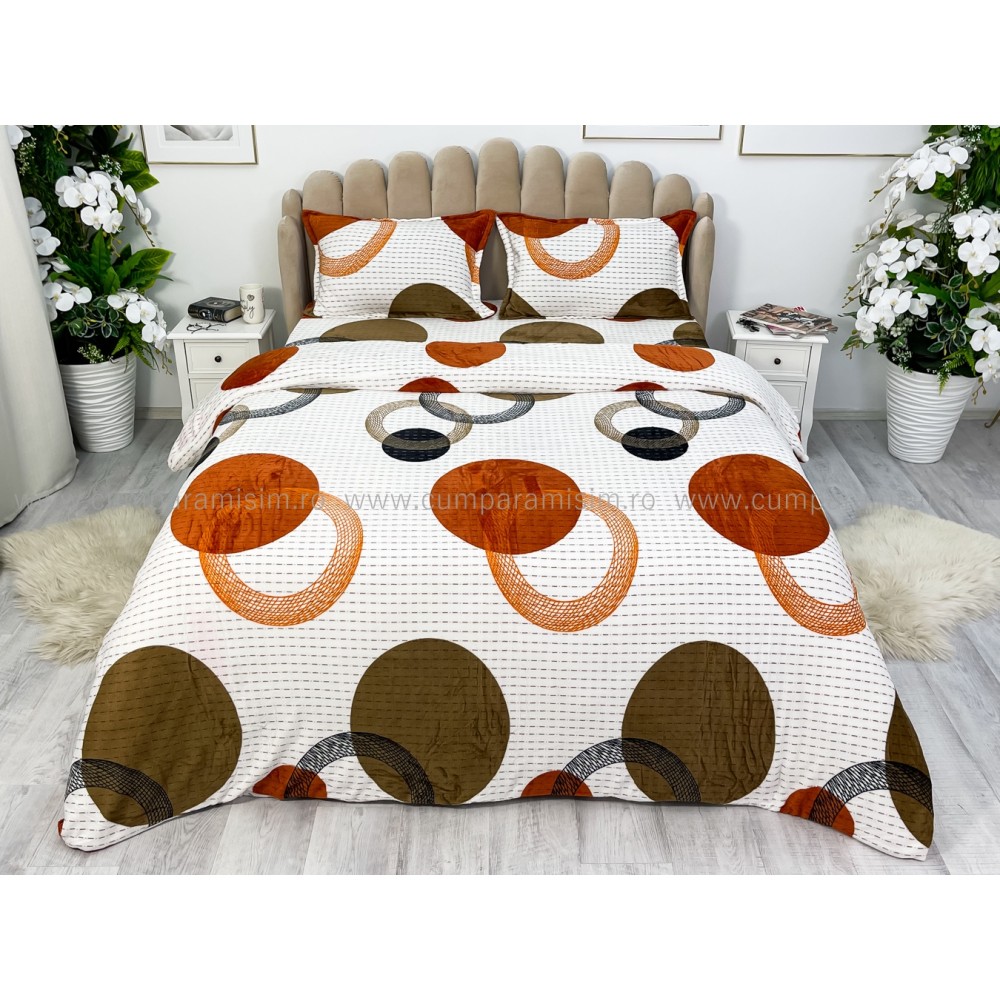 Lenjerie pat dublu, Super Pufoasa COCOLINO,cu ELASTIC, 4 piese, Crem-Maroniu, cercuri, buline, CumparaMisim, cod produs: YAF17
