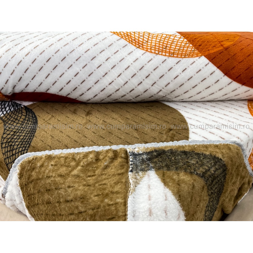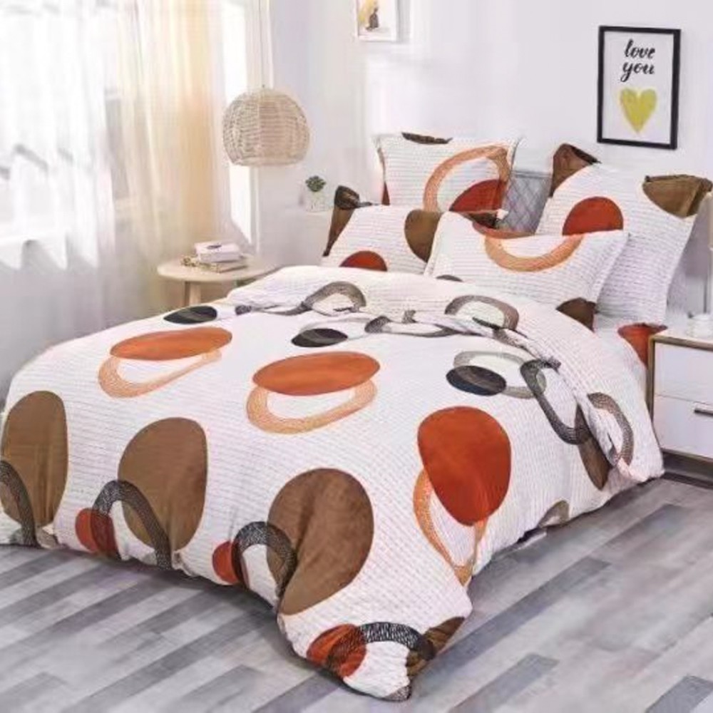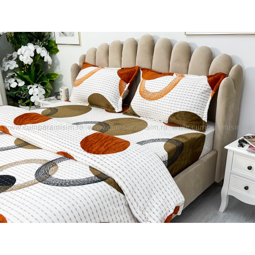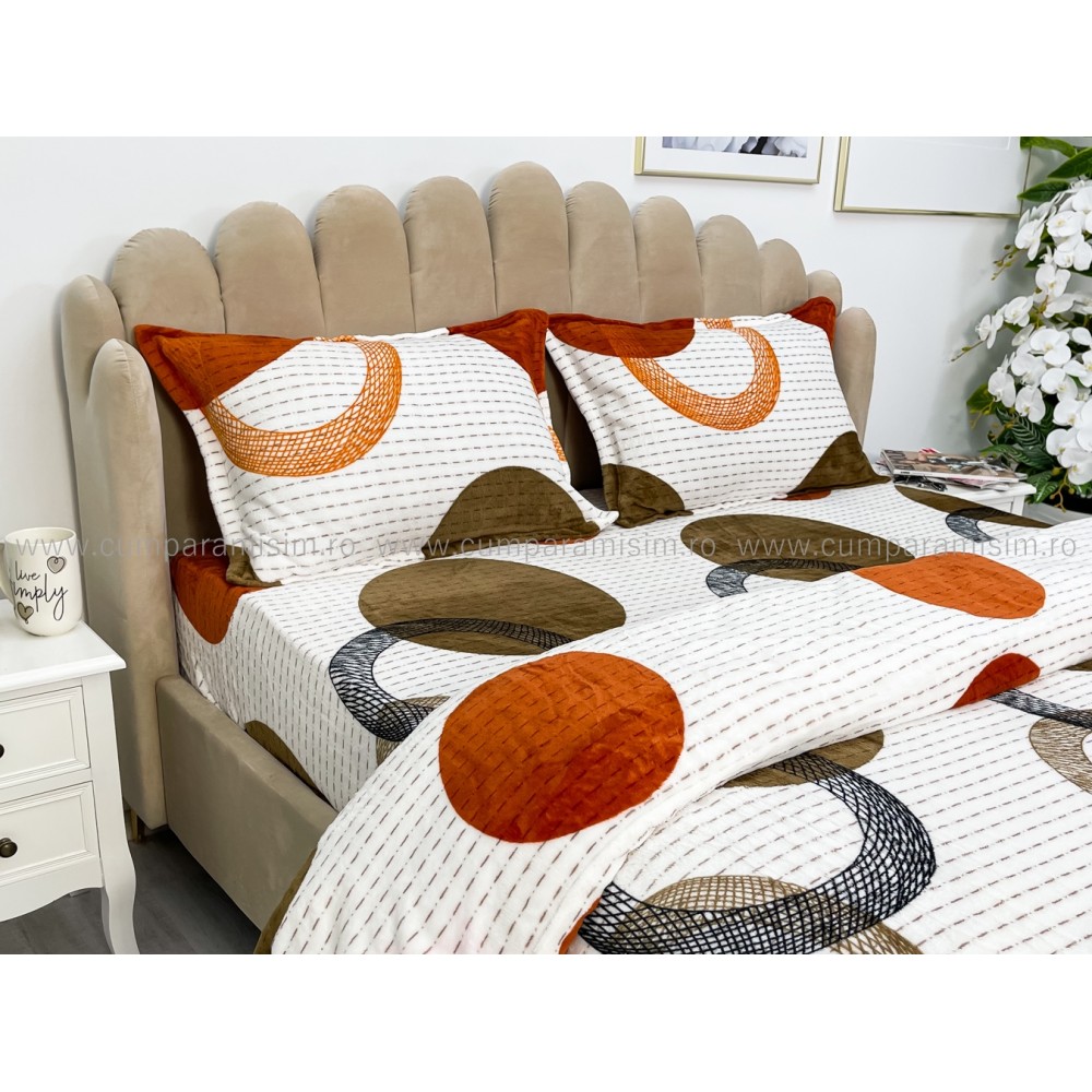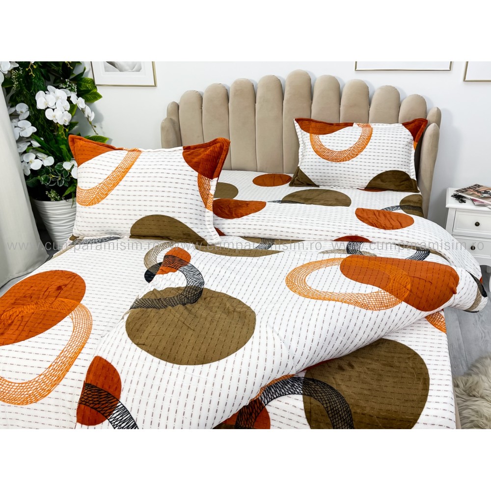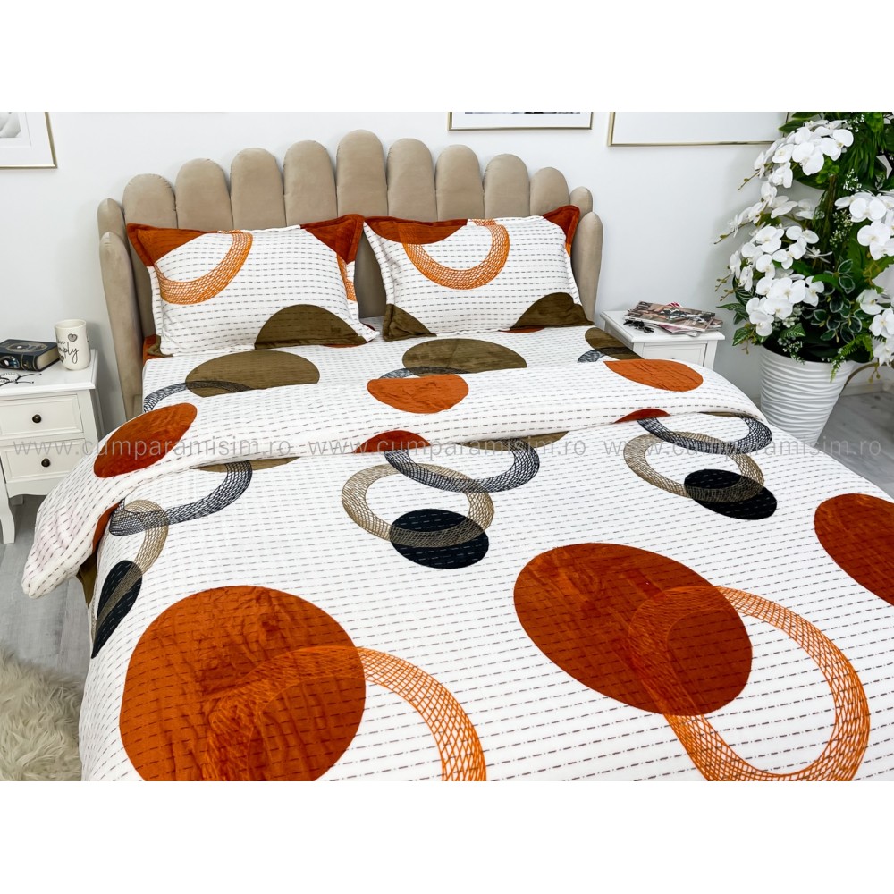 Lenjerie pat dublu, Super Pufoasa COCOLINO,cu ELASTIC, 4 piese, Crem-Maroniu, cercuri, buline, CumparaMisim, cod produs: YAF17