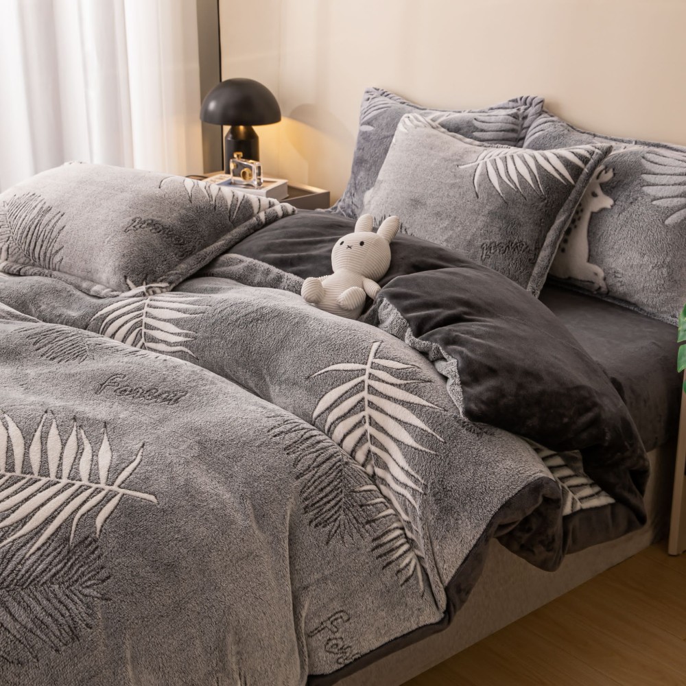 Lenjeria pufoasă COCOLINO cu 4 piese pentru pat DUBLU cu cearșaf cu elastic este alegerea ideală pentru a transforma serile reci de iarnă într-o oază de confort și căldură. Denumirea "Cocolino" evocă aceeași senzație moale și plăcută precum un ursuleț de pluș, datorită texturii sale incredibil de fine și mătăsoase. Fabricată dintr-o microfibră plusată ultra-fină, cunoscută sub numele de fleece, această lenjerie te va învălui într-o experiență luxoasă și relaxantă.