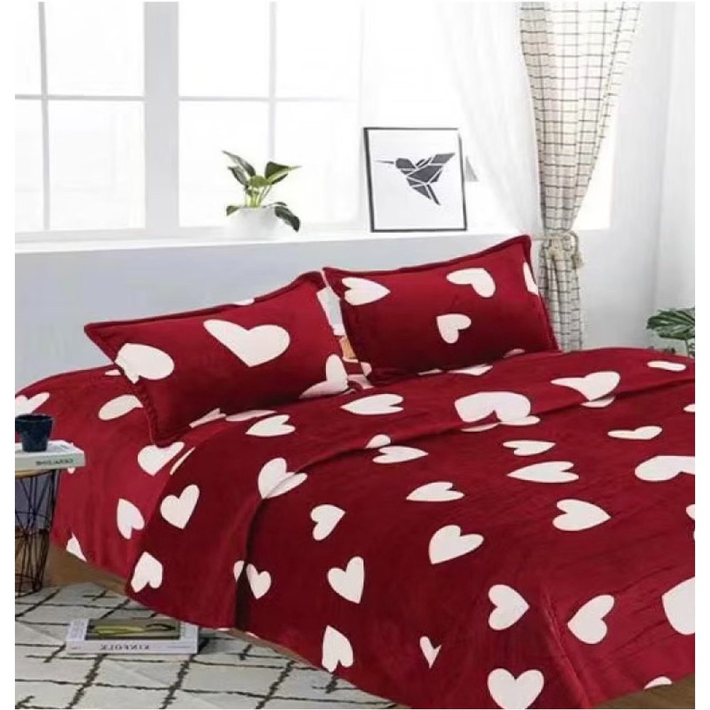 Lenjerie pat dublu, Super Pufoasa COCOLINO,cu ELASTIC, 4 piese, Rosu, inimioare, CumparaMisim, cod produs: YAF19