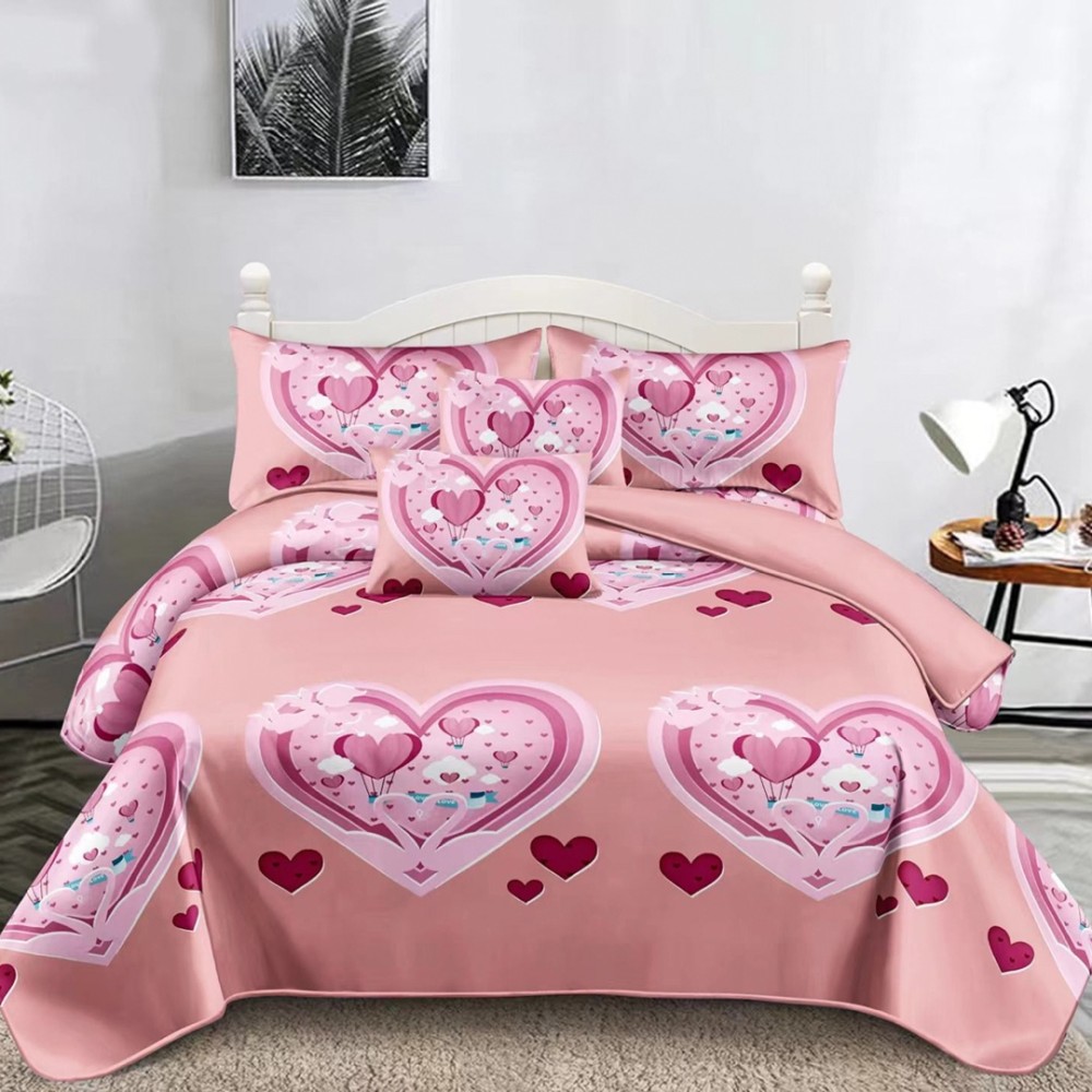 Lenjerie pat dublu, Super Pufoasa COCOLINO,cu ELASTIC, 4 piese, Roz, inimioare, CumparaMisim, cod produs: YAF7