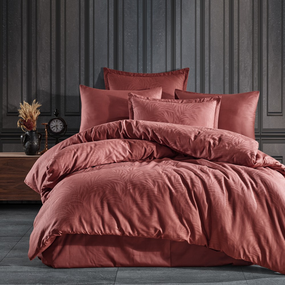 Lenjeria jacquard se diferențiază prin complexitatea modelului său, care nu este imprimat pe material, ci este țesut direct în țesătură. Acest proces de producere a materialului jacquard permite crearea unor modele unice, detaliate și extrem de durabile, care nu se vor estompa în timp, oferind lenjeriei de pat un aspect estetic plăcut și luxos. Lenjeria de pat din bumbac jacquard este renumită pentru rezistența sa la utilizarea intensivă și la spălările frecvente. În contrast cu alte materiale sintetice, bumbacul 100% nu păstrează căldura în exces și permite pielii să respire, asigurând o temperatură confortabilă pentru somn.