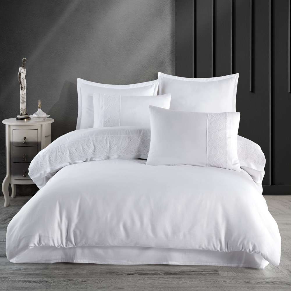 Lenjeria jacquard se diferențiază prin complexitatea modelului său, care nu este imprimat pe material, ci este țesut direct în țesătură. Acest proces de producere a materialului jacquard permite crearea unor modele unice, detaliate și extrem de durabile, care nu se vor estompa în timp, oferind lenjeriei de pat un aspect estetic plăcut și luxos. Lenjeria de pat din bumbac jacquard este renumită pentru rezistența sa la utilizarea intensivă și la spălările frecvente. În contrast cu alte materiale sintetice, bumbacul 100% nu păstrează căldura în exces și permite pielii să respire, asigurând o temperatură confortabilă pentru somn.