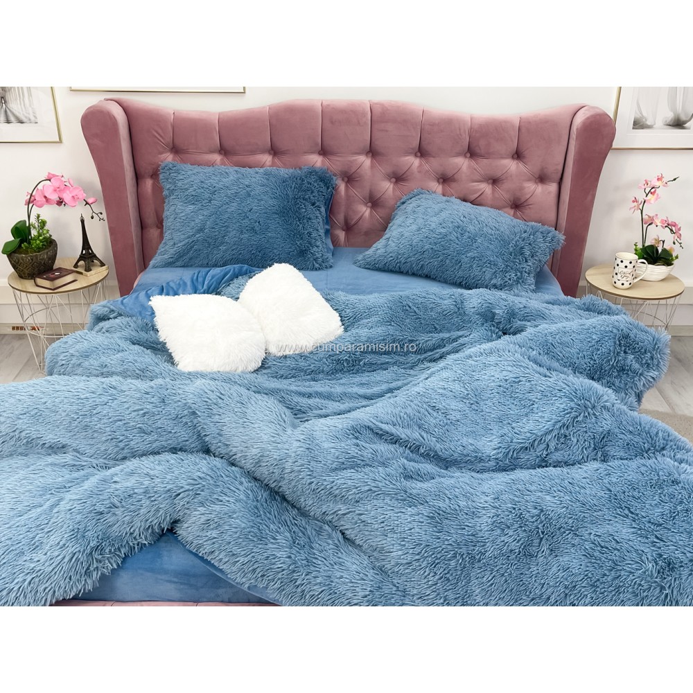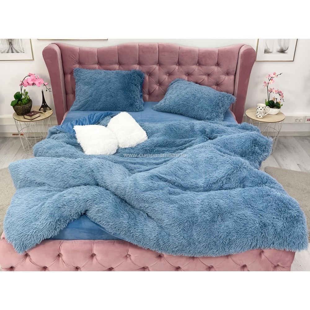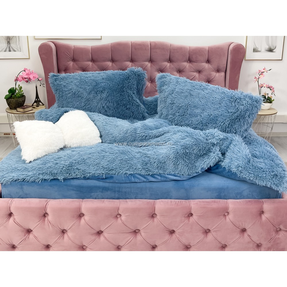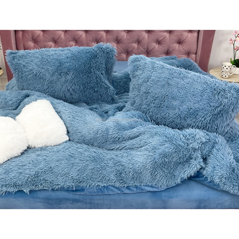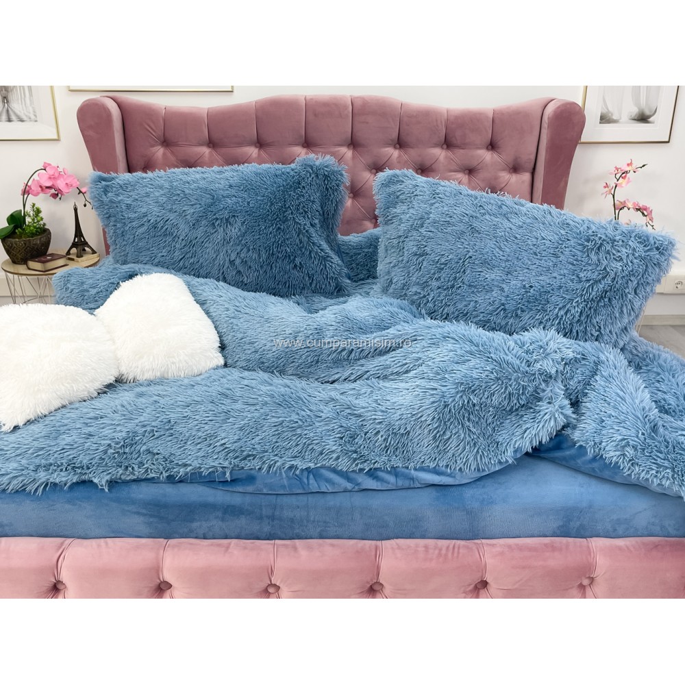 Lenjerie pat super pufoasa COCOLINO Fluffy 4 piese albastru , cod produs: CSA-FLF05