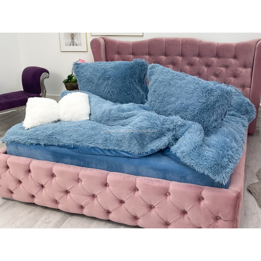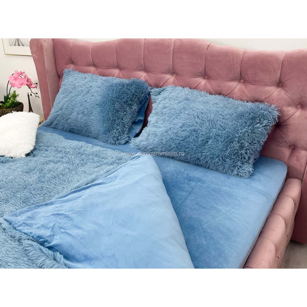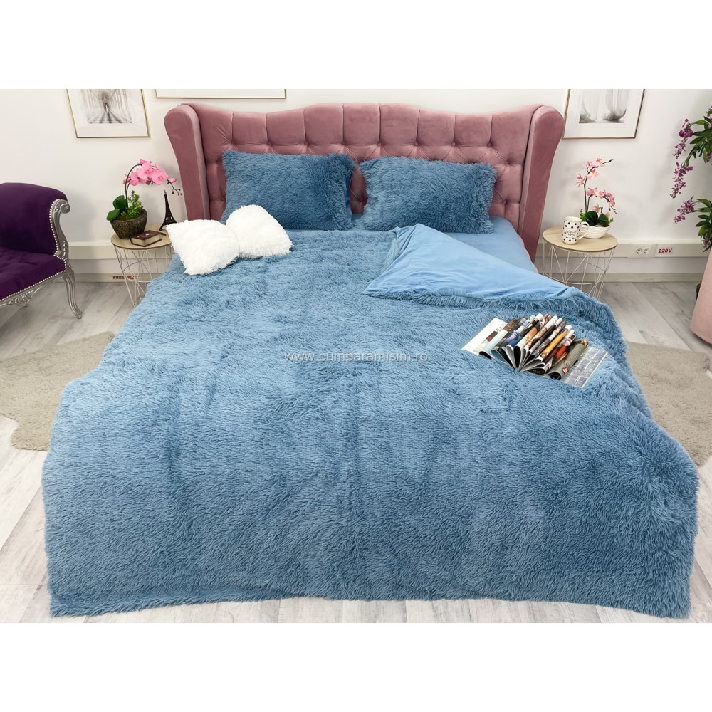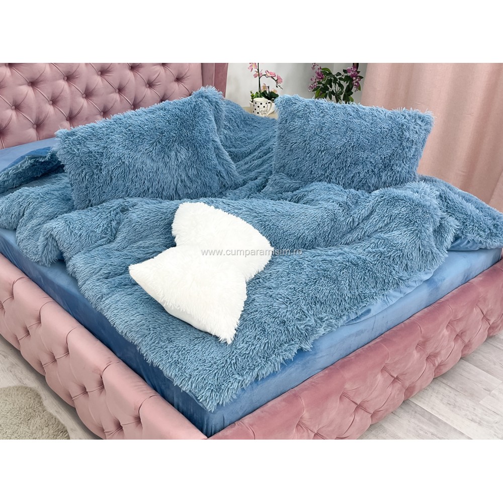 Lenjerie pat super pufoasa COCOLINO Fluffy 4 piese albastru , cod produs: CSA-FLF05