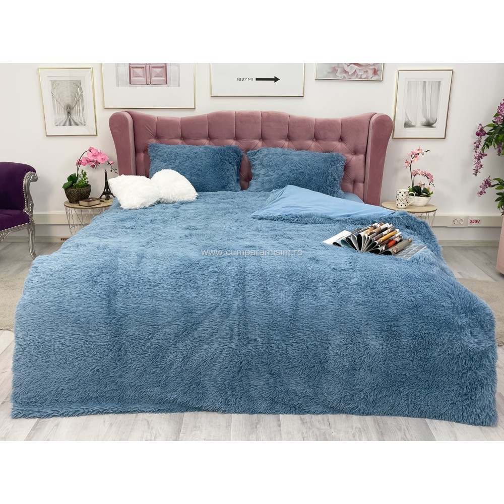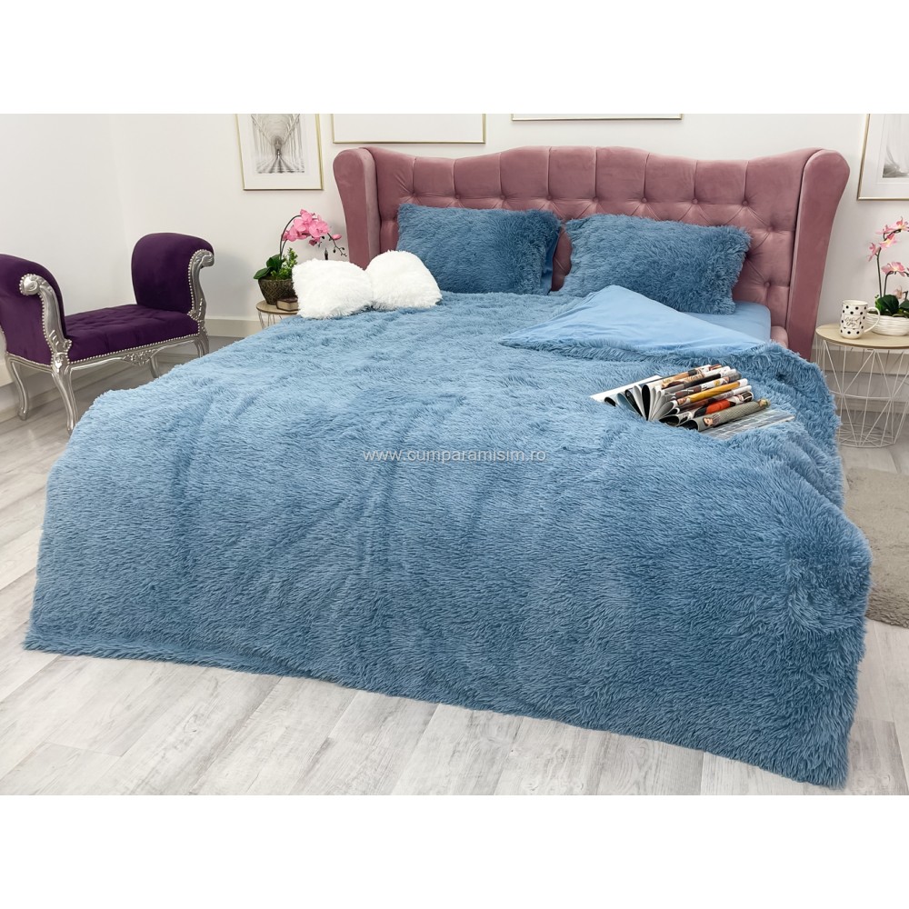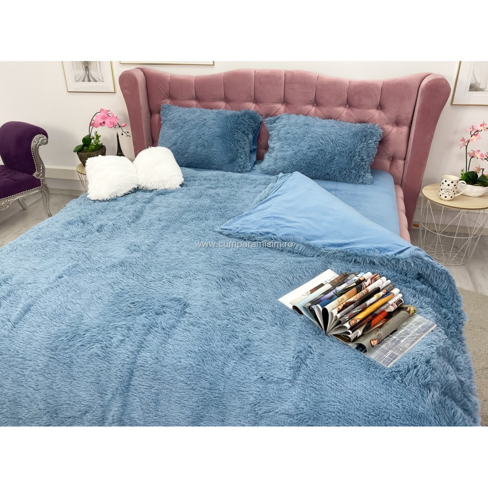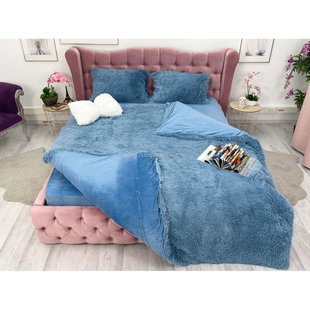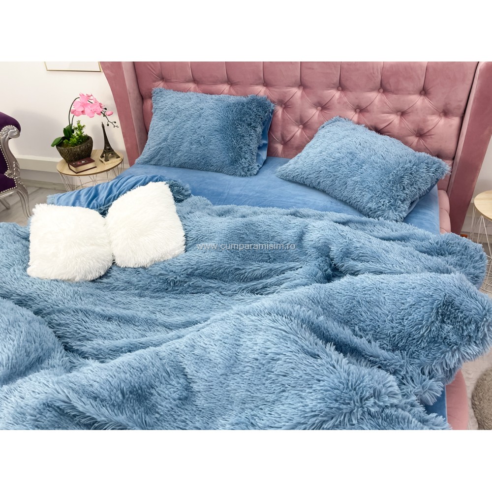 Lenjerie pat super pufoasa COCOLINO Fluffy 4 piese albastru , cod produs: CSA-FLF05