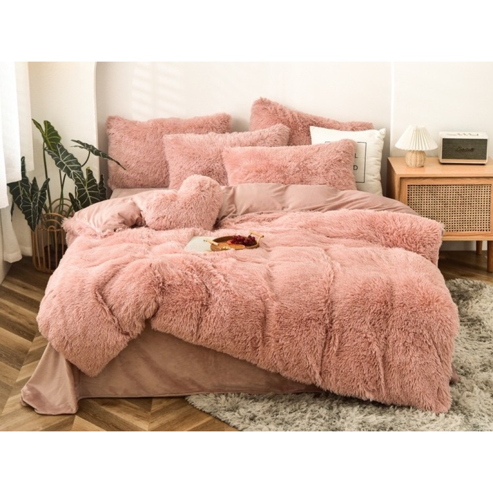 Lenjerie pufoasa COCOLINO cu 4 piese, pentru pat dublu. Produsul prezinta doua texturi de material cocolino, astfel incat cearsaful de pat, partea inferioara a cearsafului de pilota si partea inferioara a fetelor de perna sunt din microfibra plusata fina; cearsaful de pilota pe fata principala si fetele de perna sunt din cocolino(microfibra) super pufos, fluffy.