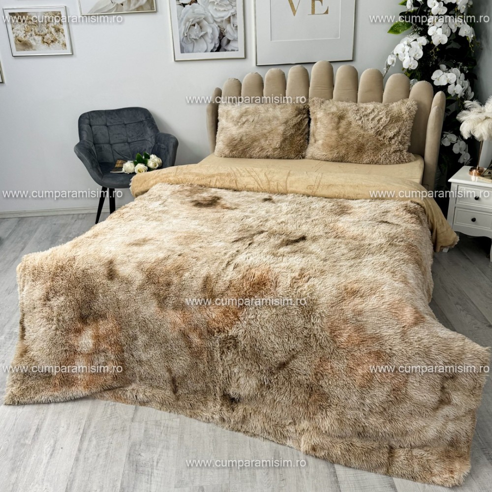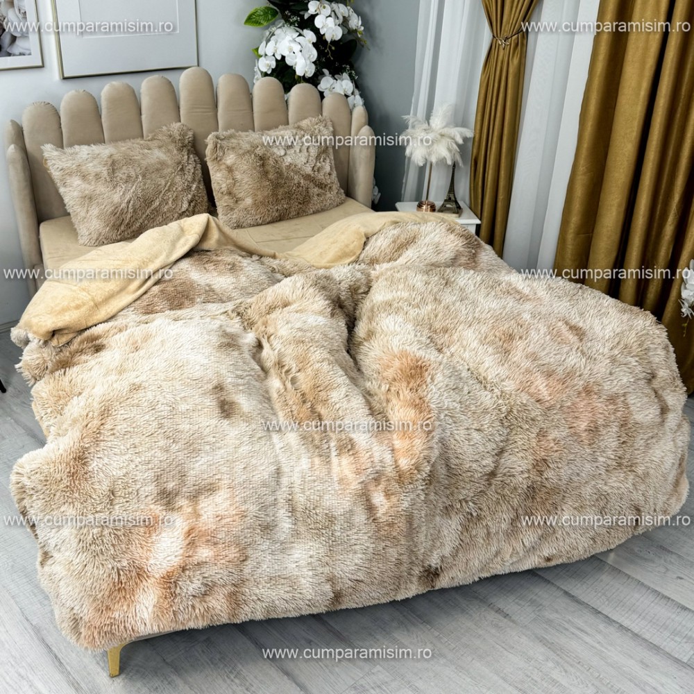 Lenjerie pat super pufoasa, COCOLINO Fluffy, 4 piese, Bej inchis degrade, cod produs: FLF906
