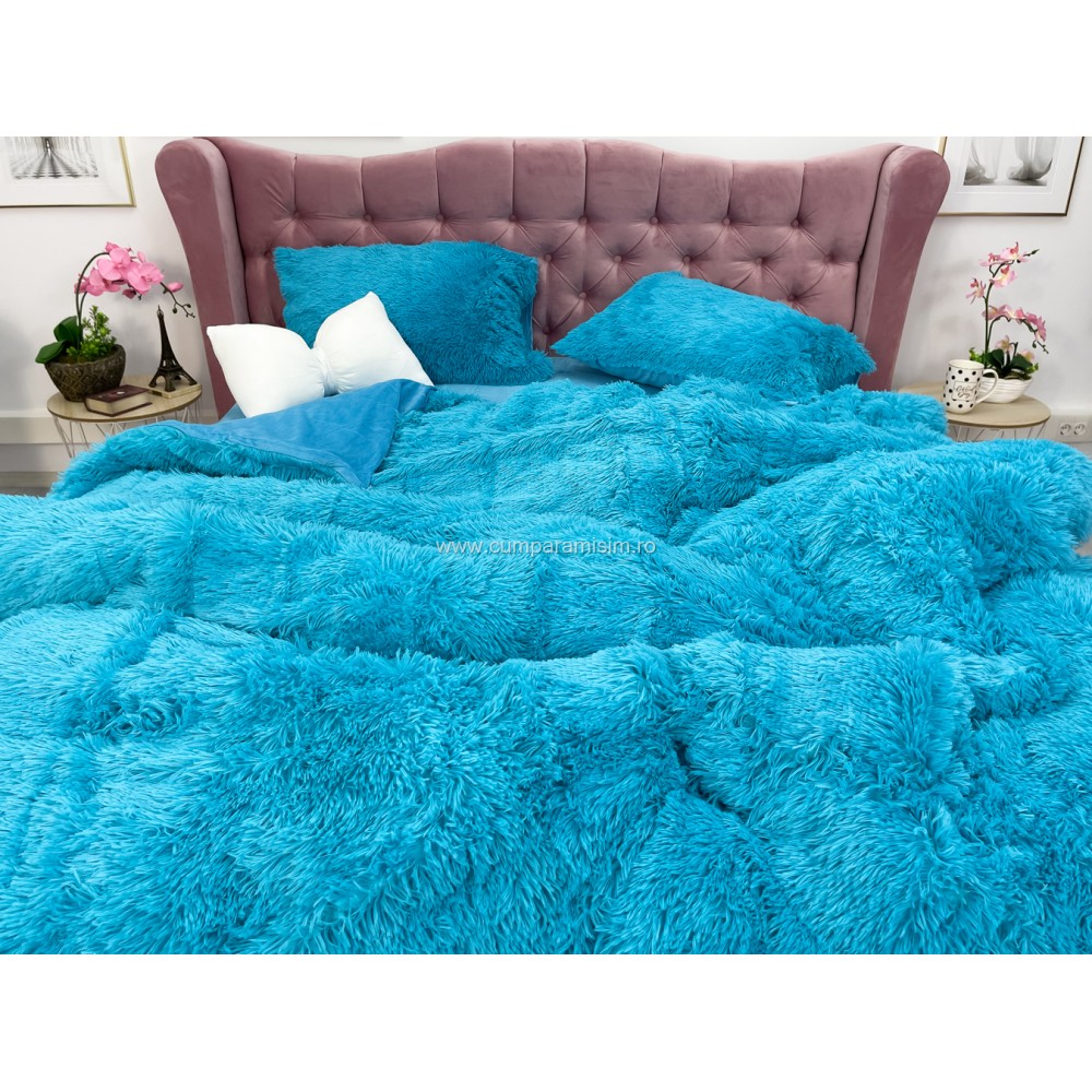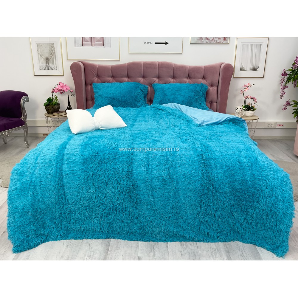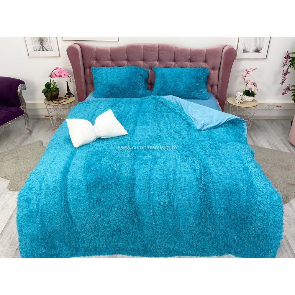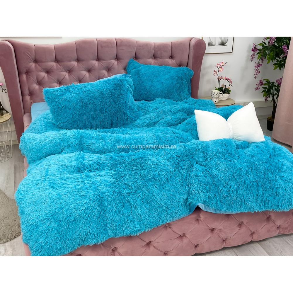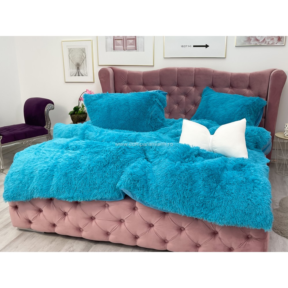 Lenjerie pat super pufoasa COCOLINO Fluffy 4 piese bleu intens , cod produs: CSA-FLF08