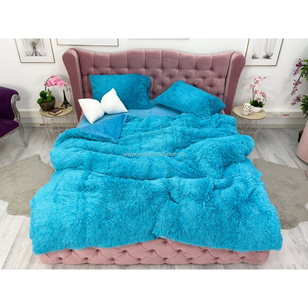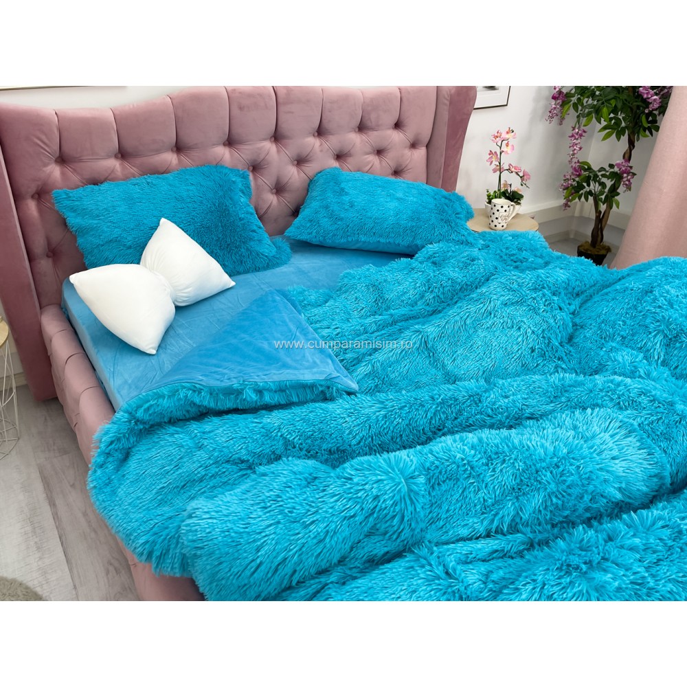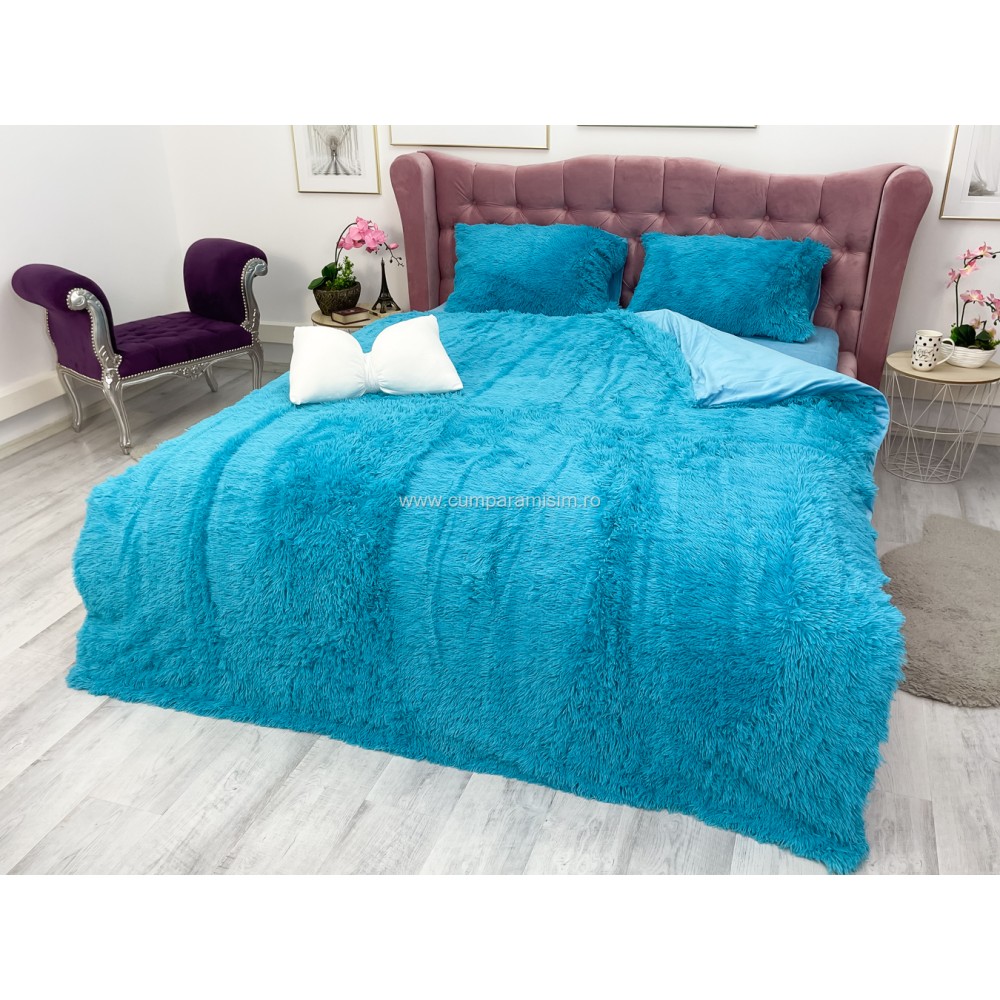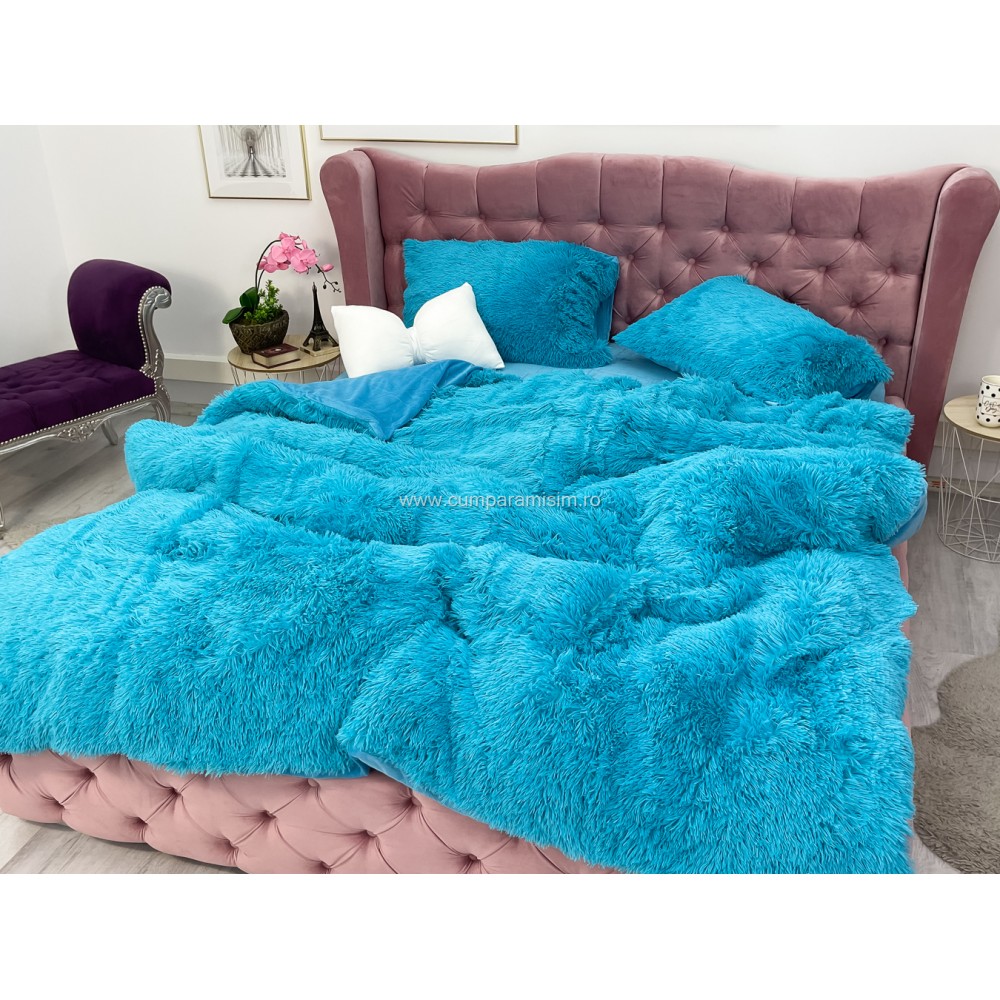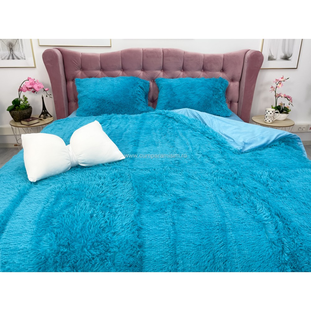 Lenjerie pat super pufoasa COCOLINO Fluffy 4 piese bleu intens , cod produs: CSA-FLF08