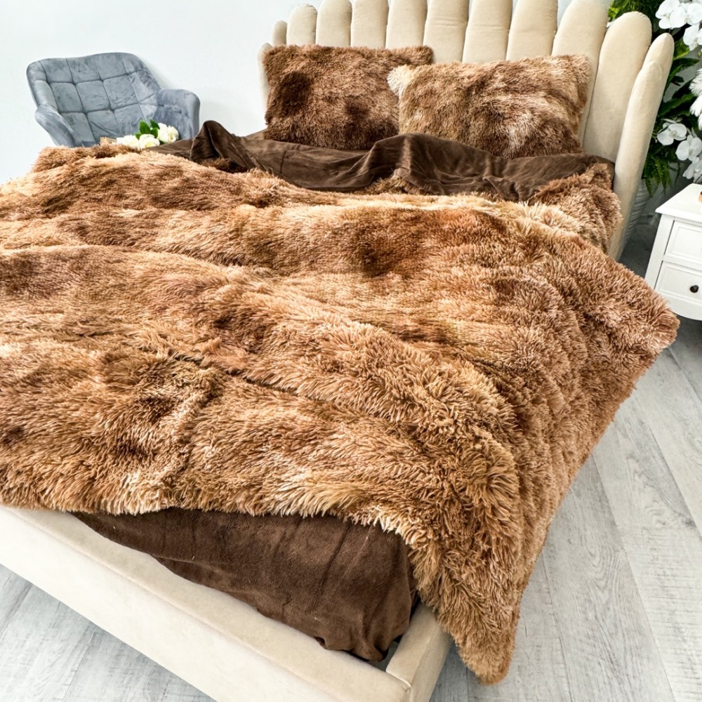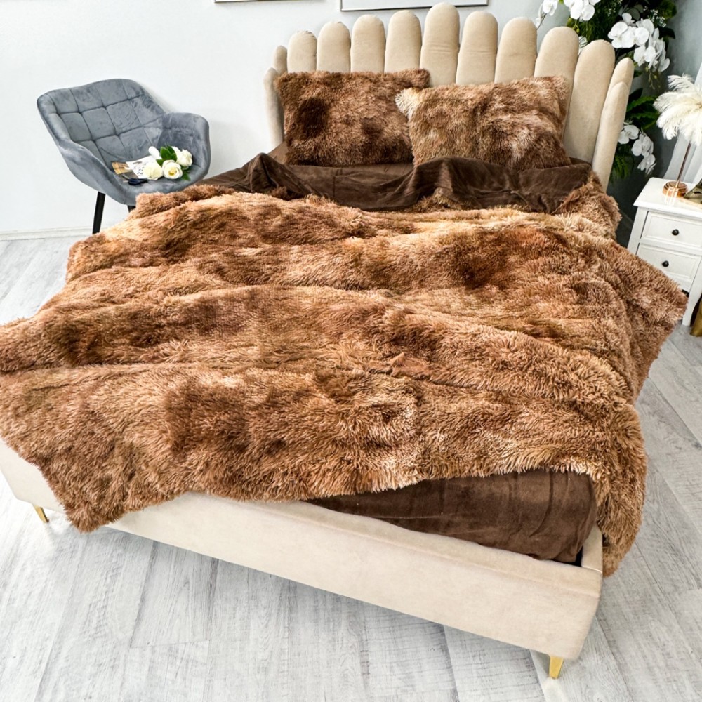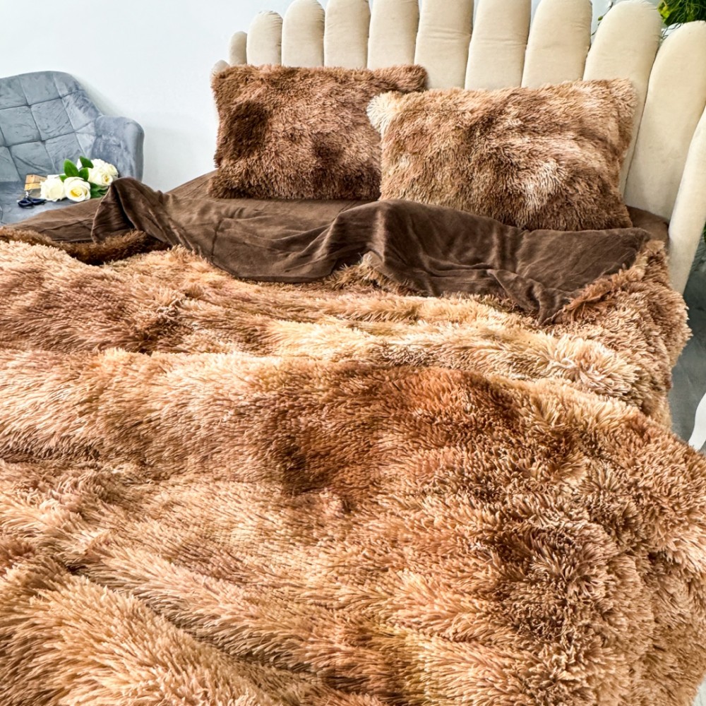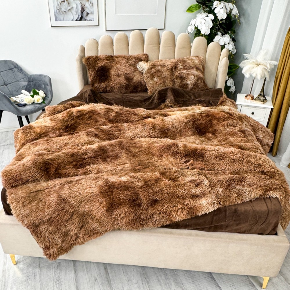 Lenjerie pat super pufoasa, COCOLINO Fluffy, 4 piese, maro degrade, cod produs: FLF903