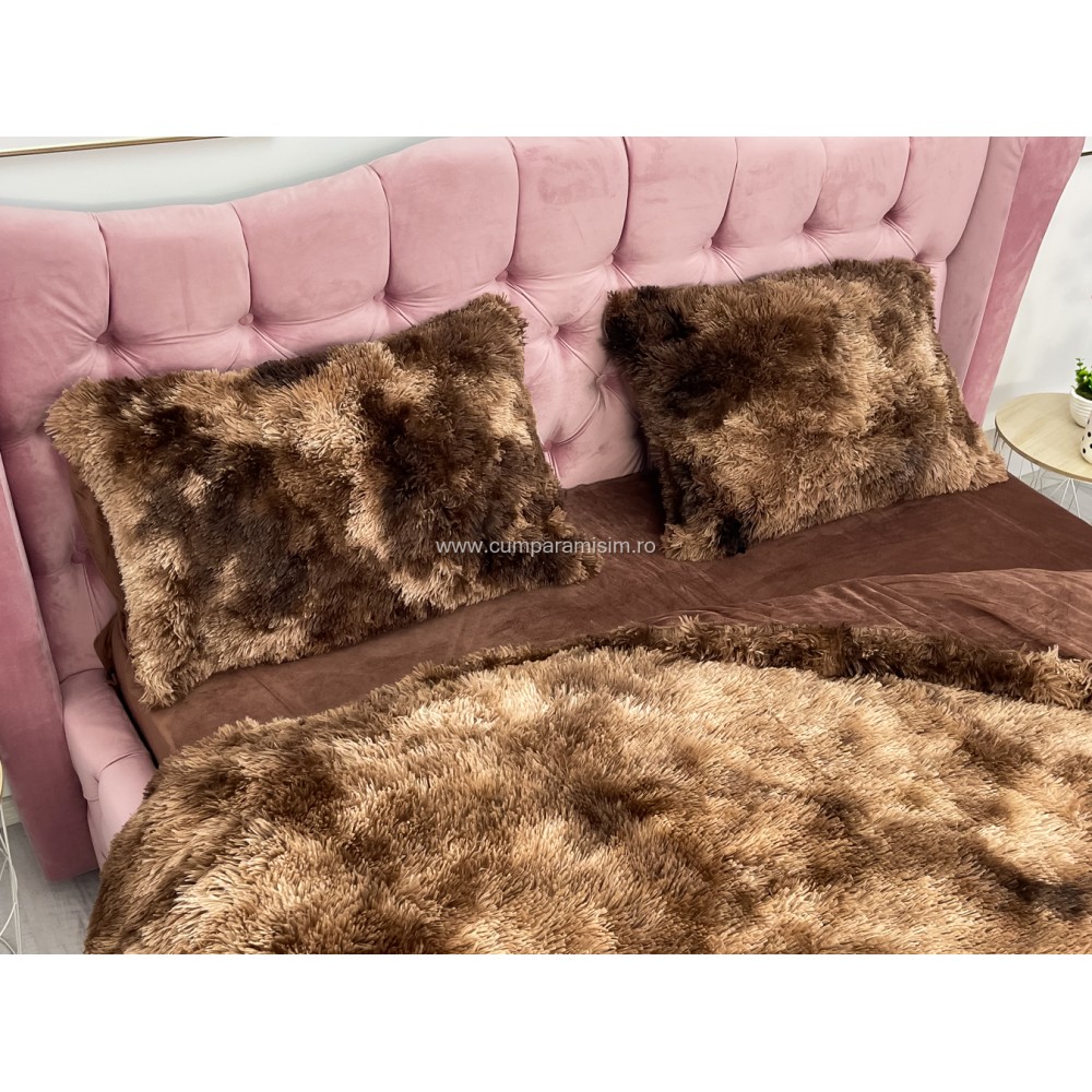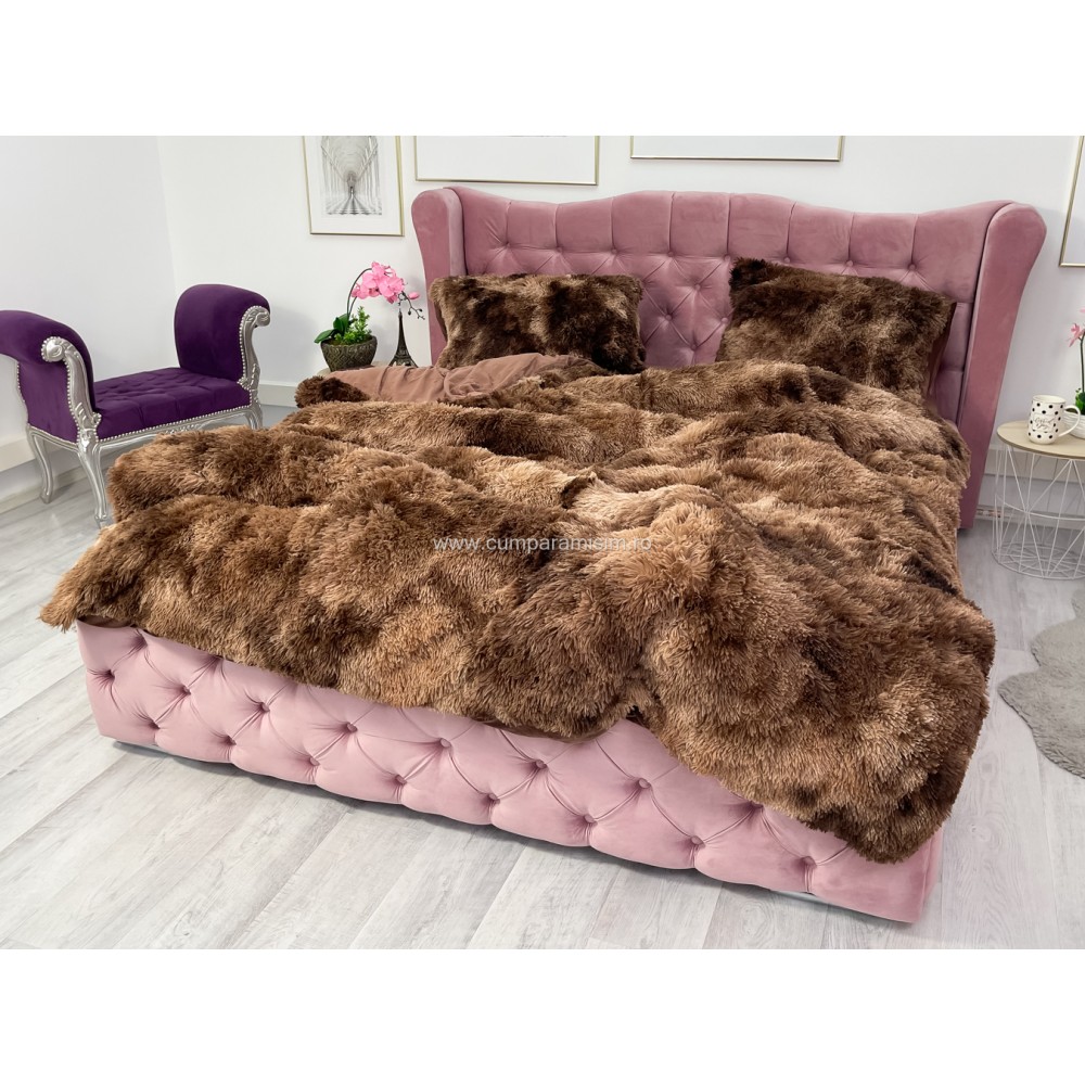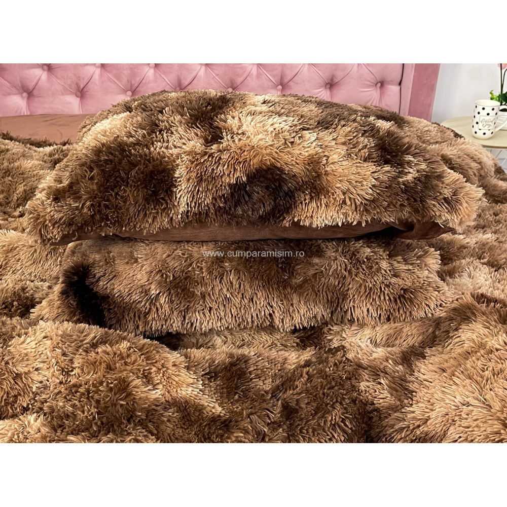 Lenjerie pufoasa COCOLINO cu 4 piese, pentru pat dublu. Produsul prezinta doua texturi de material cocolino, astfel incat cearsaful de pat, partea inferioara a cearsafului de pilota si partea inferioara a fetelor de perna sunt din microfibra plusata fina; cearsaful de pilota pe fata principala si fetele de perna sunt din cocolino(microfibra) super pufos, fluffy.