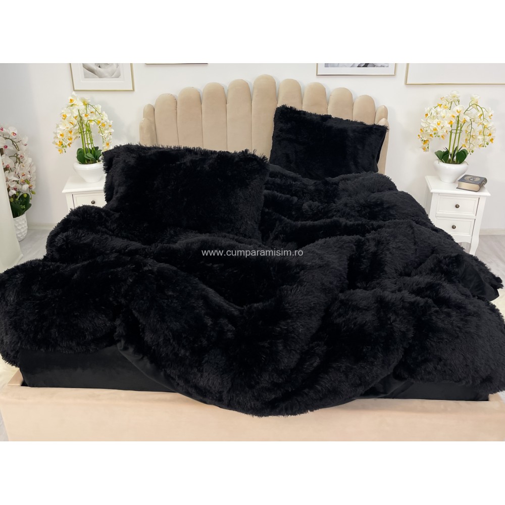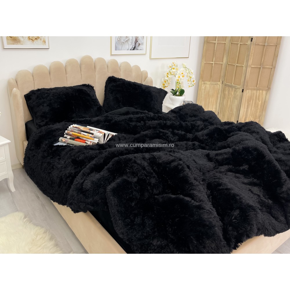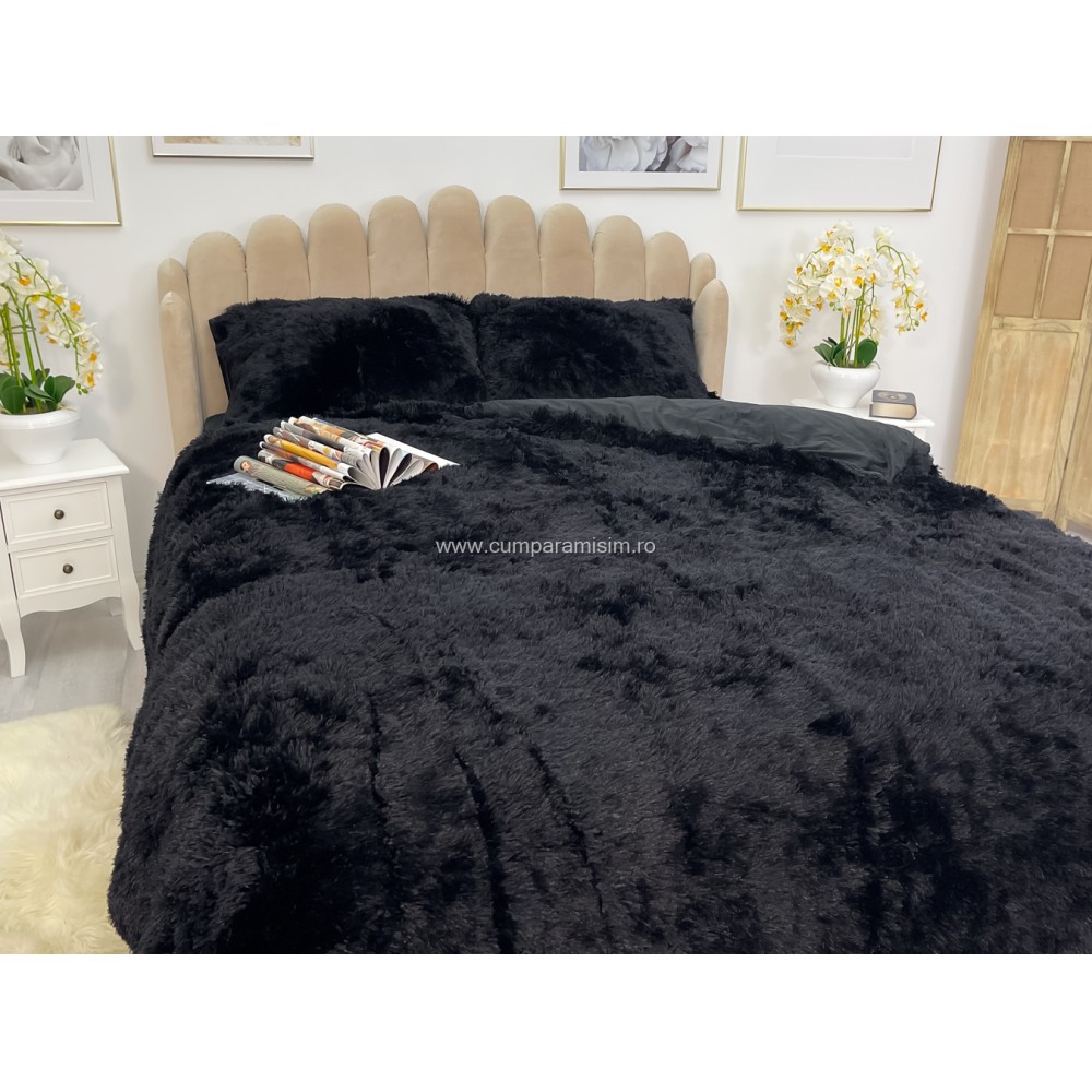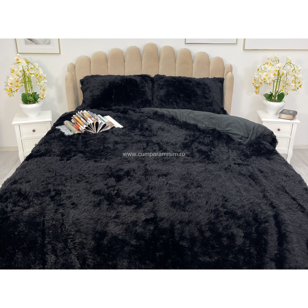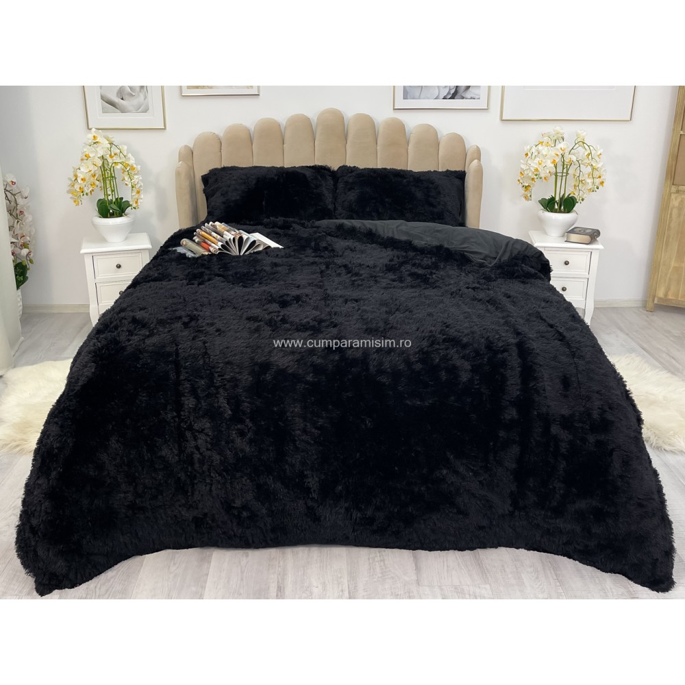 Lenjerie pat super pufoasa COCOLINO Fluffy 4 piese neagra, cod produs: FLF1
