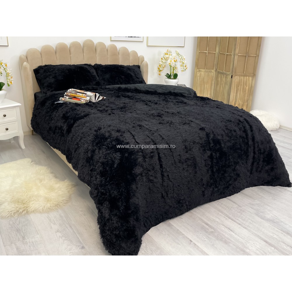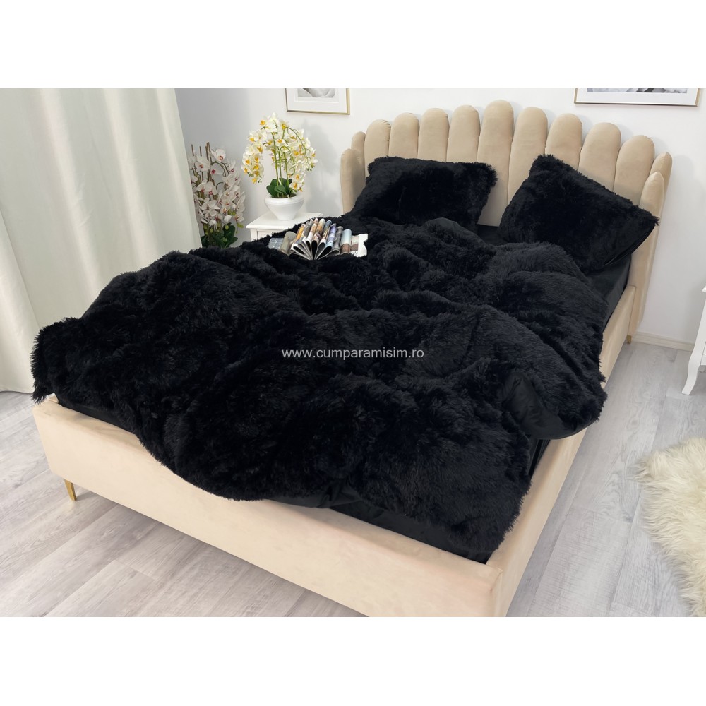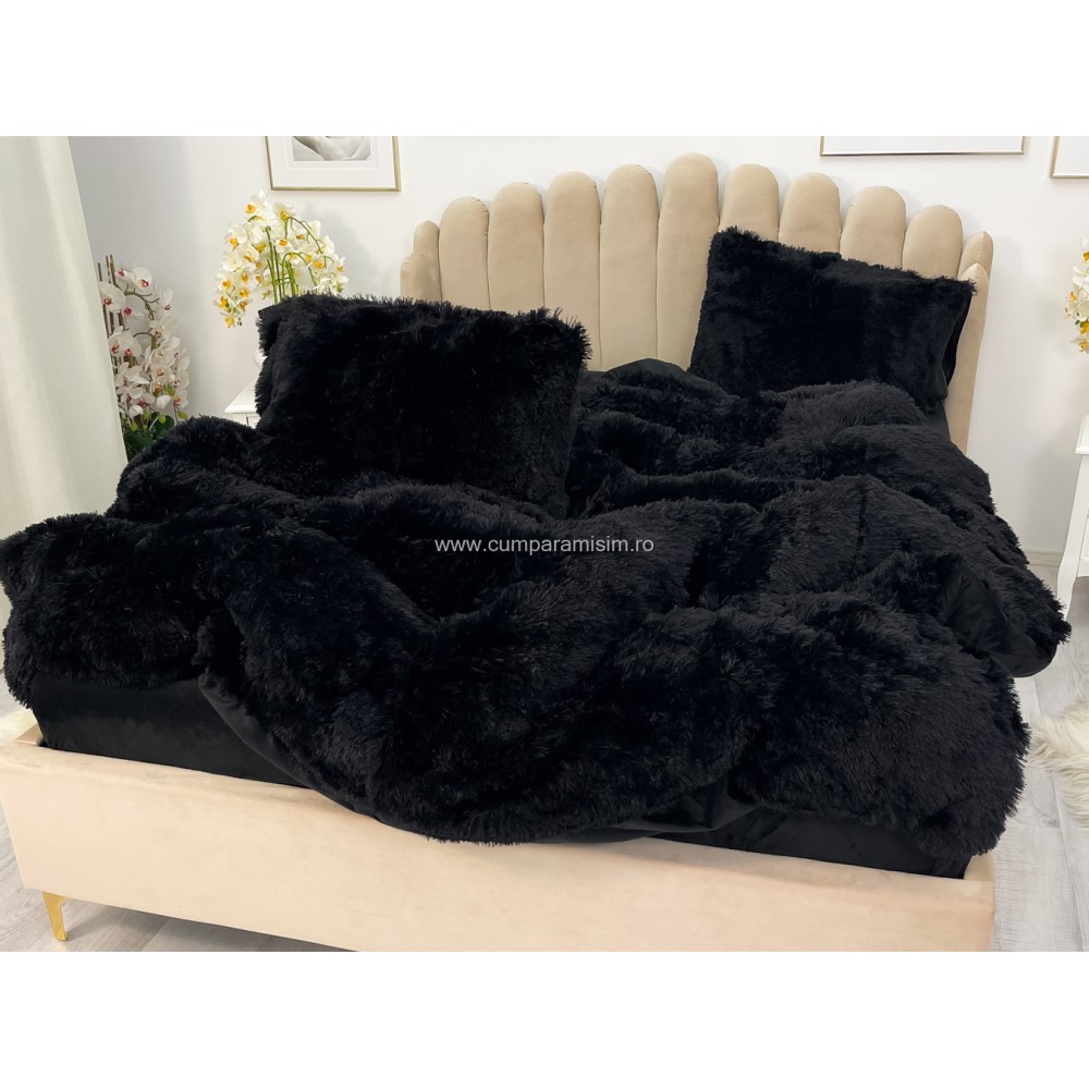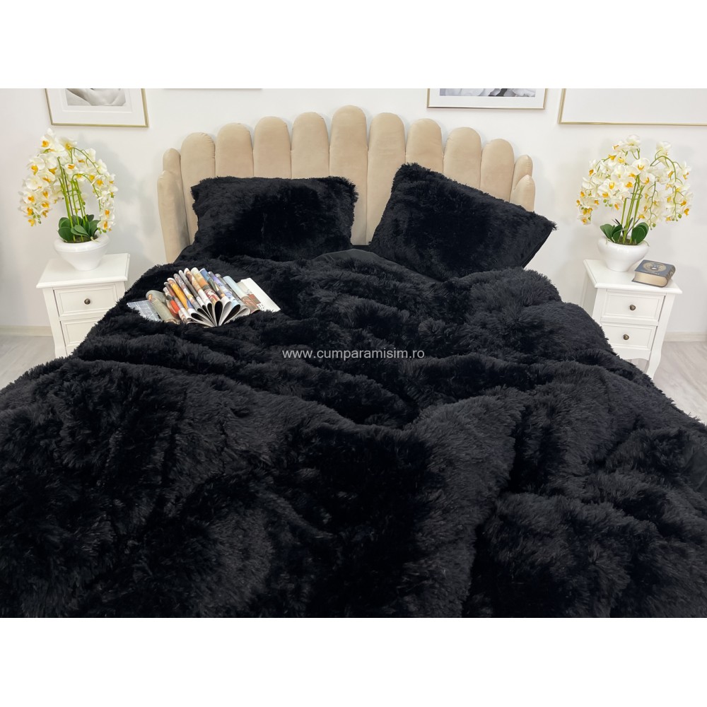 Lenjerie pat super pufoasa COCOLINO Fluffy 4 piese neagra, cod produs: FLF1