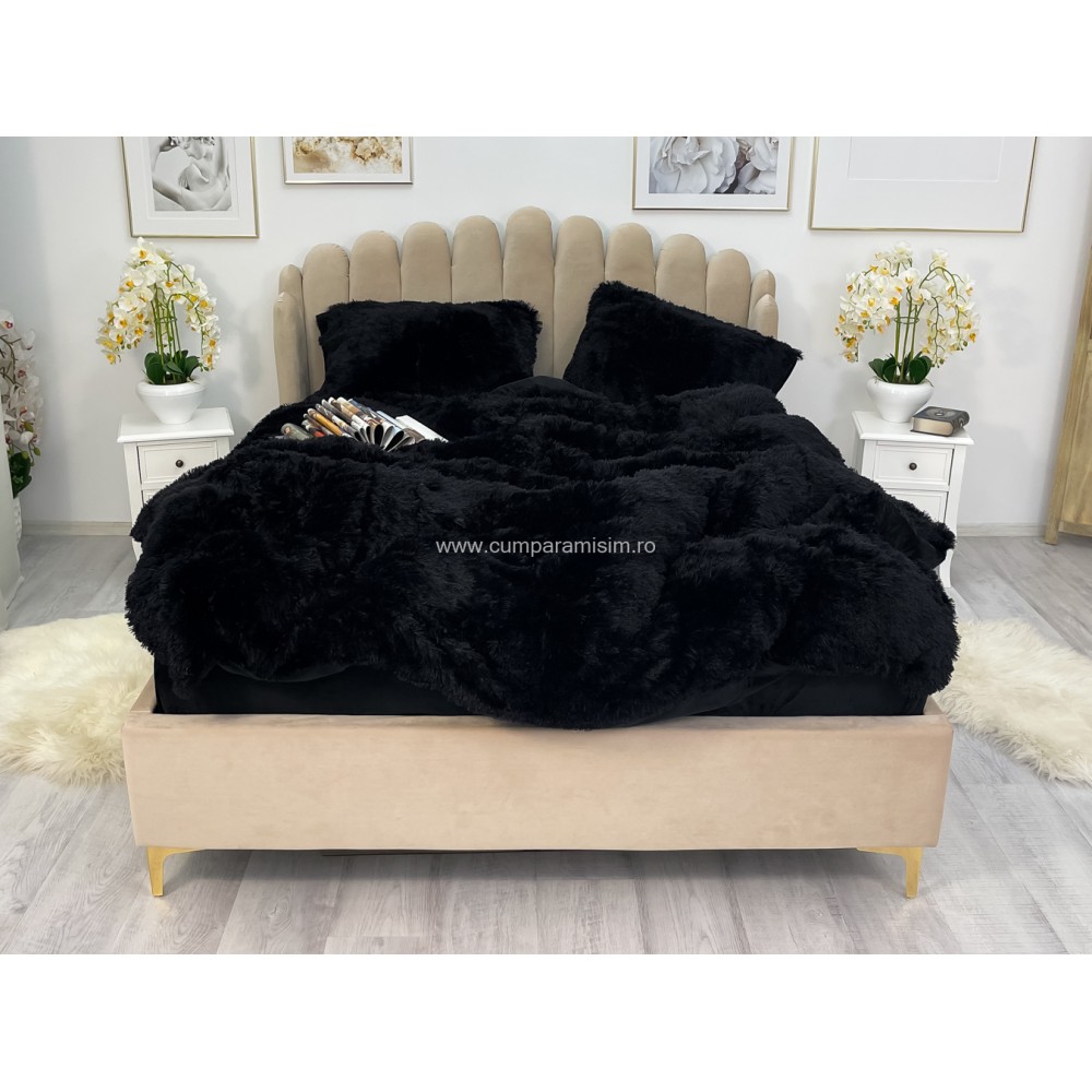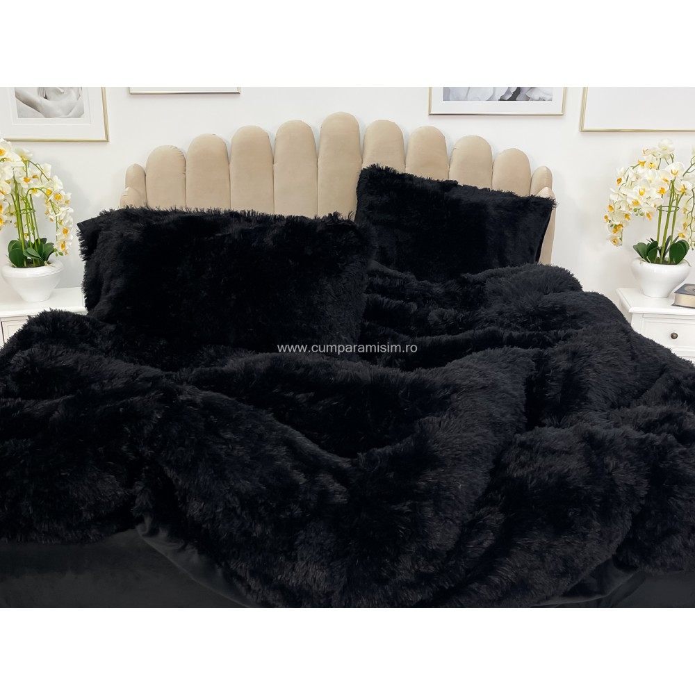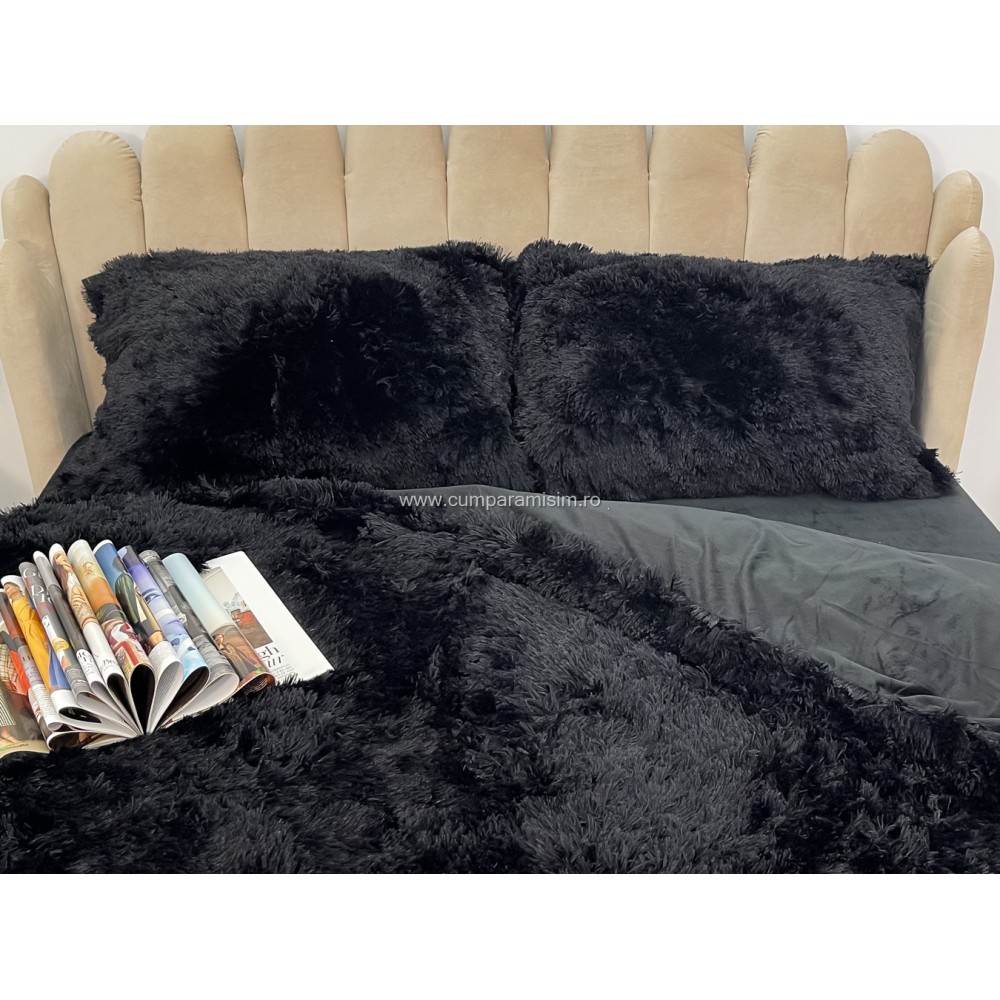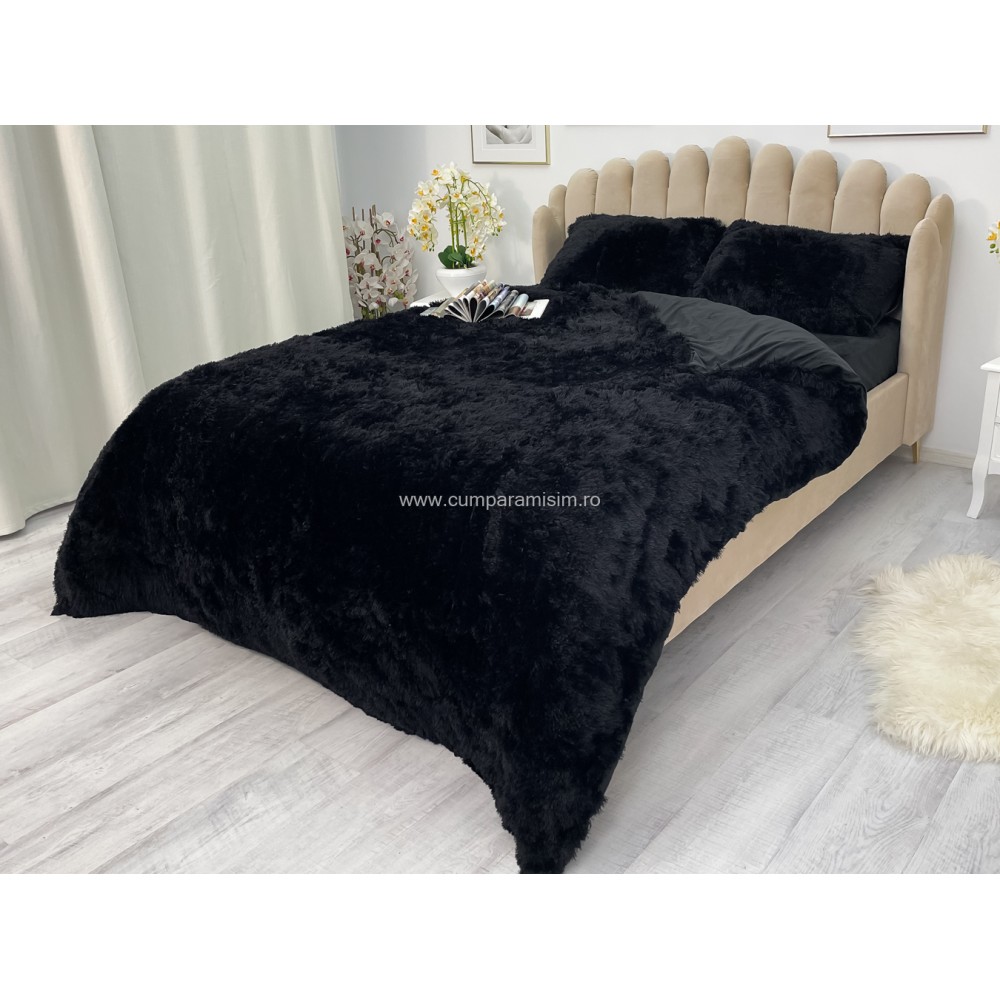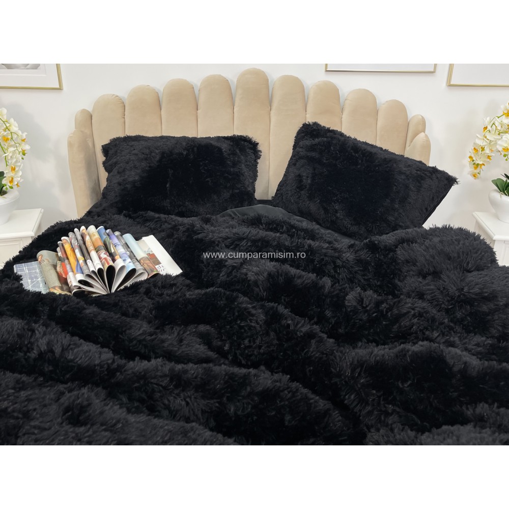 Lenjerie pat super pufoasa COCOLINO Fluffy 4 piese neagra, cod produs: FLF1