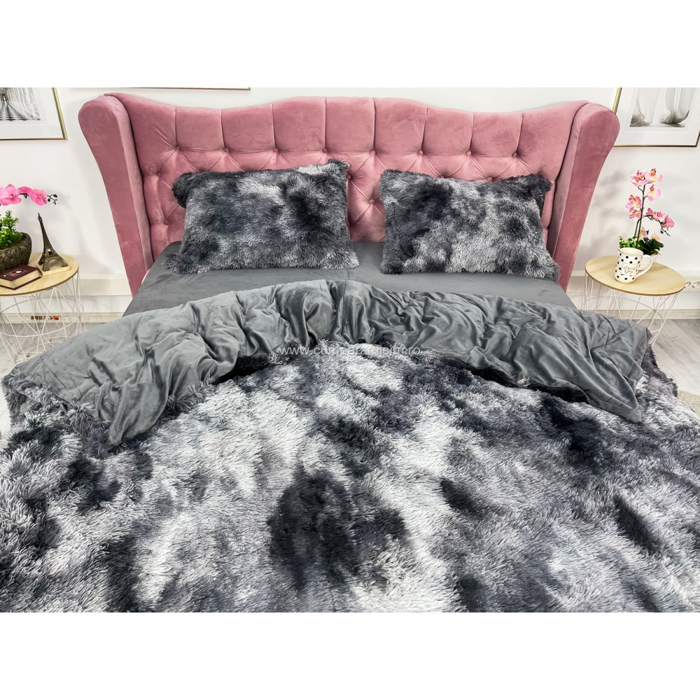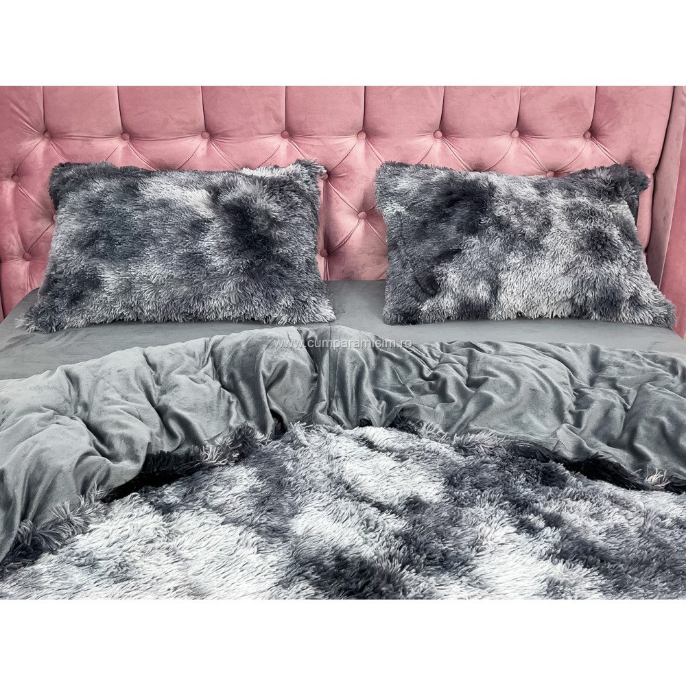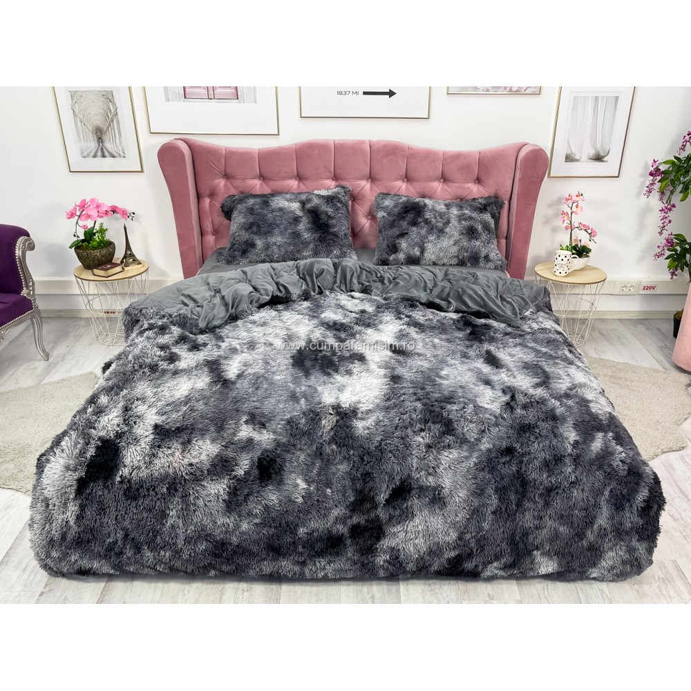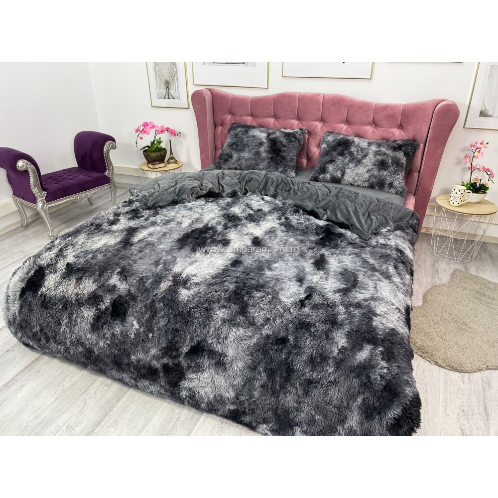 Lenjerie pat super pufoasa COCOLINO Fluffy 4 piese Negru-Gri, cod produs: FLF19