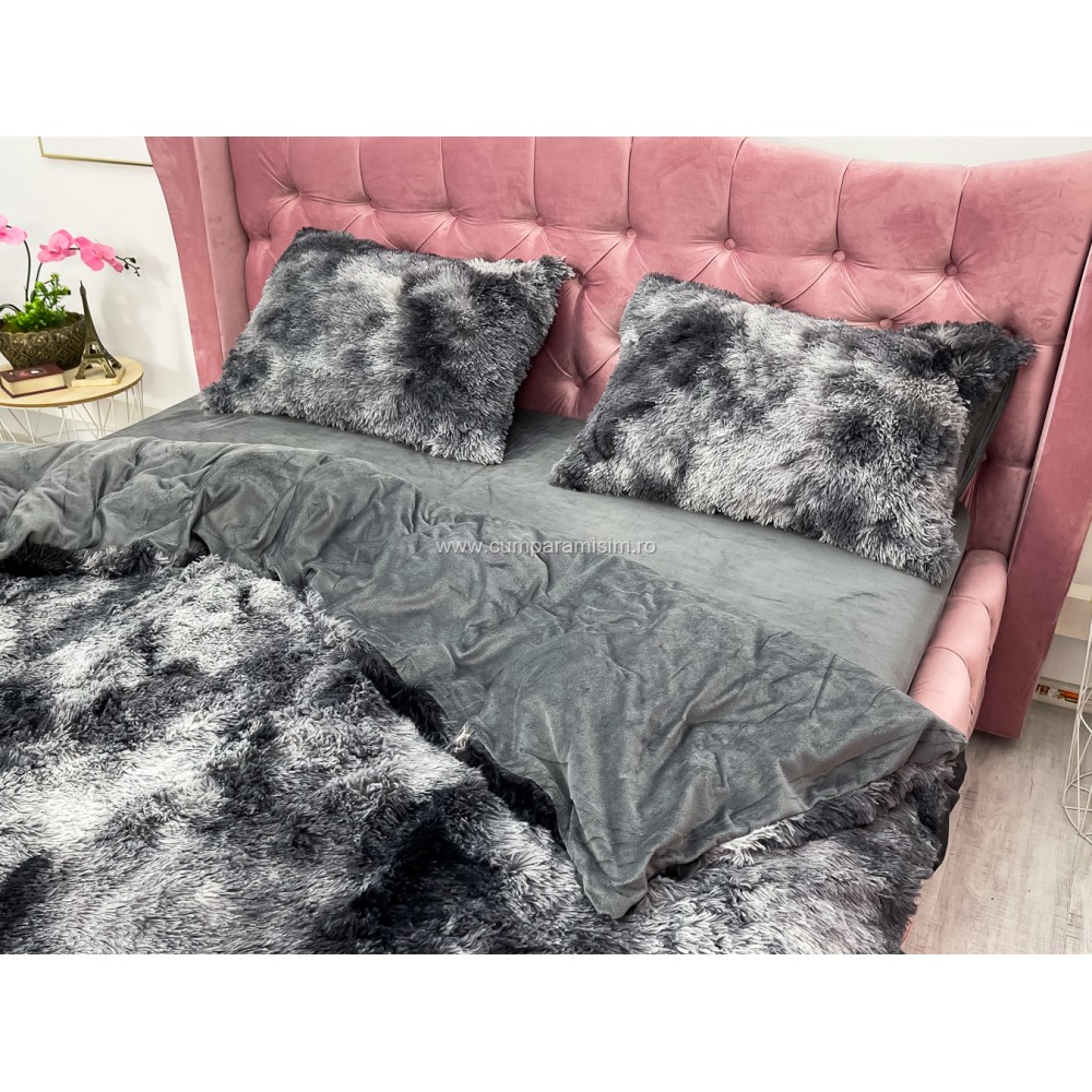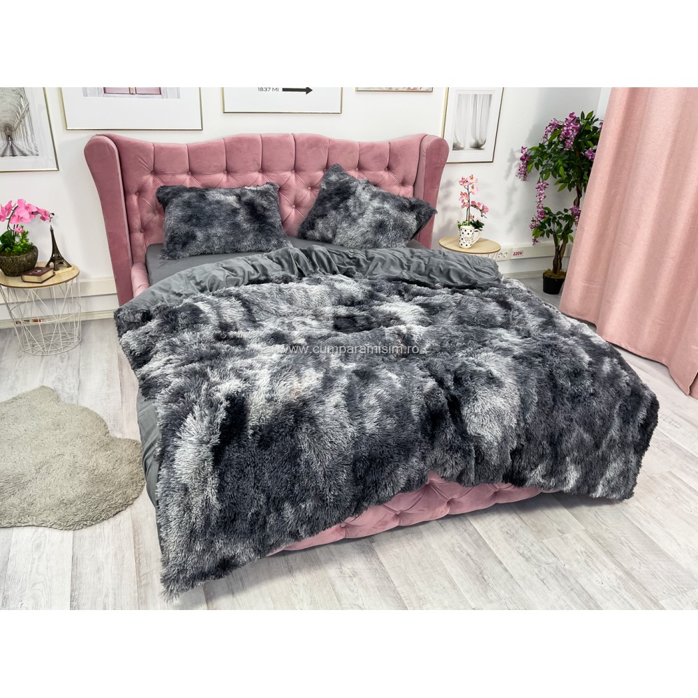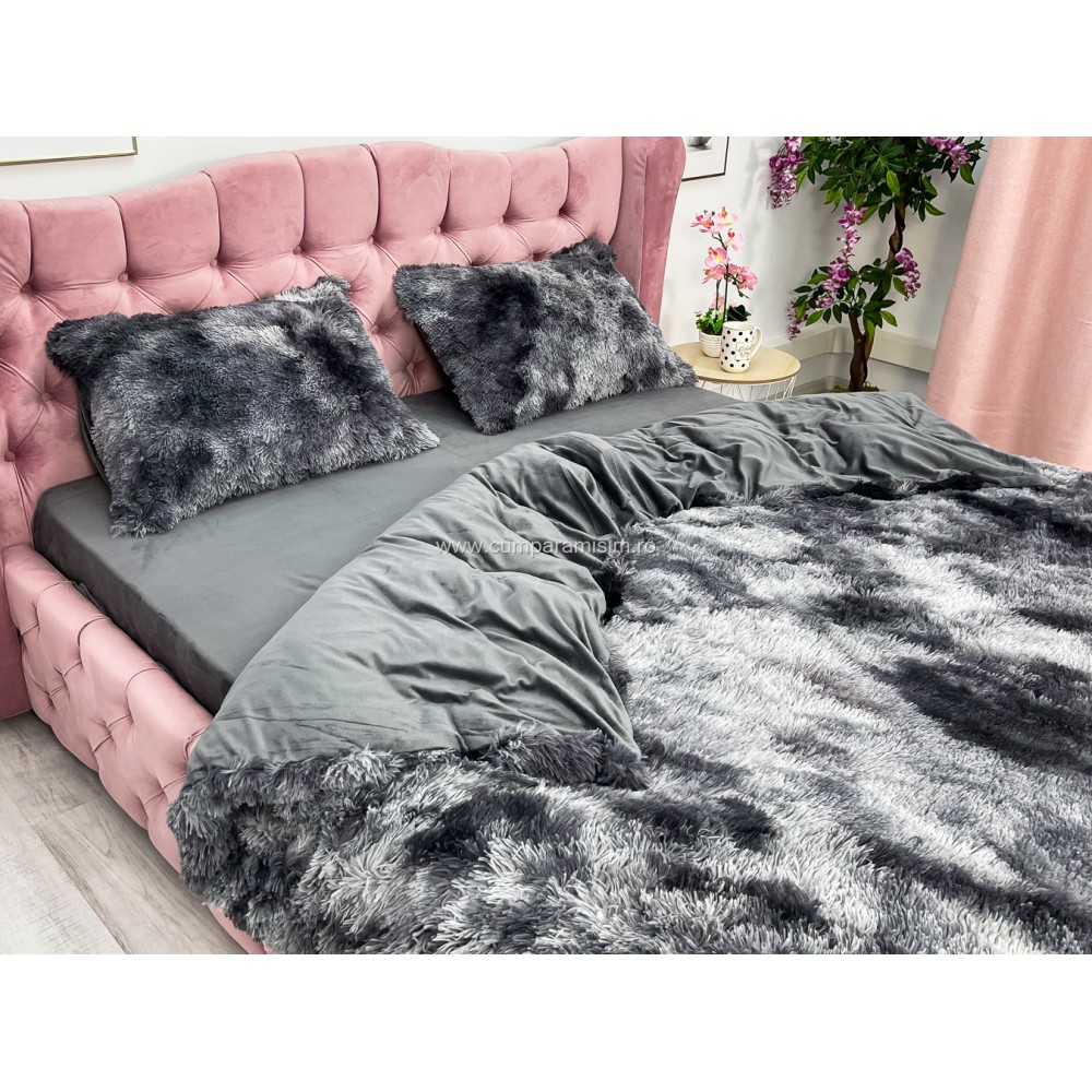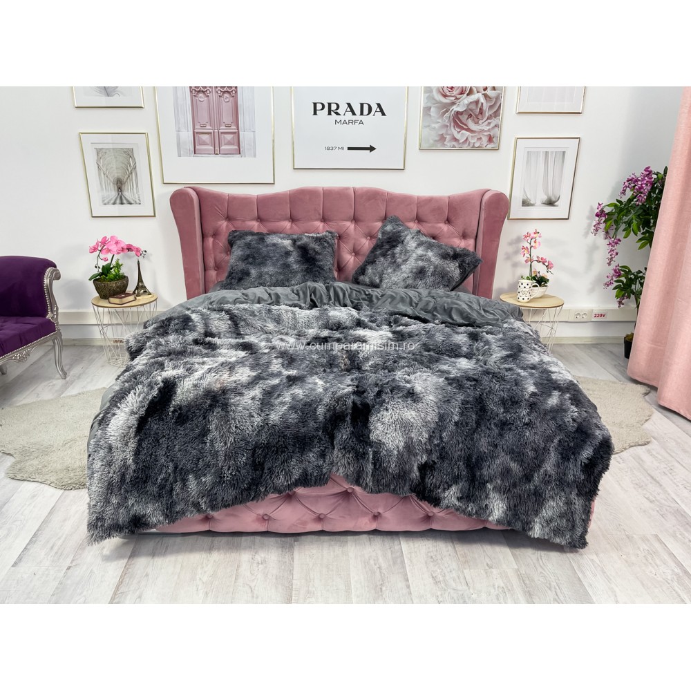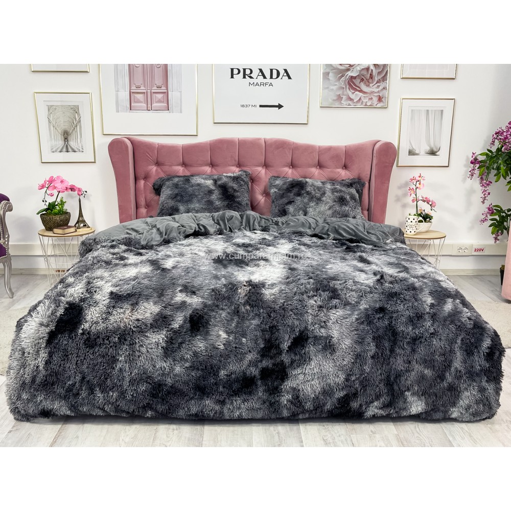 Lenjerie pat super pufoasa COCOLINO Fluffy 4 piese Negru-Gri, cod produs: FLF19
