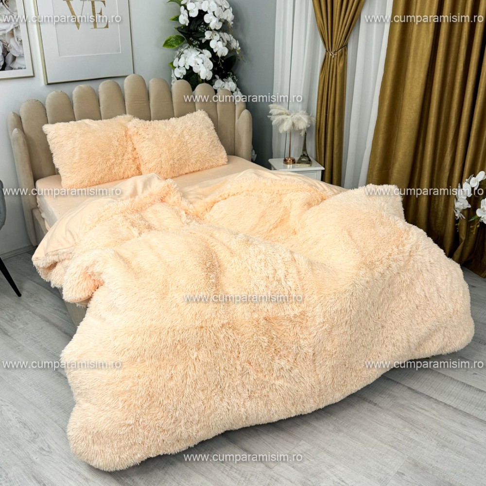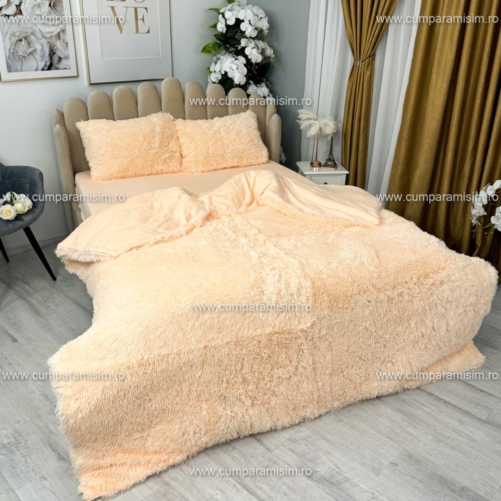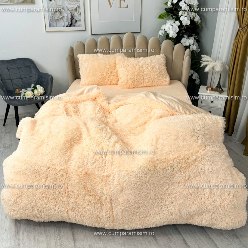 Lenjerie pat super pufoasa, COCOLINO Fluffy, 4 piese, piersica deschis, cod produs: FLF912