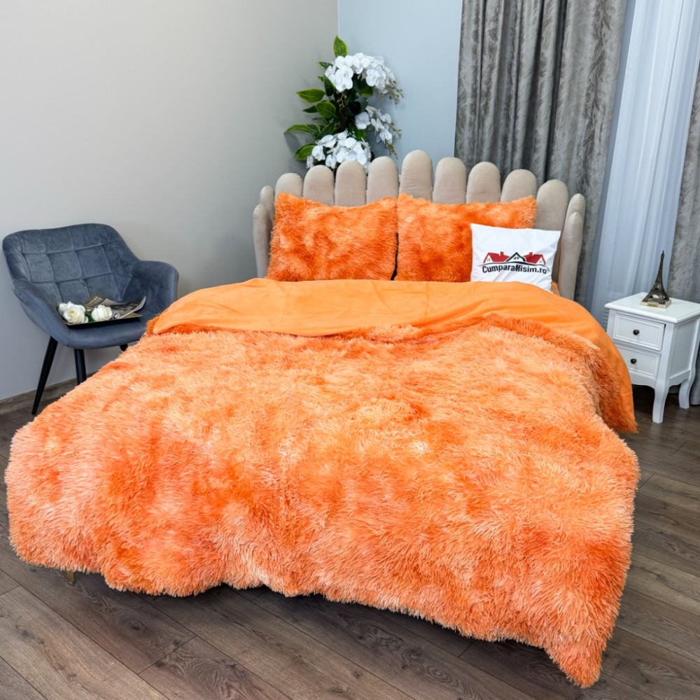Lenjerie pat super pufoasa, COCOLINO Fluffy, 4 piese, Portocaliu degrade, cod produs: CSA-FLF24
