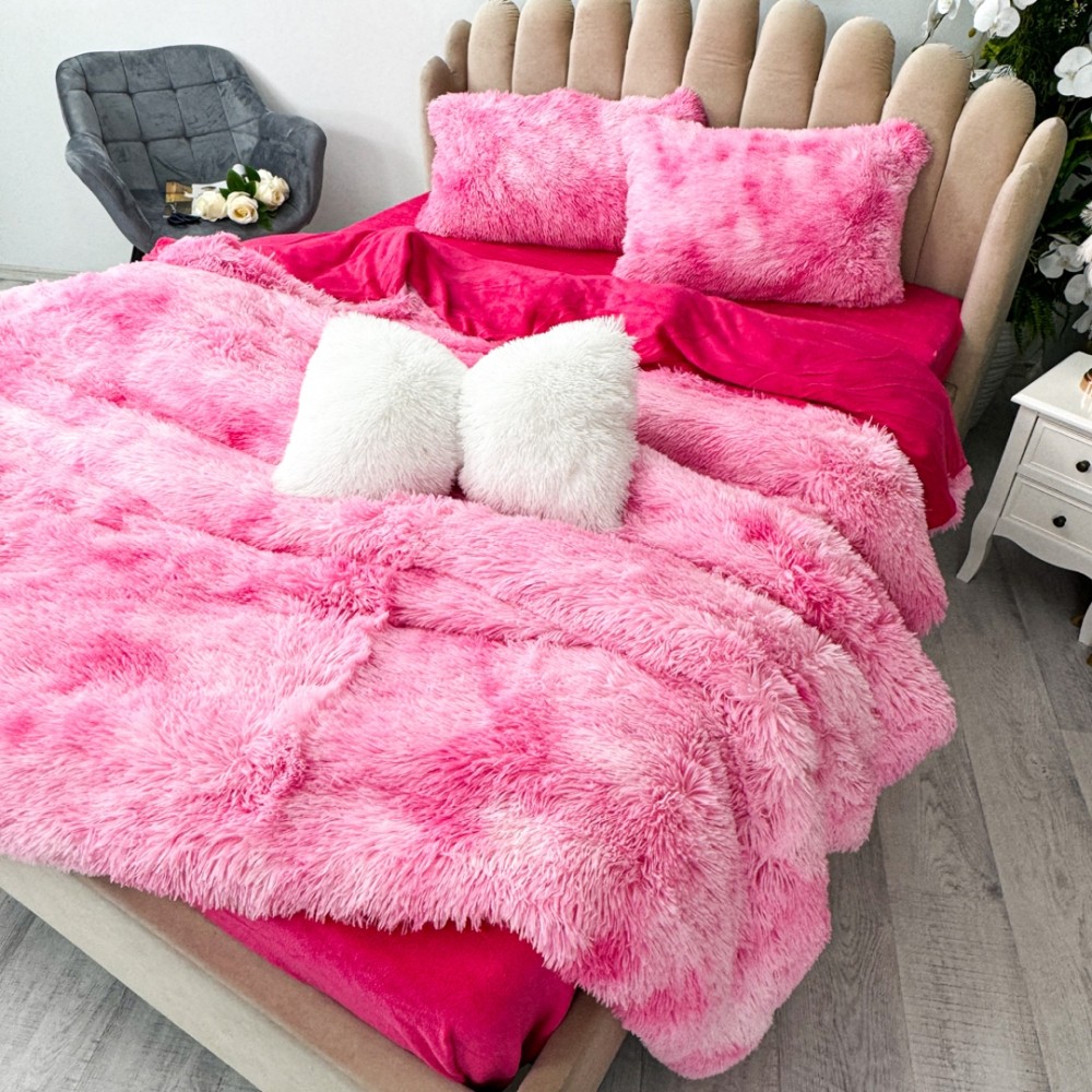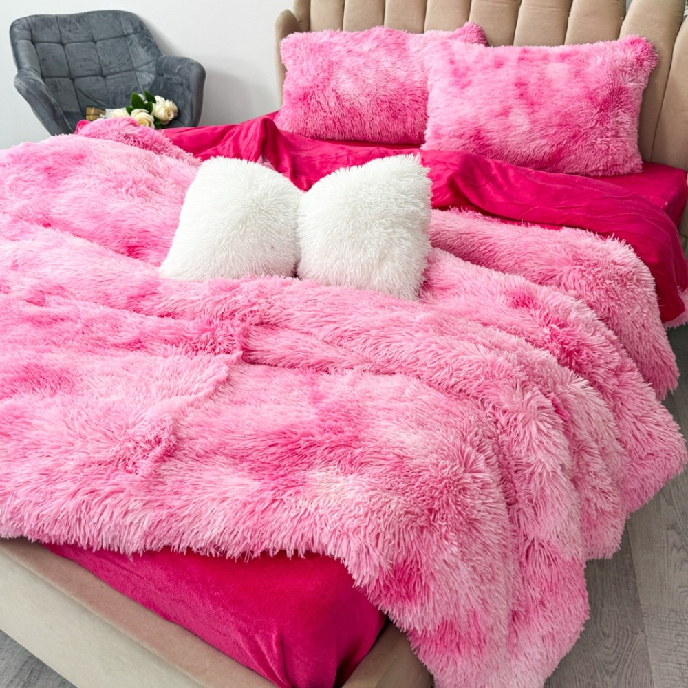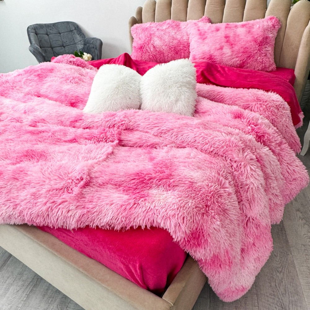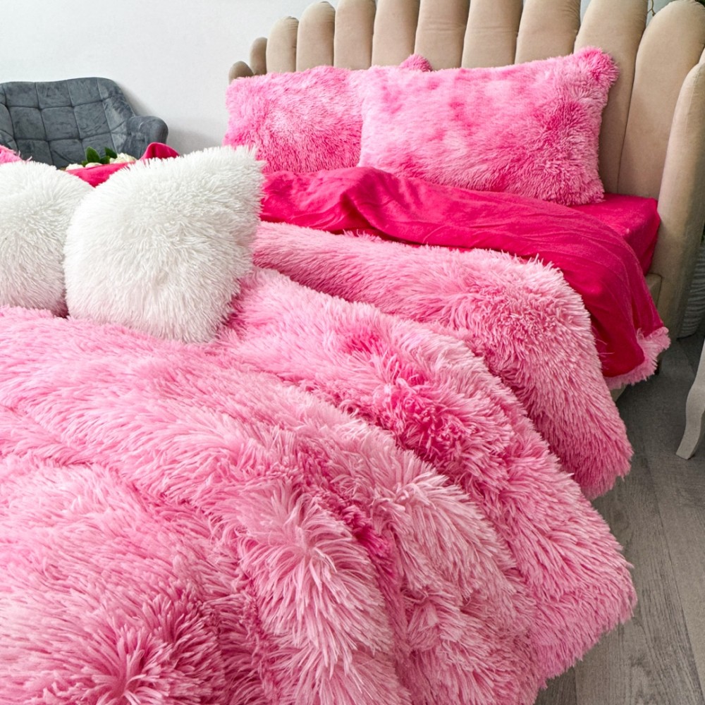 Lenjerie pat super pufoasa, COCOLINO Fluffy, 4 piese, roz degrade, cod produs: FLF902