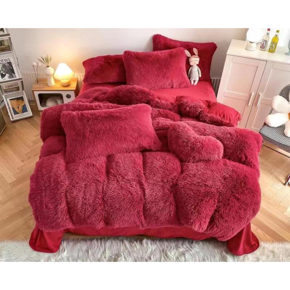 Lenjerie pat super pufoasa COCOLINO Fluffy 6 piese Rosu, cod produs: FLF109