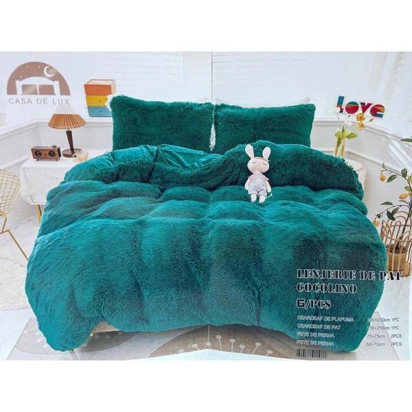 Lenjerie pat super pufoasa COCOLINO Fluffy 6 piese Verde, cod produs: FLF100