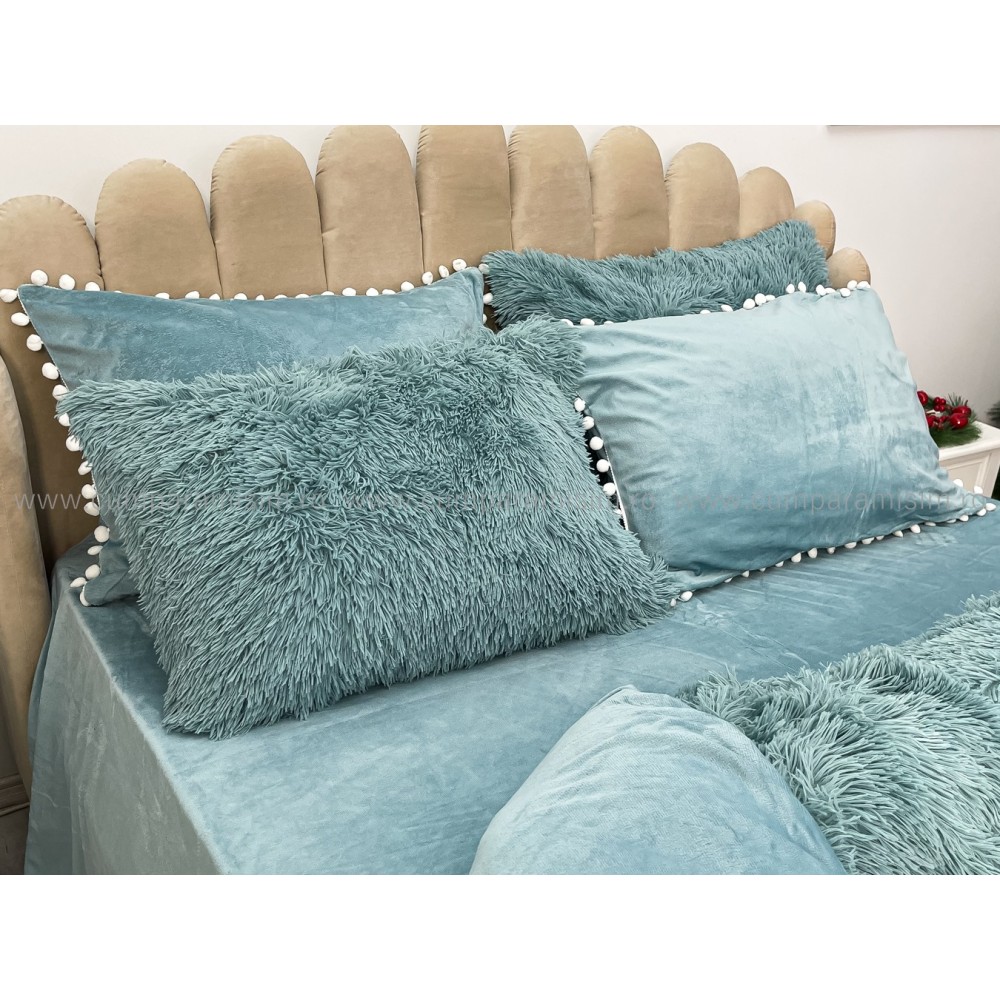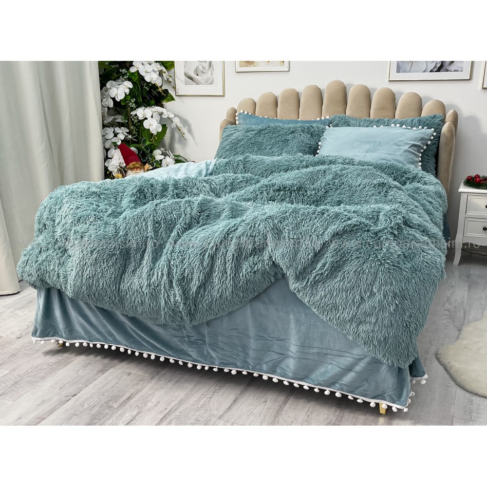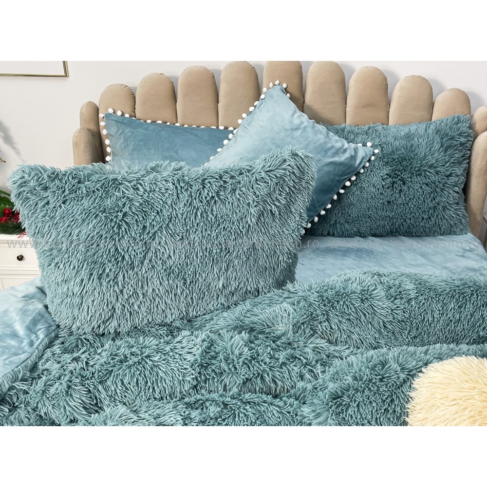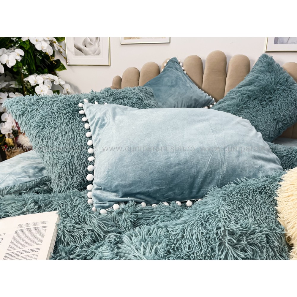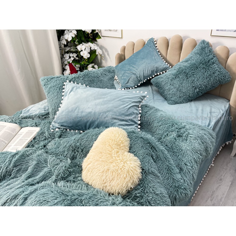 Lenjerie pat super pufoasa COCOLINO Fluffy cu ciucuri, 6 piese, ALBASTRU, cod produs: FLF209