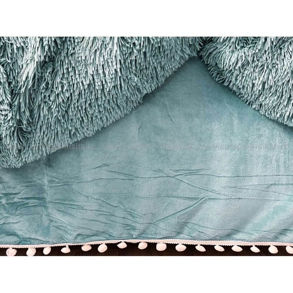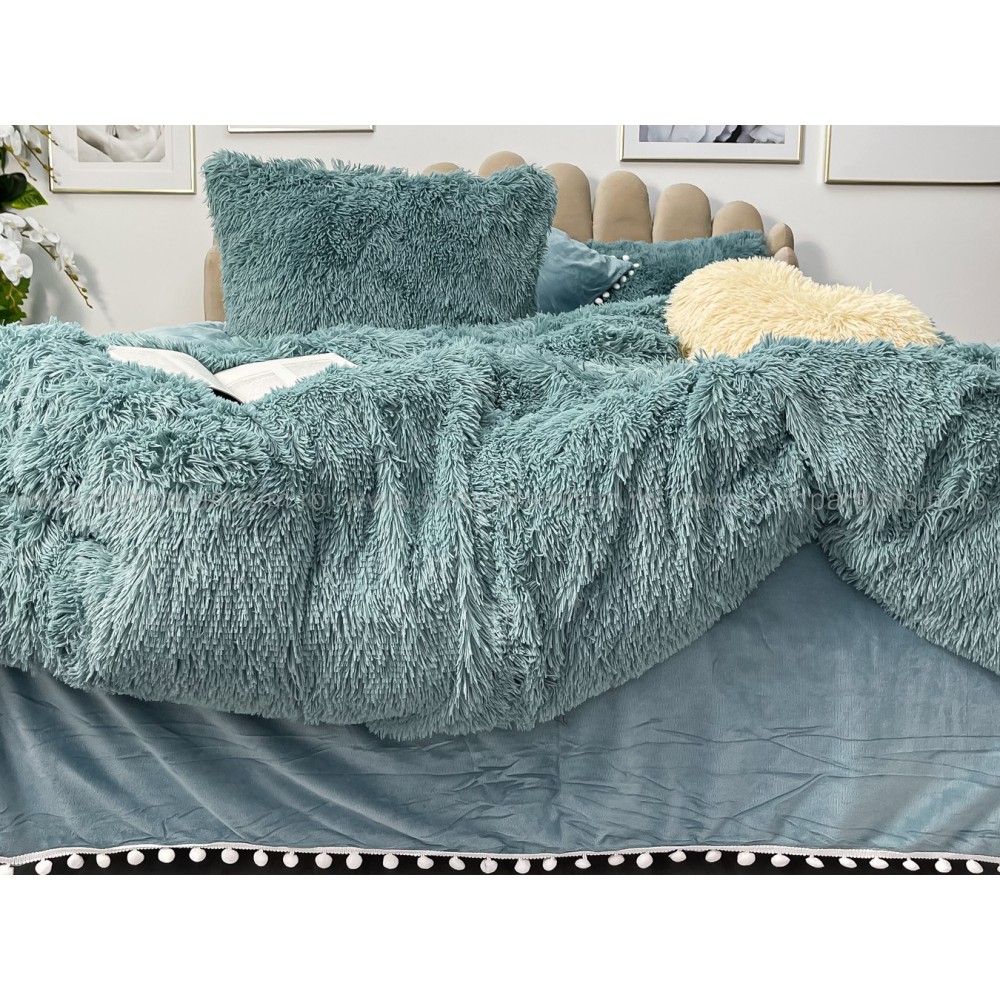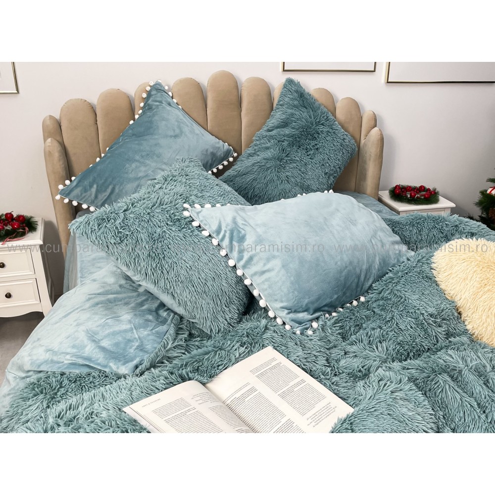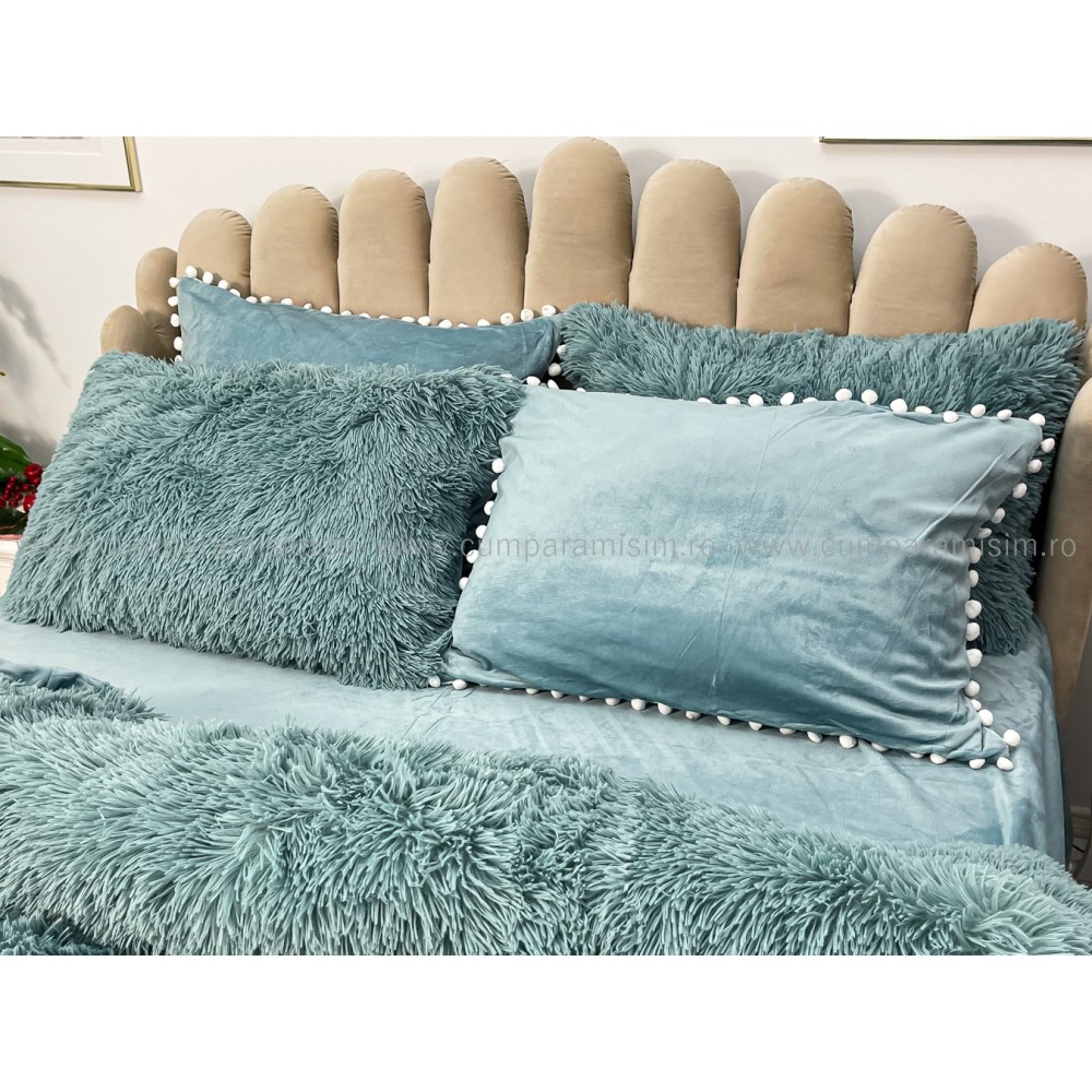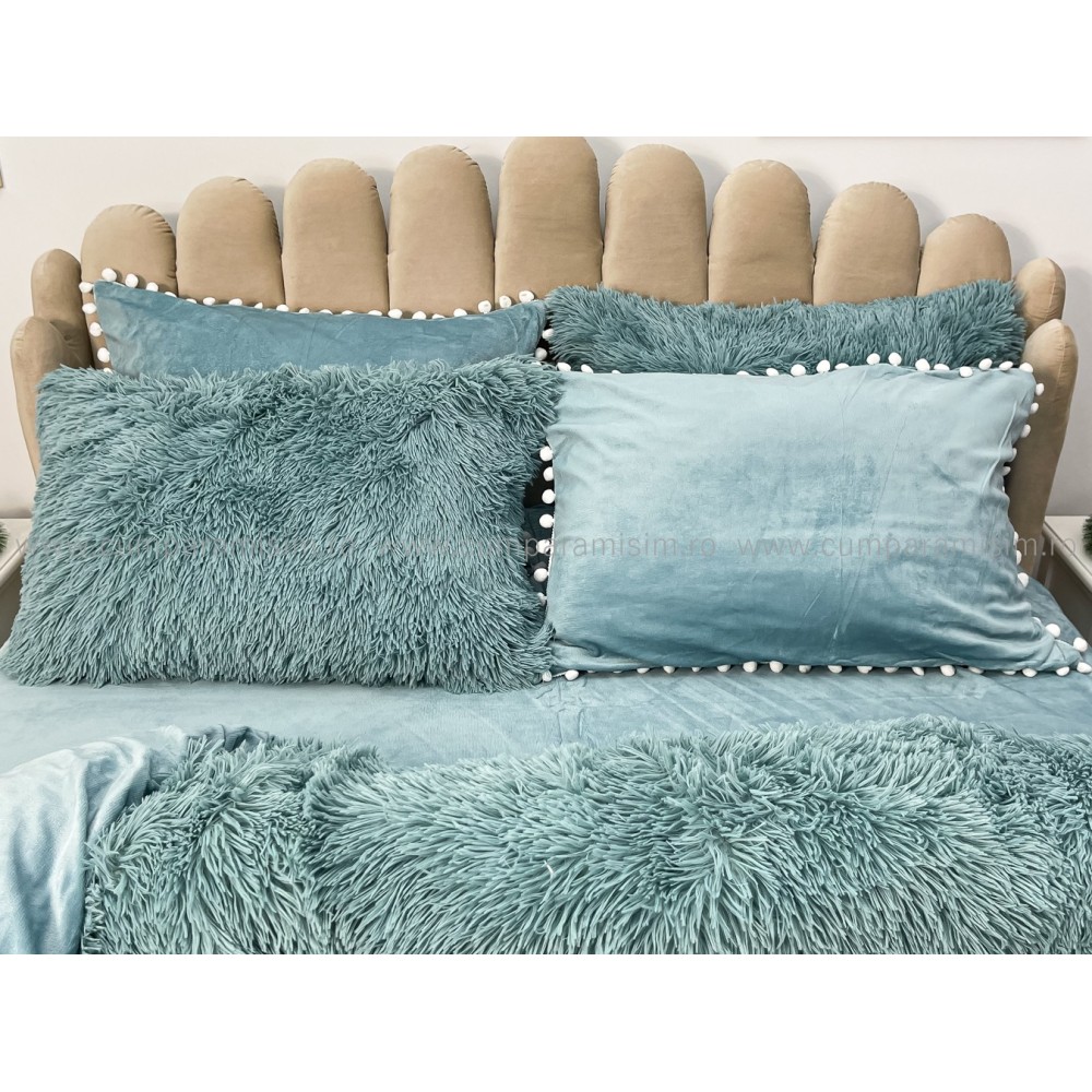 Lenjerie pat super pufoasa COCOLINO Fluffy cu ciucuri, 6 piese, ALBASTRU, cod produs: FLF209