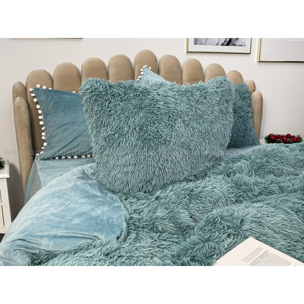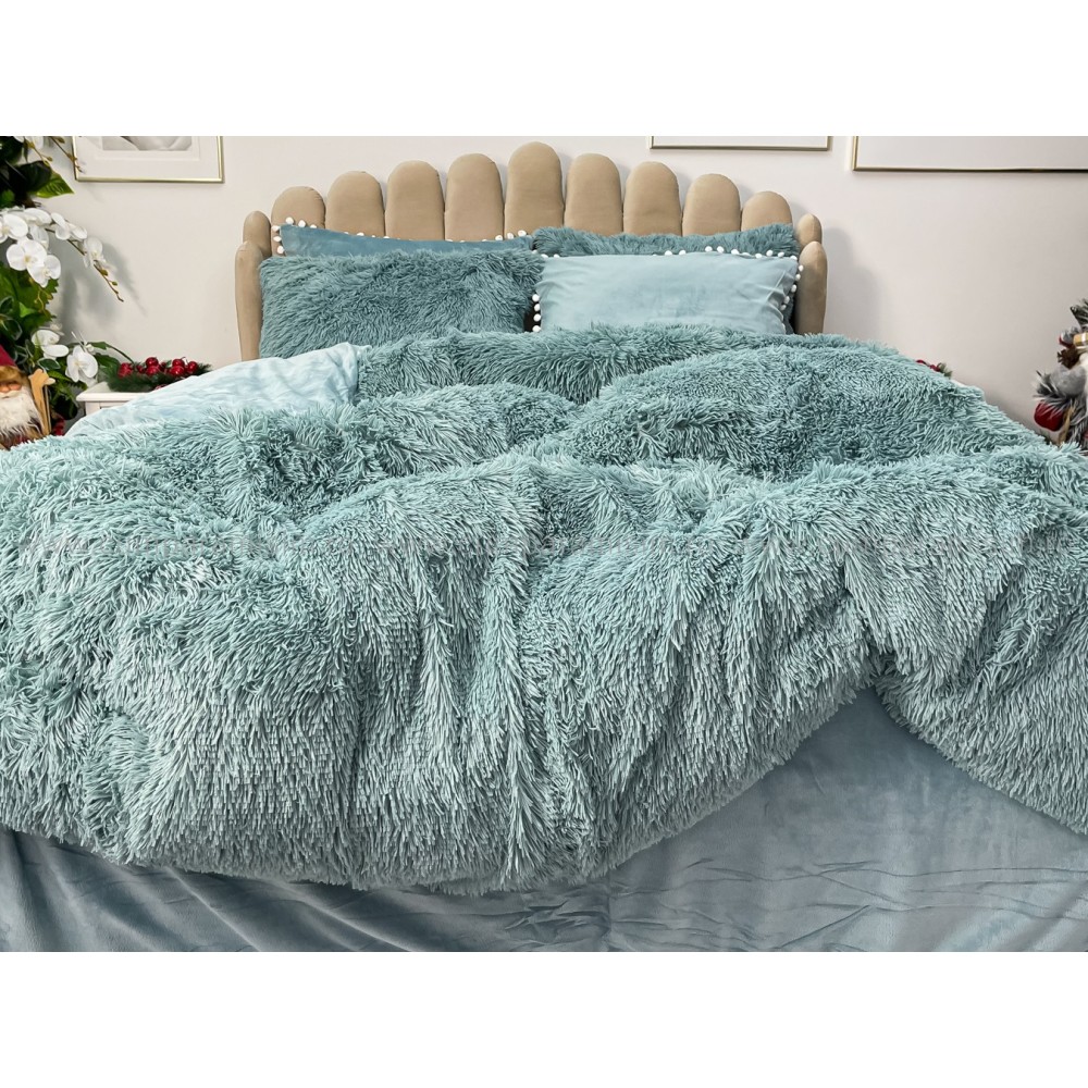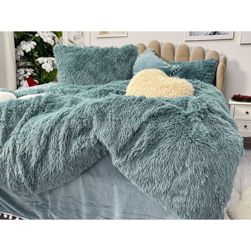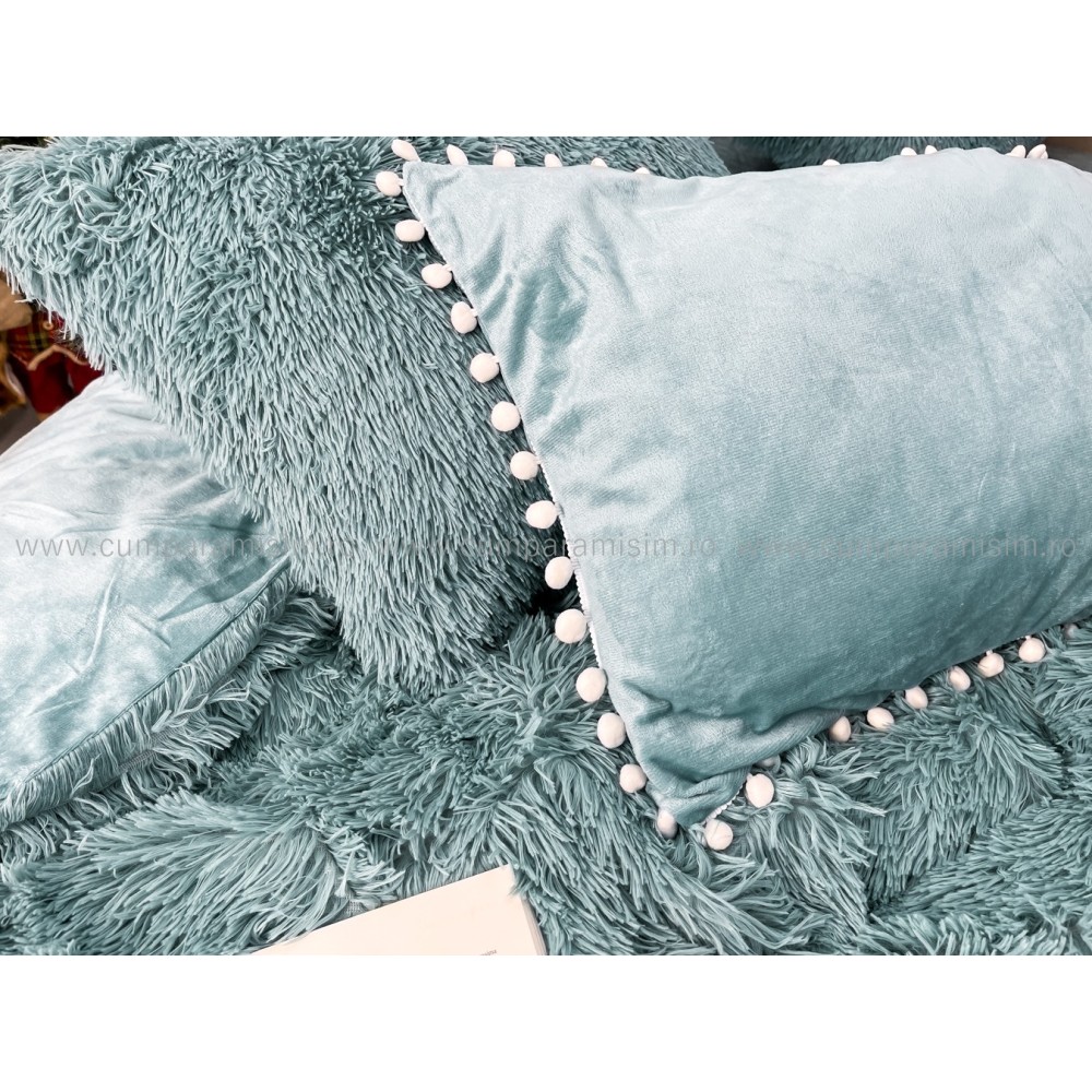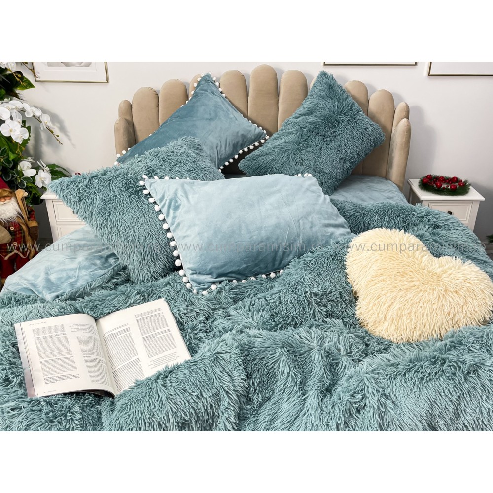 Lenjerie pat super pufoasa COCOLINO Fluffy cu ciucuri, 6 piese, ALBASTRU, cod produs: FLF209