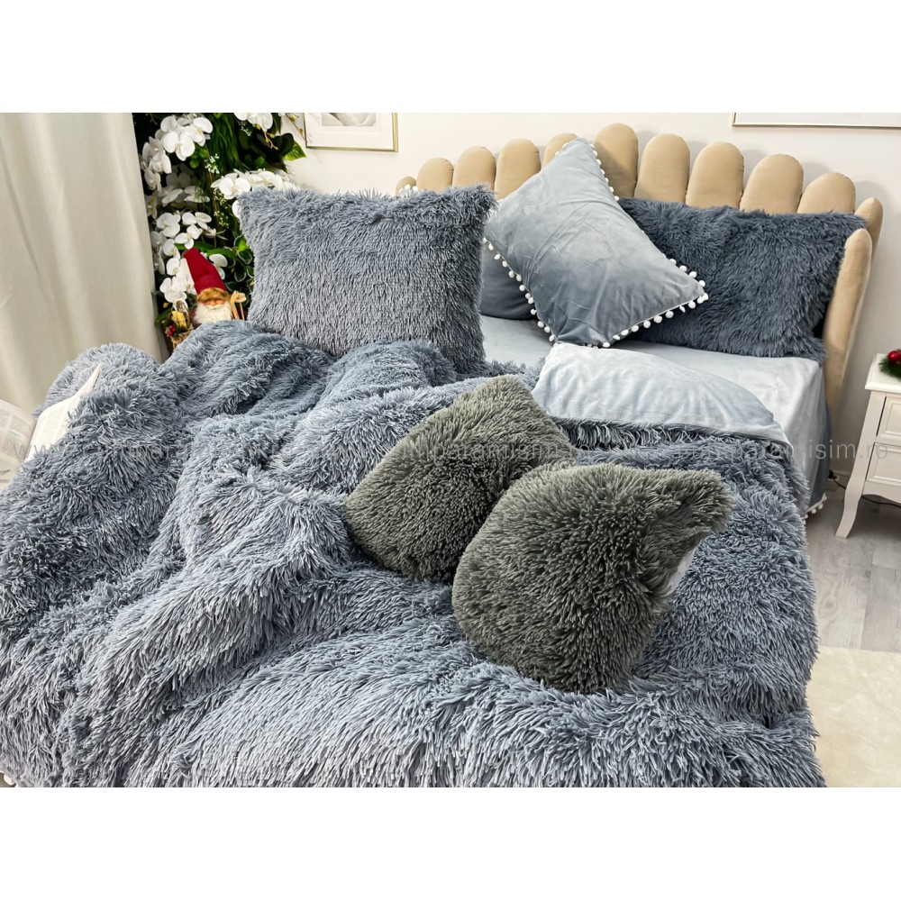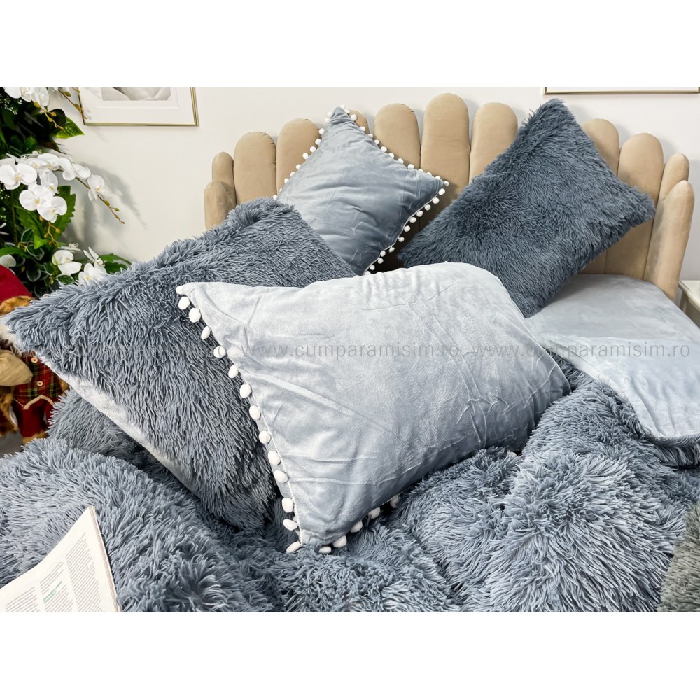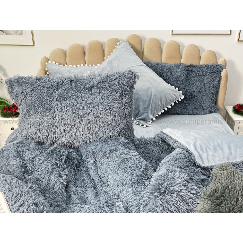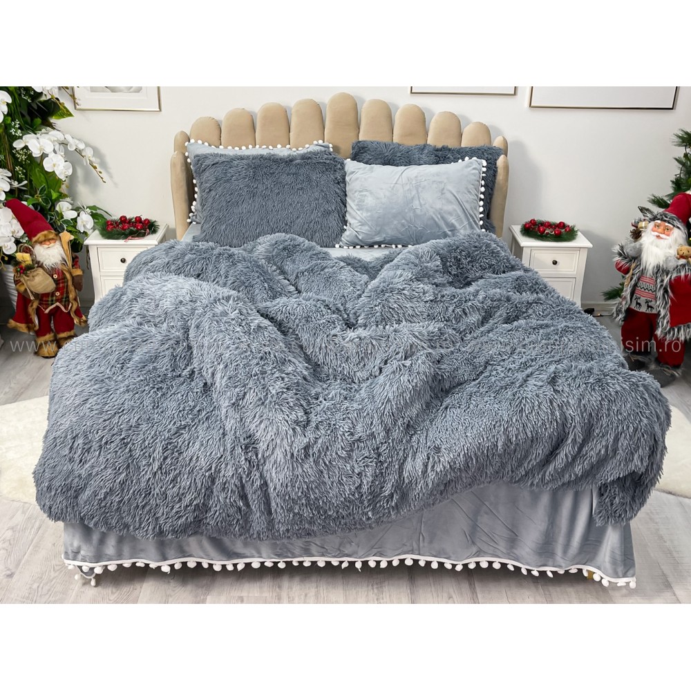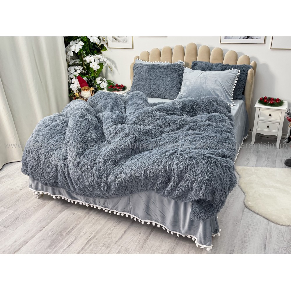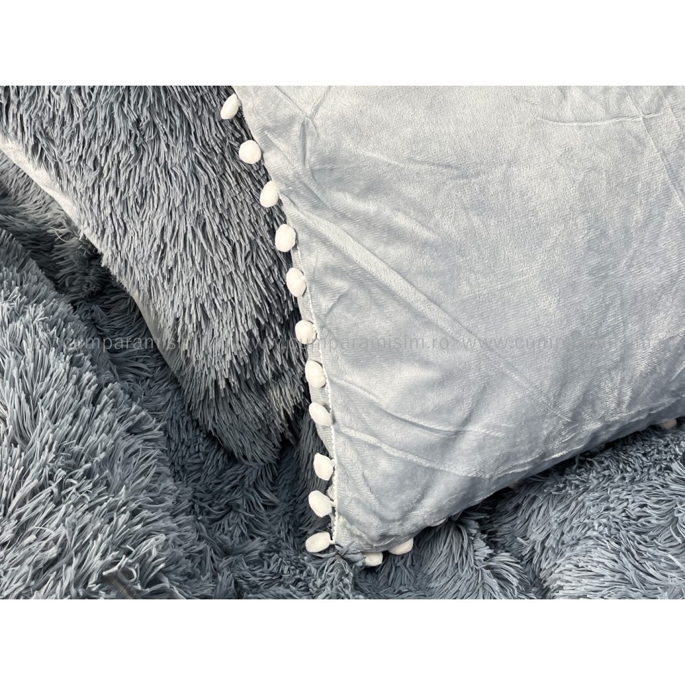 Lenjerie pat super pufoasa COCOLINO Fluffy cu ciucuri, 6 piese, GRI, cod produs: FLF205