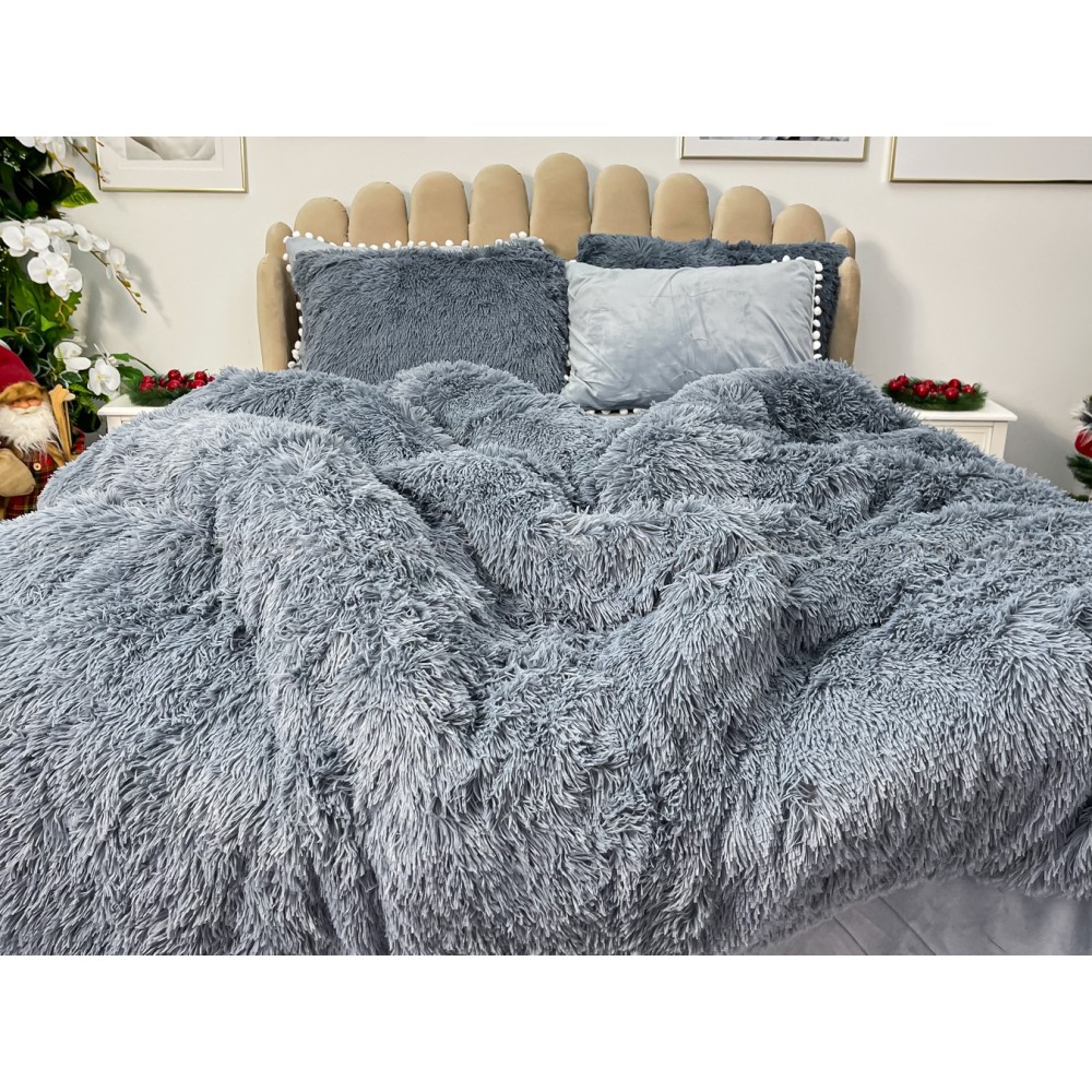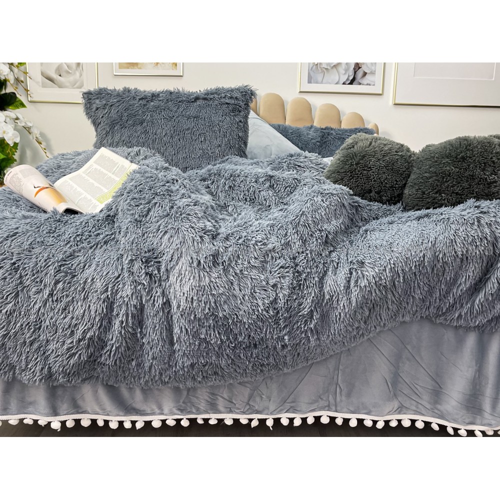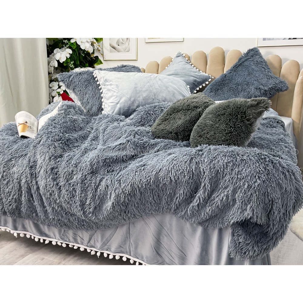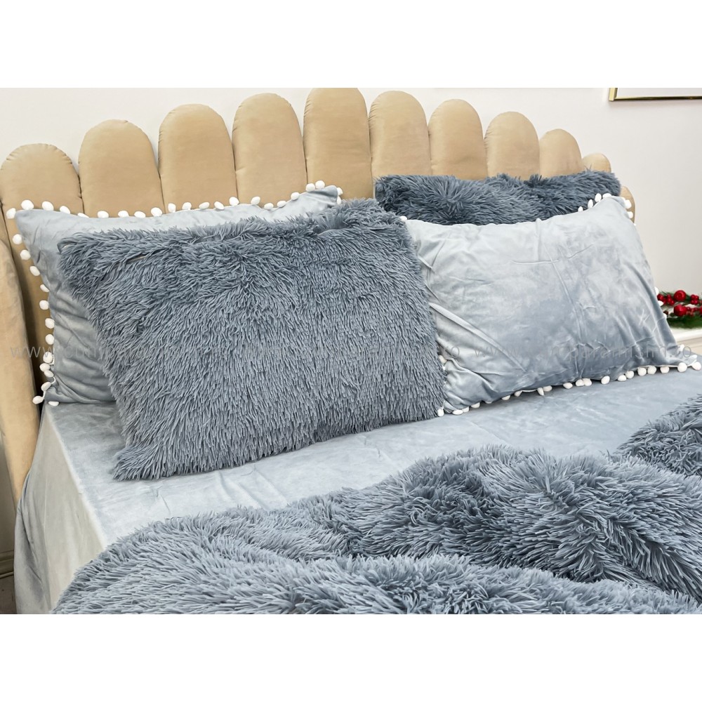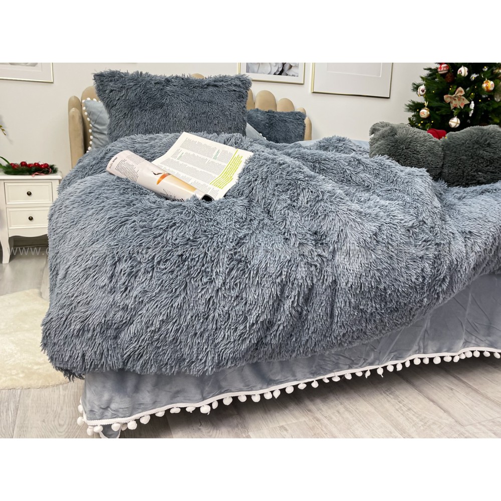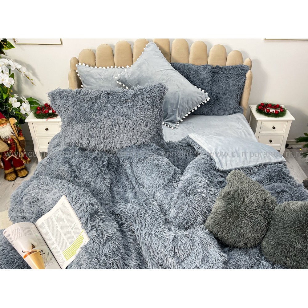 Lenjerie pat super pufoasa COCOLINO Fluffy cu ciucuri, 6 piese, GRI, cod produs: FLF205