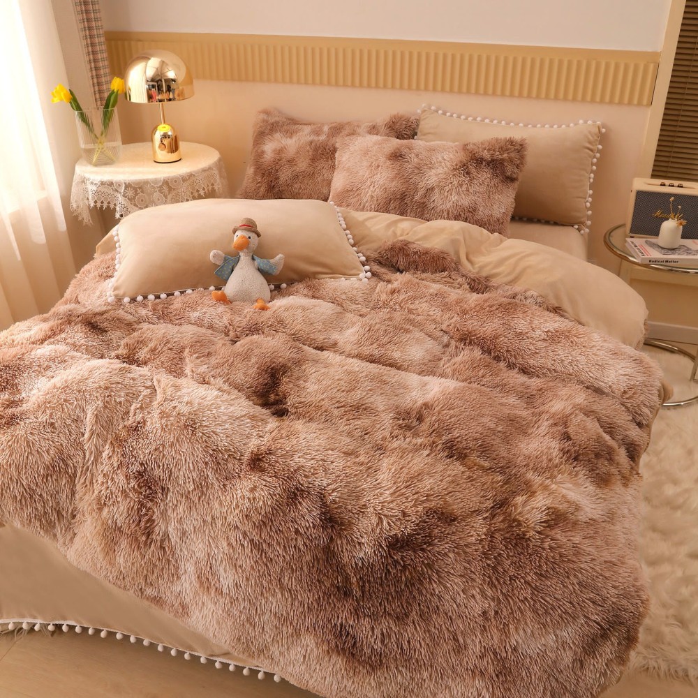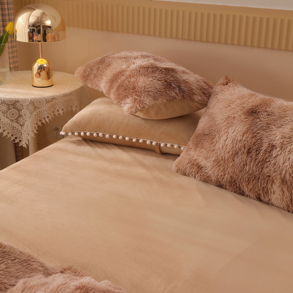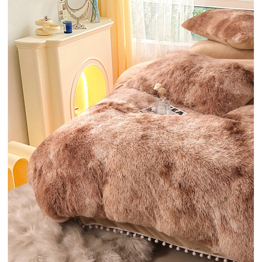 Lenjerie pat super pufoasa COCOLINO Fluffy cu ciucuri, 6 piese, Maro - Multicolor, cod produs: FLF222