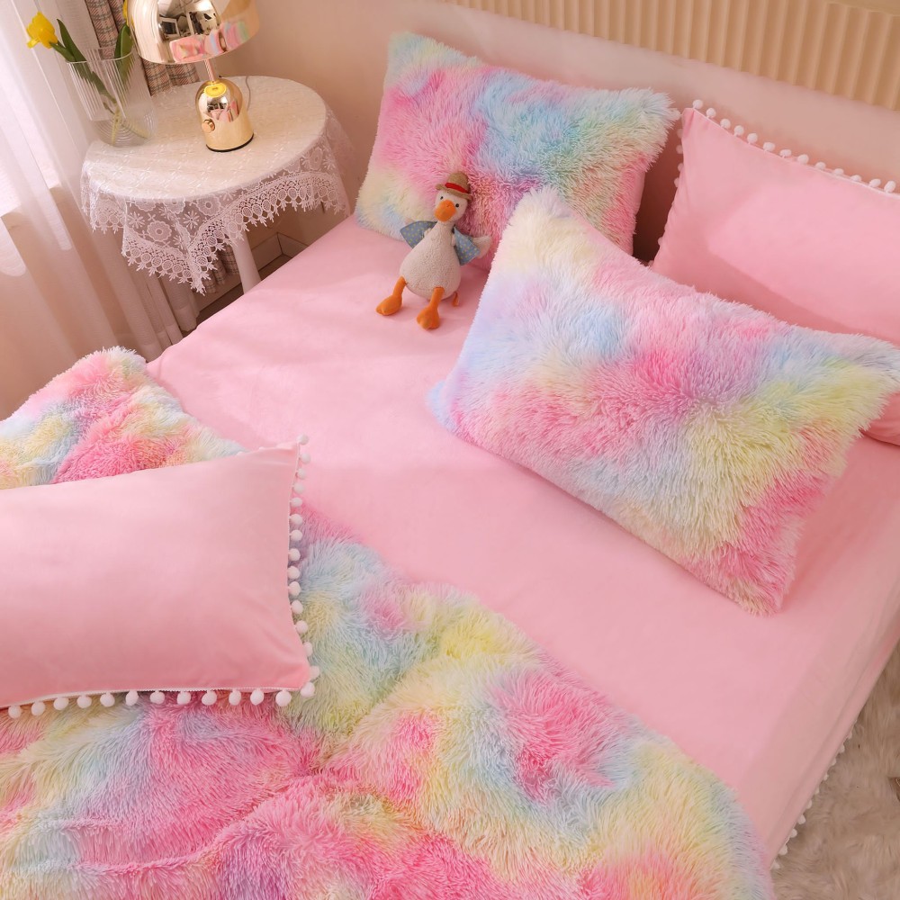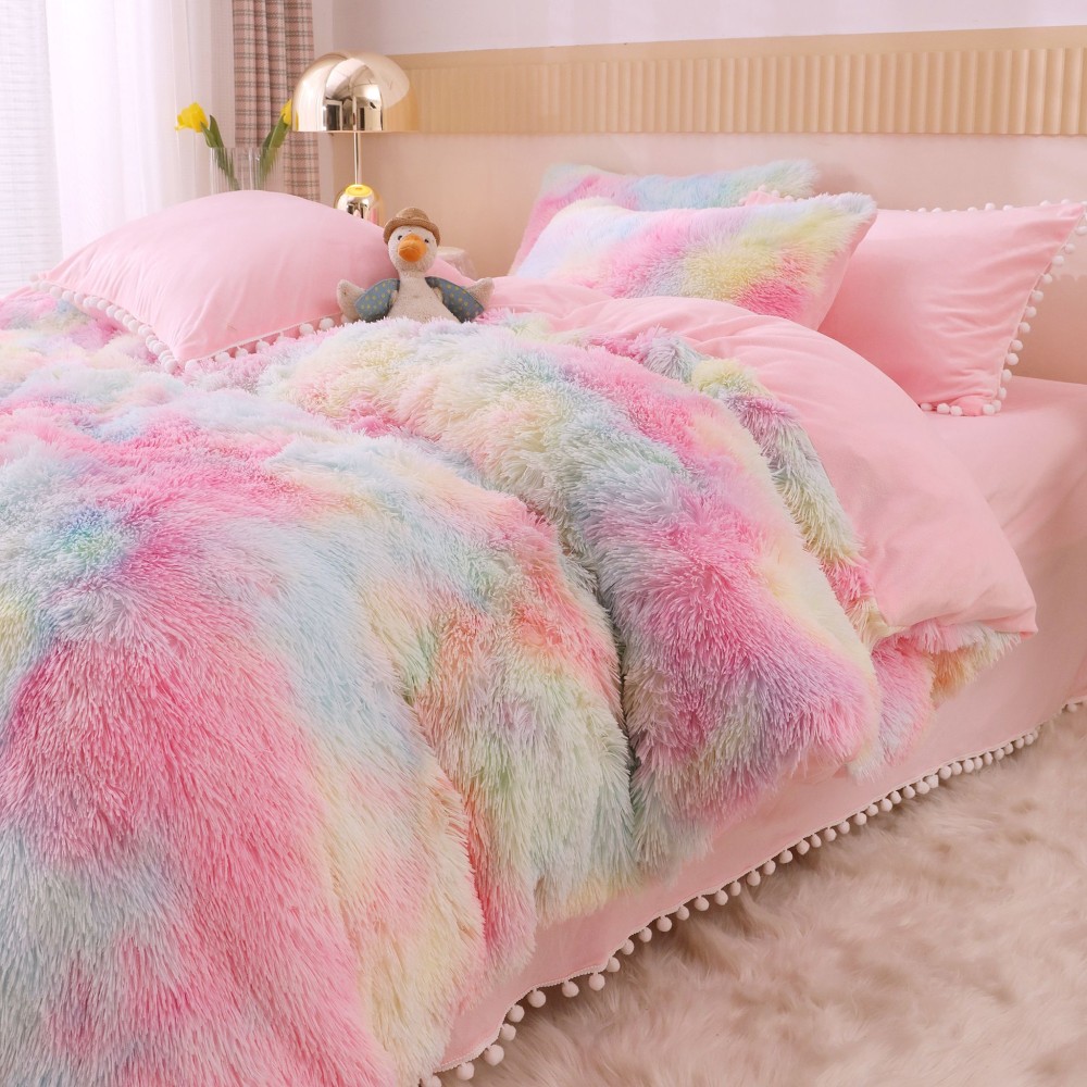 Lenjerie pat super pufoasa COCOLINO Fluffy cu ciucuri, 6 piese, Multicolor, cod produs: FLF215