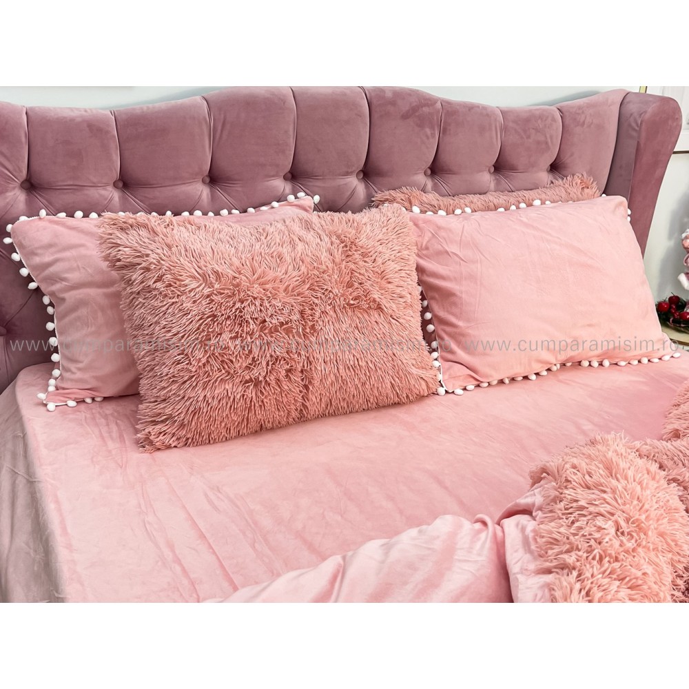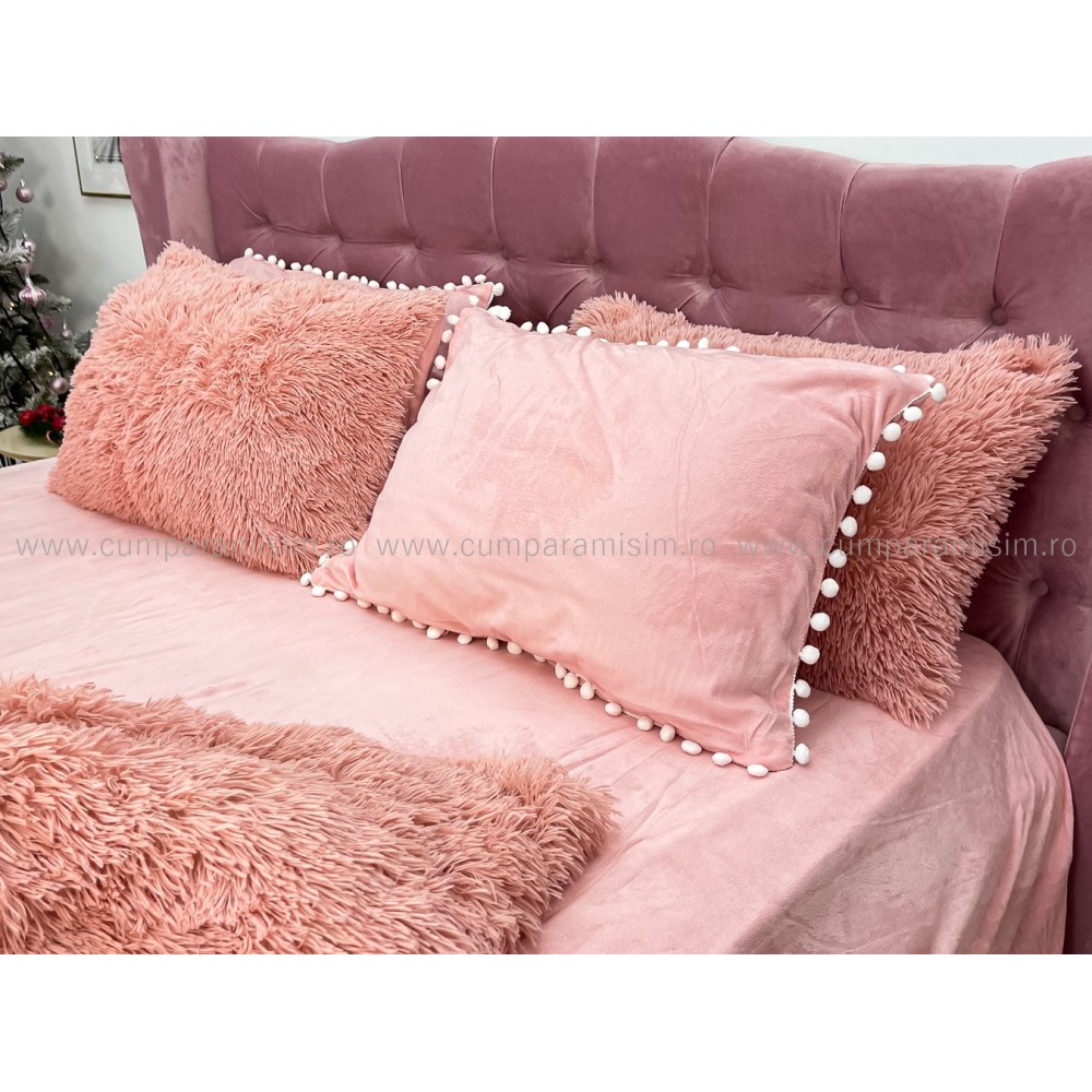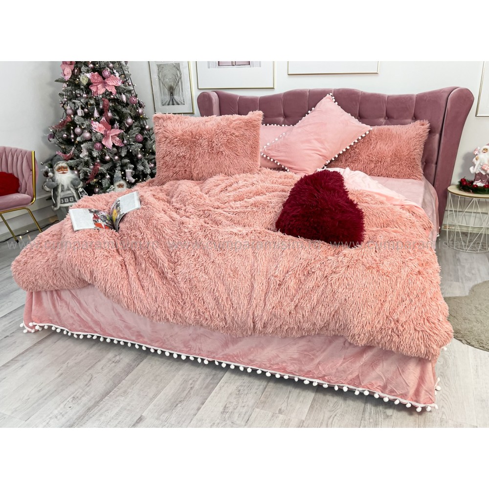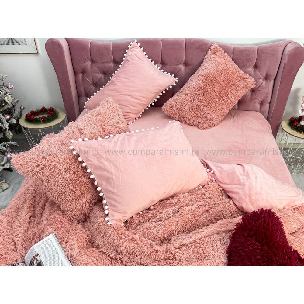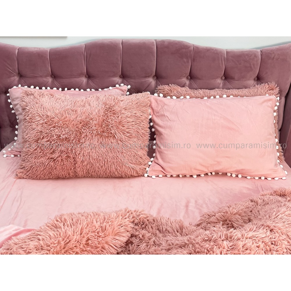 Lenjerie pat super pufoasa COCOLINO Fluffy cu ciucuri, 6 piese, ROZ, cod produs: FLF211